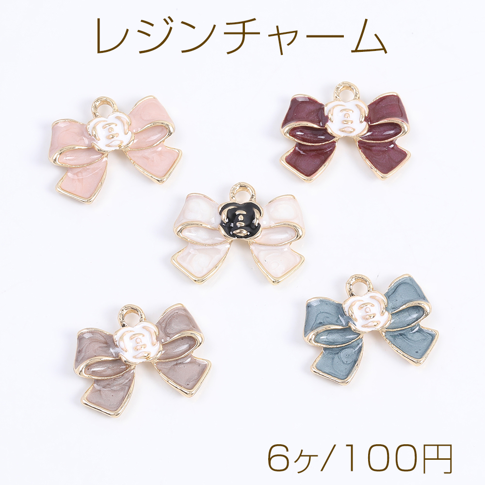 レジンチャーム リボン 17×21mm ゴールド(6ヶ)