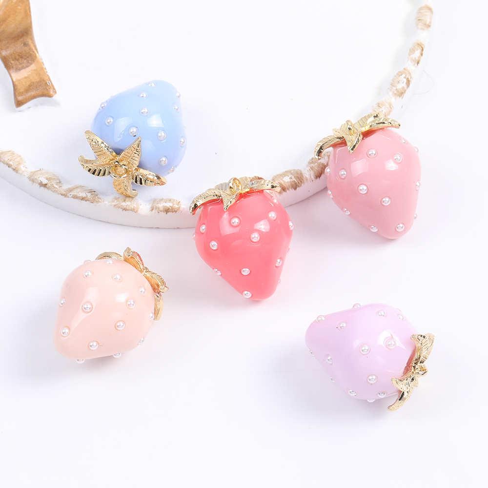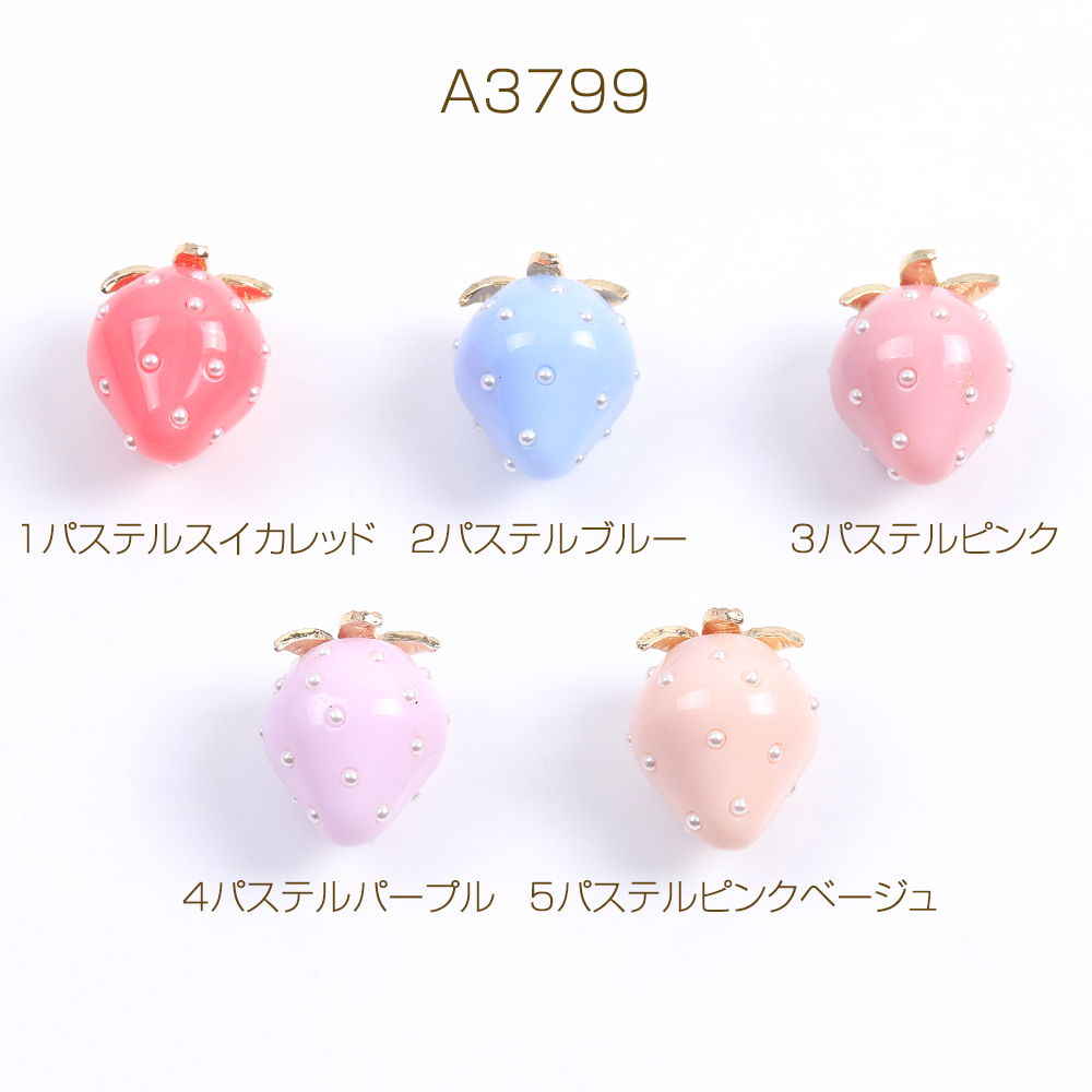いちごチャーム パステルイチゴチャーム かわいいフルーツチャーム 苺 パール付き 18×22mm(2ヶ)