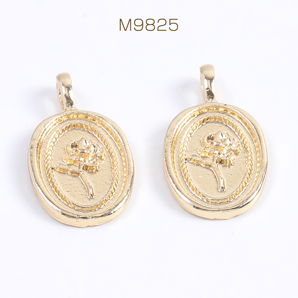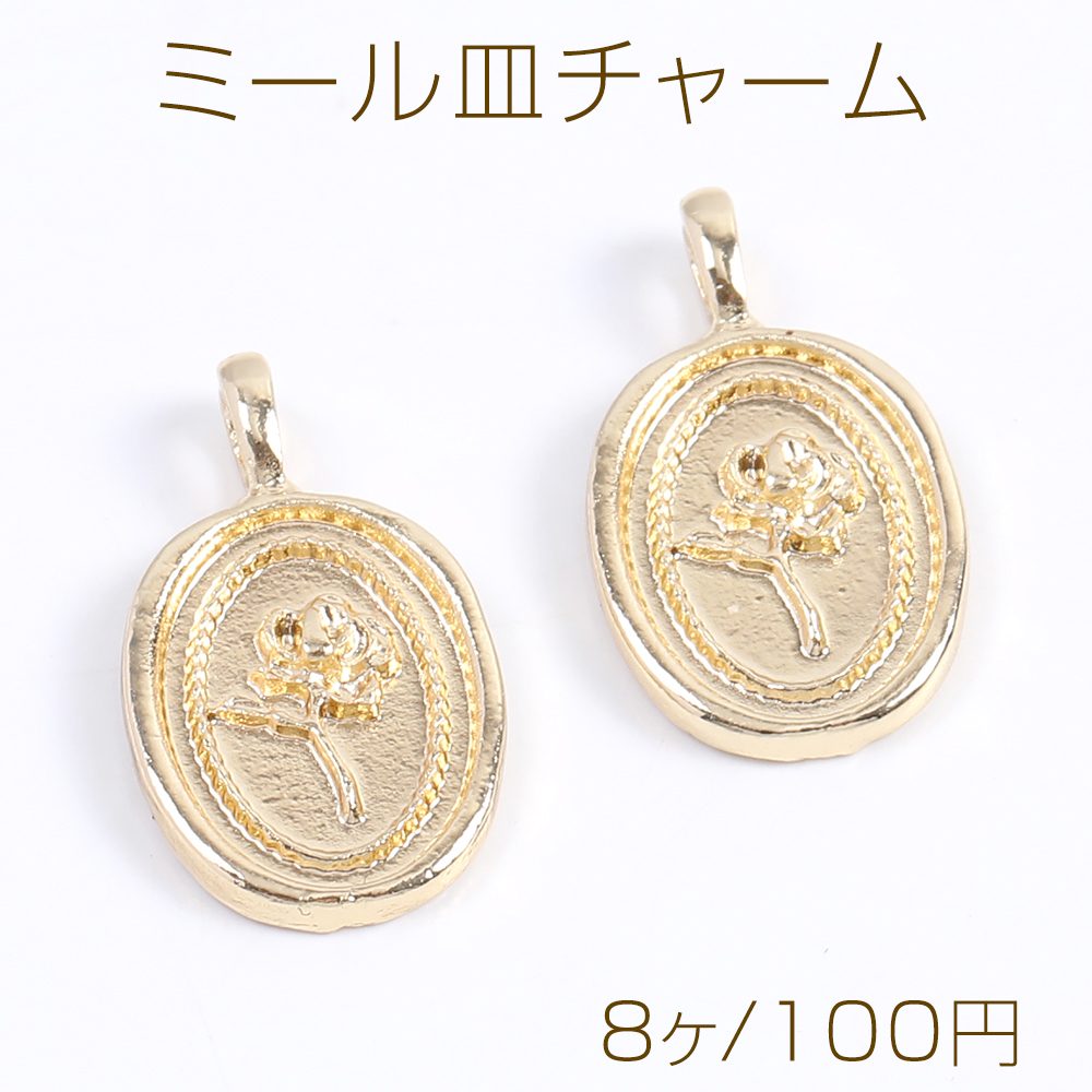ミール皿チャーム オーバル バラ 11×19mm ゴールド(8ヶ)
