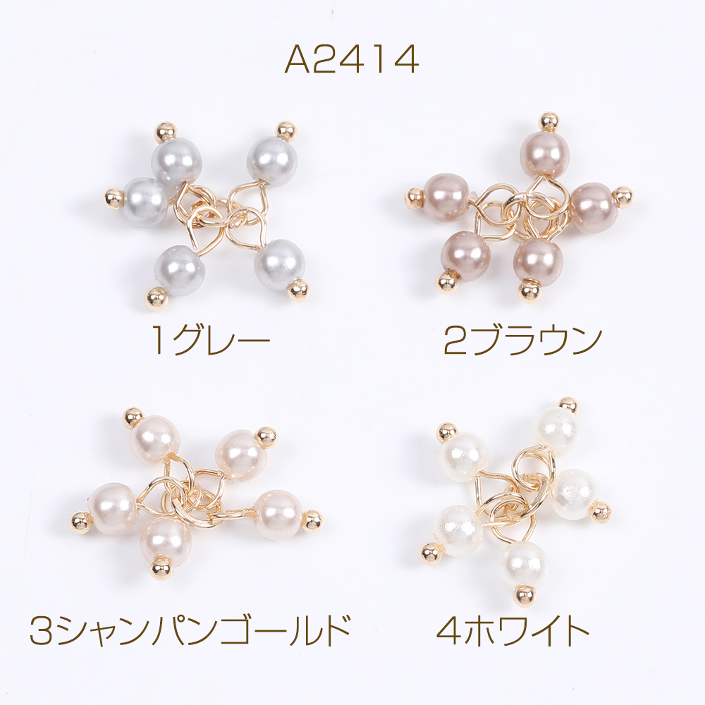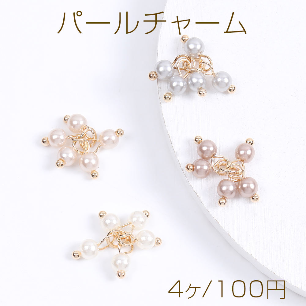 ワイヤーパールチャーム 5連丸玉 4mm ゴールド(4ヶ)