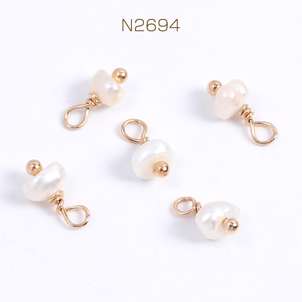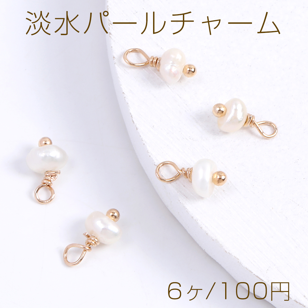 ワイヤー淡水パールチャーム 不規則型 ゴールド(6ヶ)
