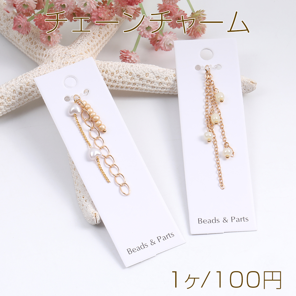 チェーンチャーム チェーンタッセル パール付き ガラスビーズ付き ゴールド