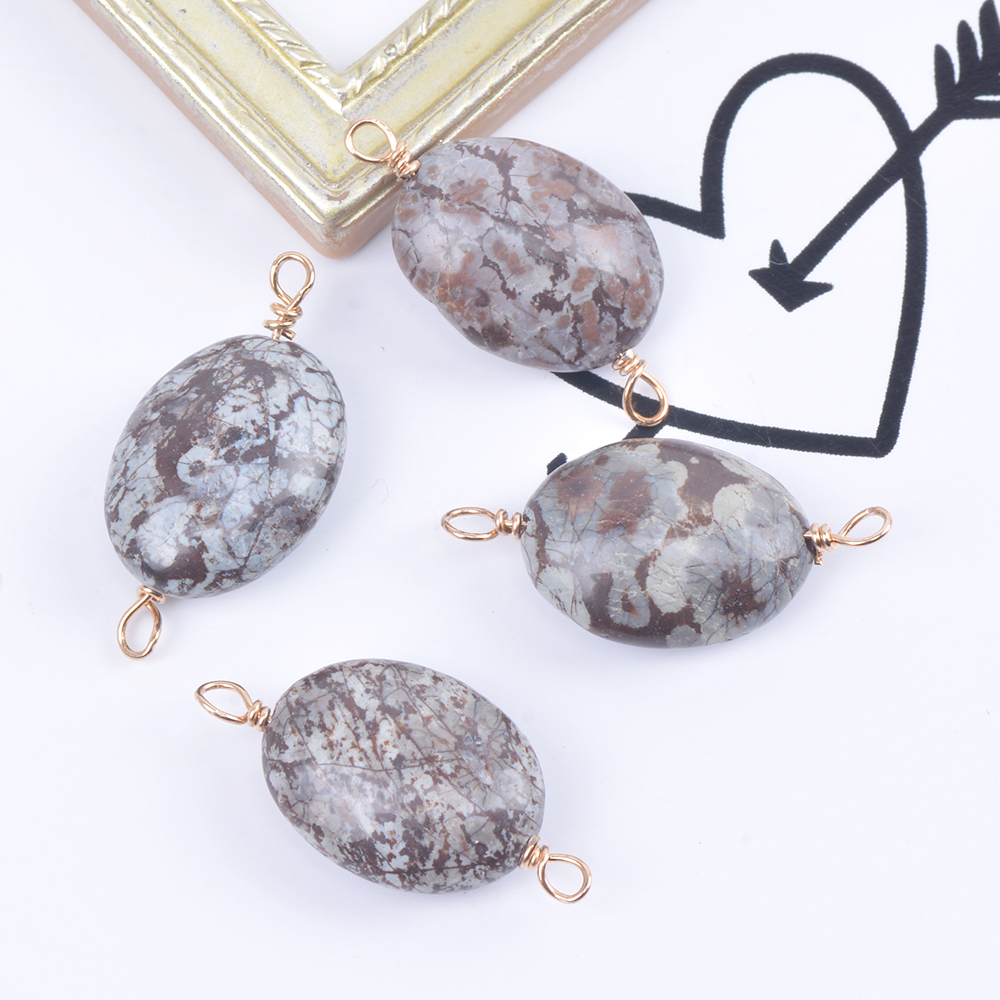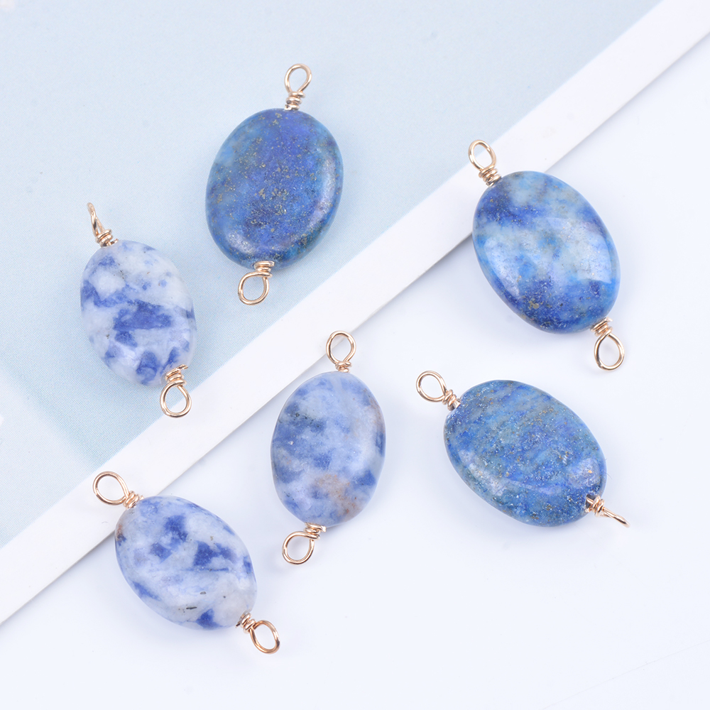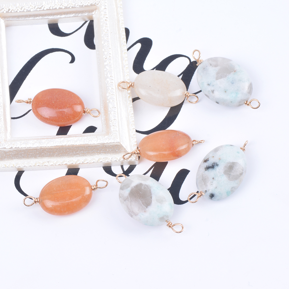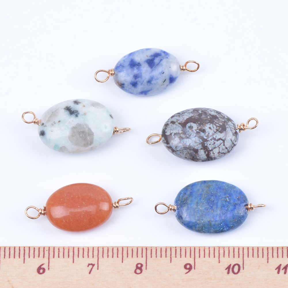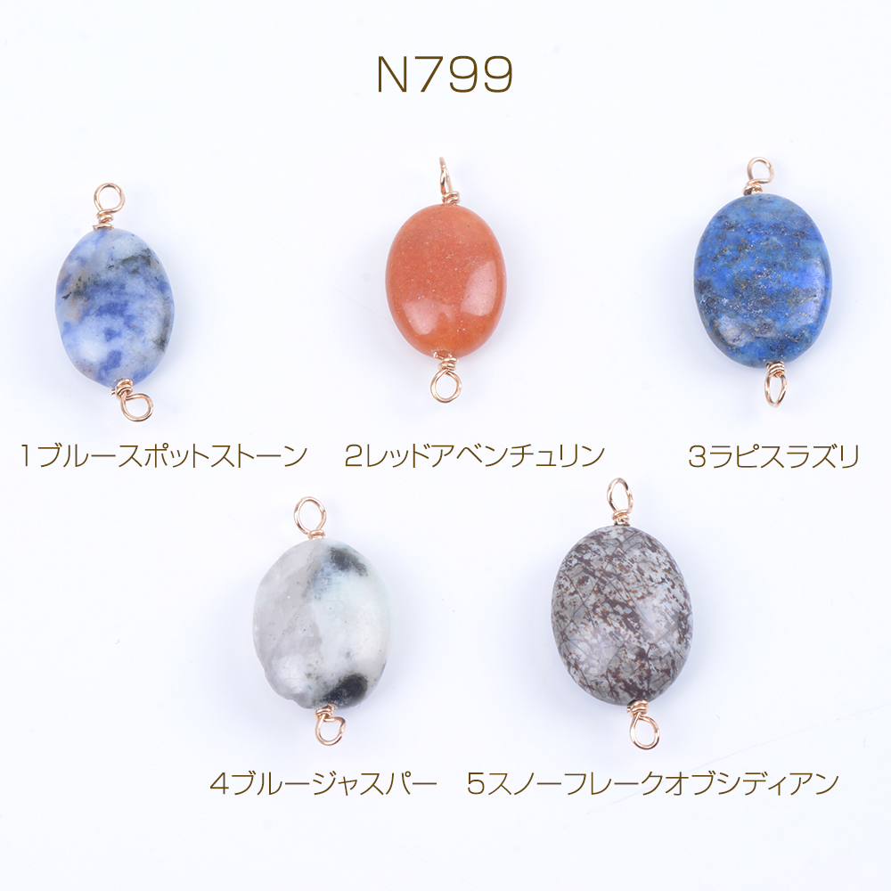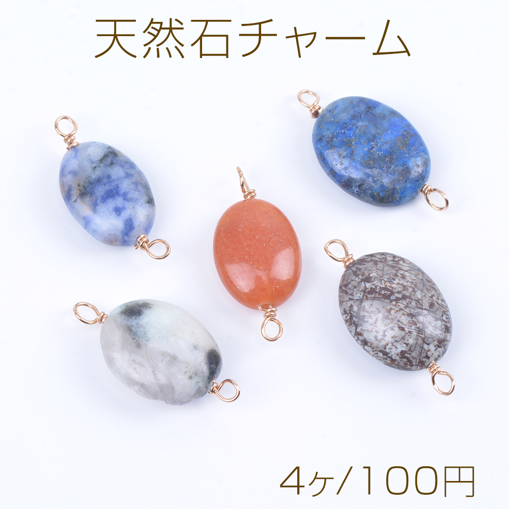 天然石チャーム 天然石コネクターチャーム オーバル 2カン付き ゴールド(4ヶ)