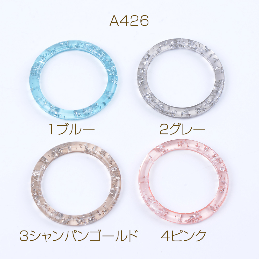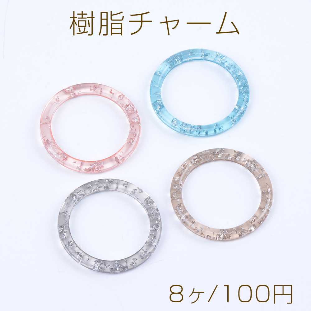 樹脂チャーム 染色 銀箔封入 フープ 38mm クリアカラー(8ヶ)
