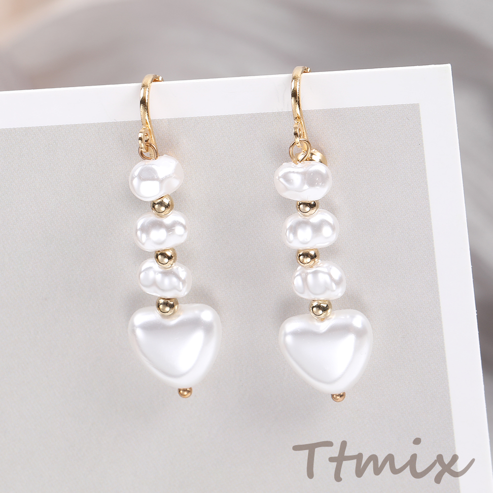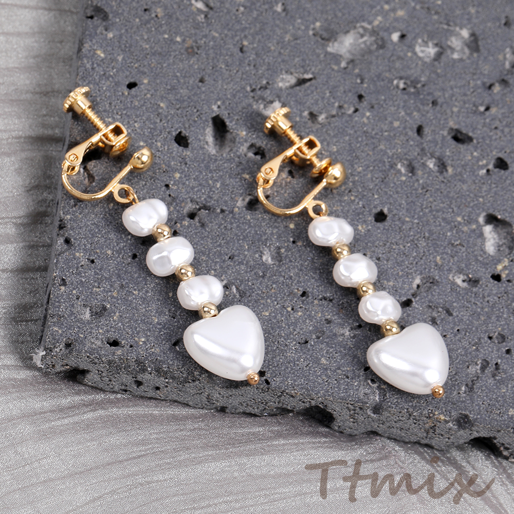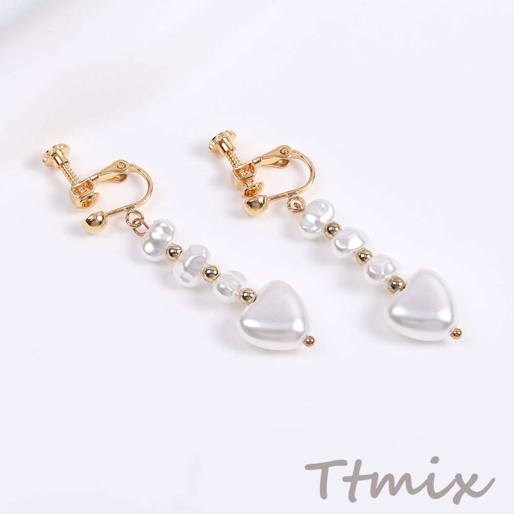 デザインイヤリング ハート型パールイヤリング ゴールド(1ペア)