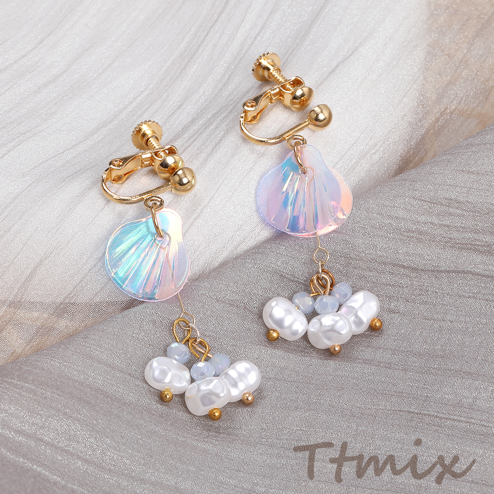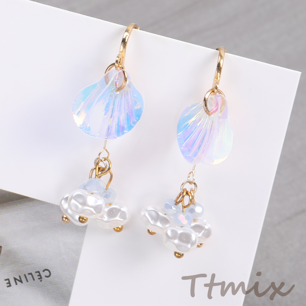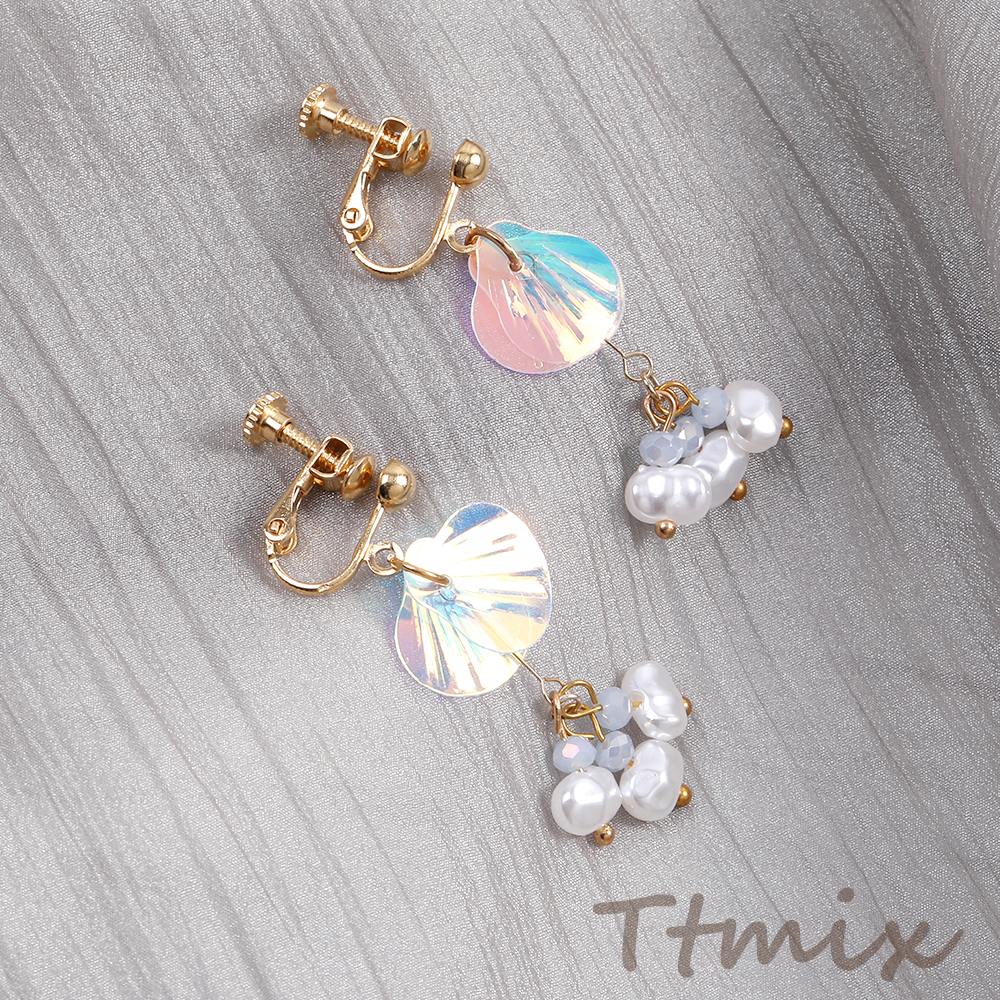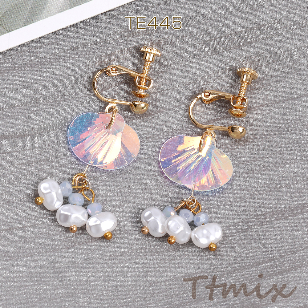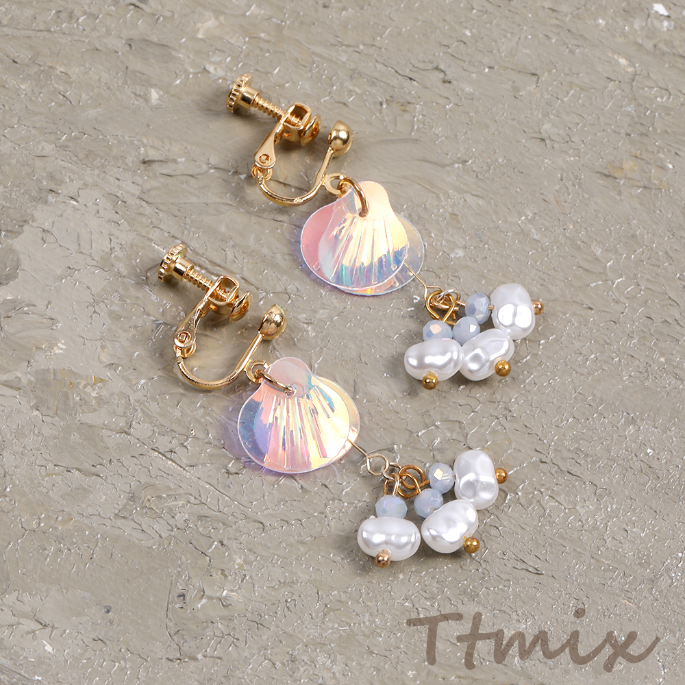 デザインイヤリング ビニール&パールタッセルイヤリング 魚の鱗 ゴールド(1ペア)