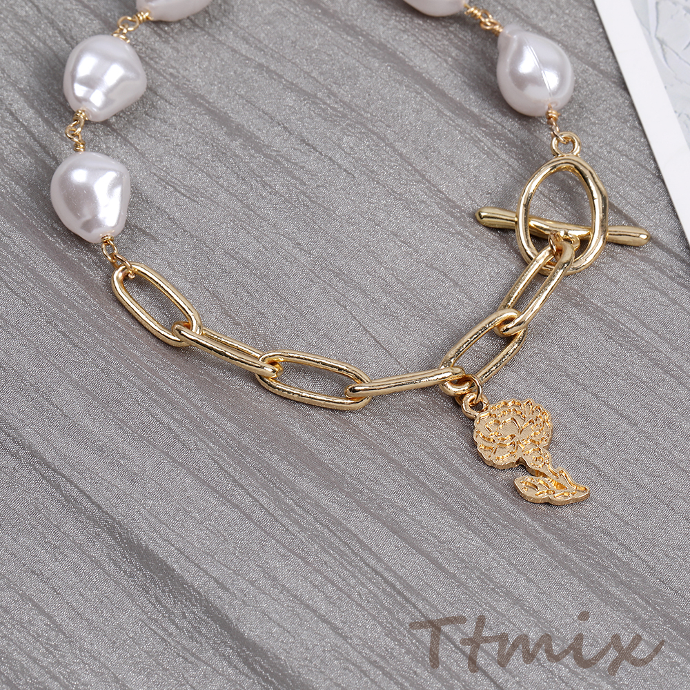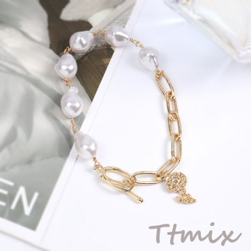 パール&メタルチェーンブレスレット(1連)