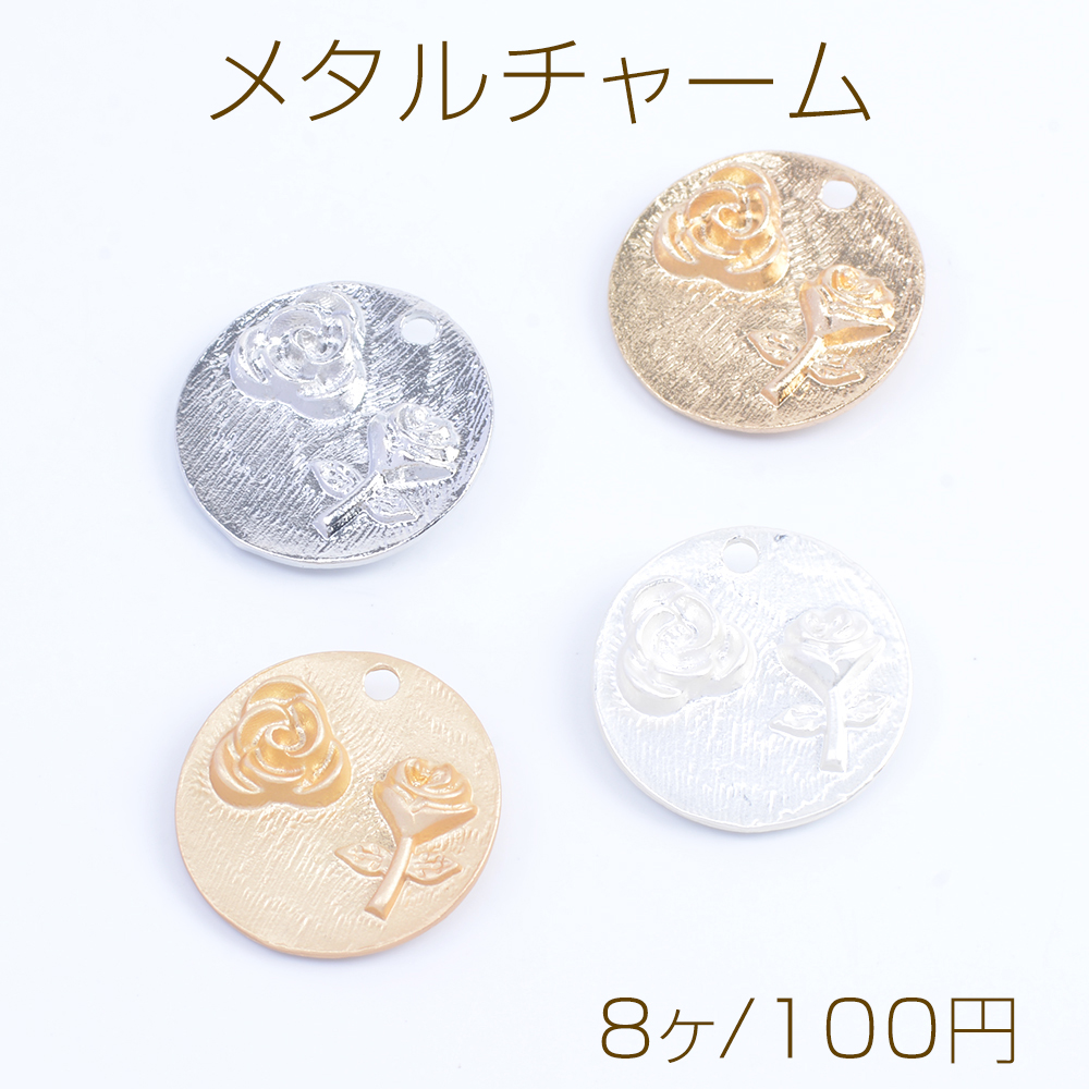 メタルチャーム ラウンド フラワー バラ 17.5mm(8ヶ)