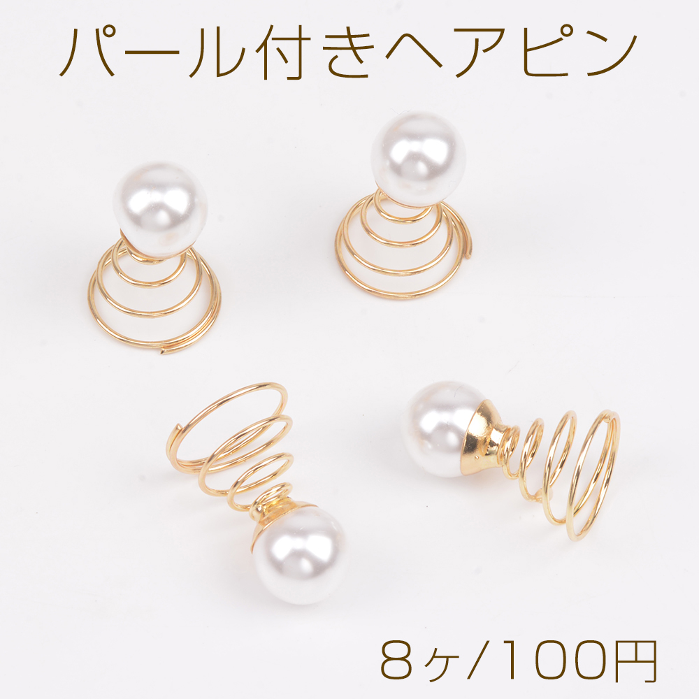 パール付きヘアピン 渦巻型 10×20mmm(8ヶ)
