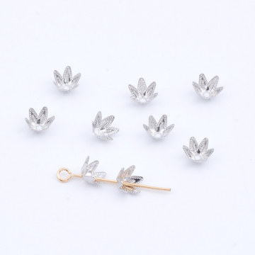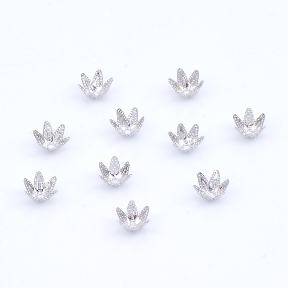 ビーズキャップパーツ メタル花座パーツ 座金 フラワーチャームパーツ 4×6mm ロジウム(10ヶ)