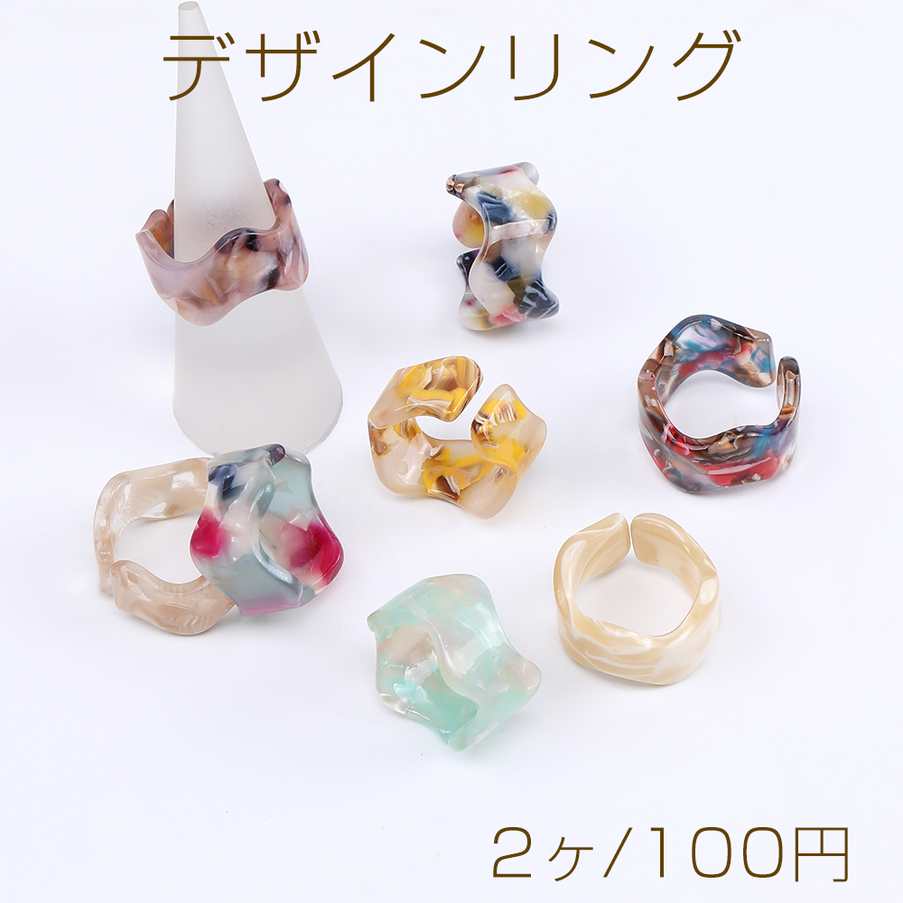 デザインリング 指輪 幅約14mm カラーミックス(2ヶ)