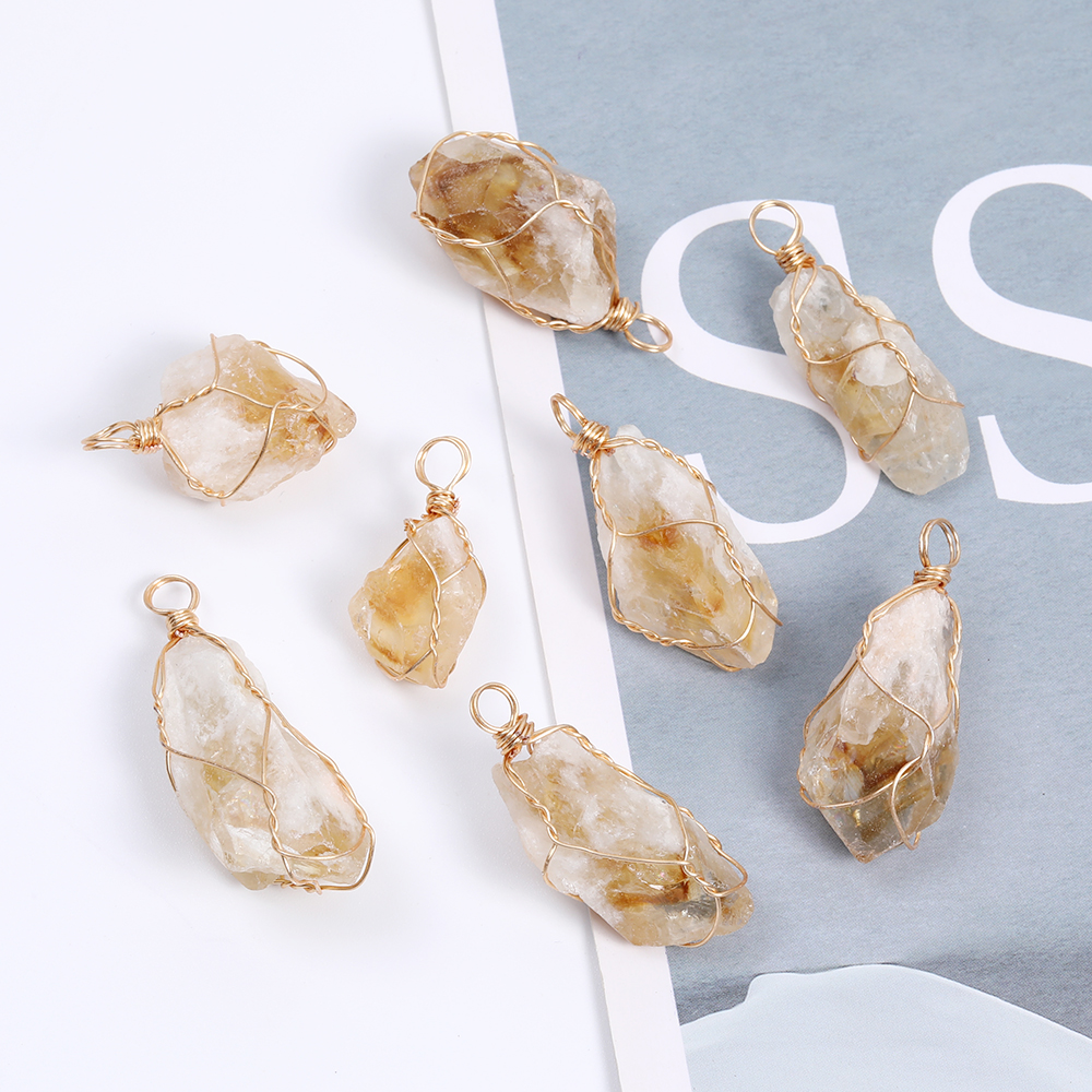 天然石チャーム フロスト加工 シトリン 不規則型(1ヶ)