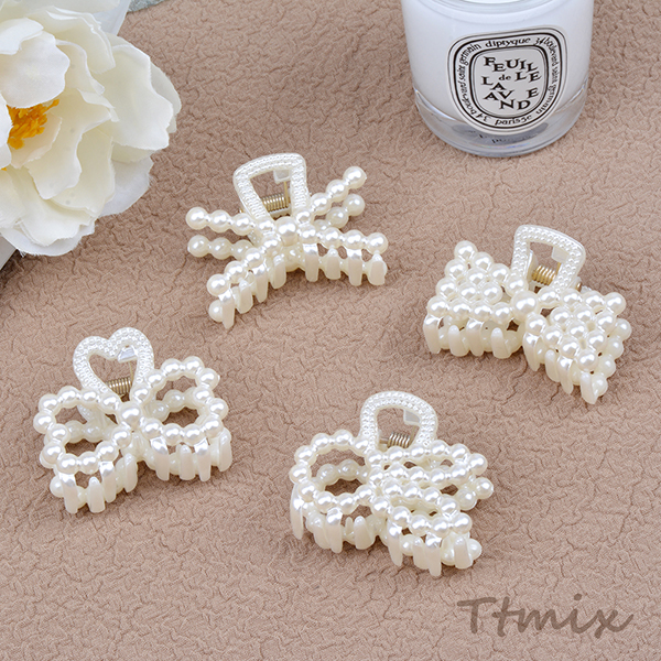 アクリルバンスクリップ ヘアアクセサリー パール風 3×4cm(6個セット)