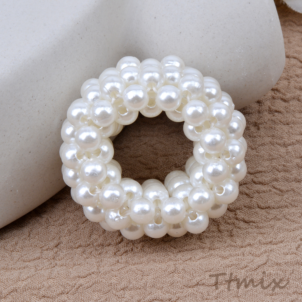 パール付きシュシュ ヘアアクセサリー 4cm(1ヶ)
