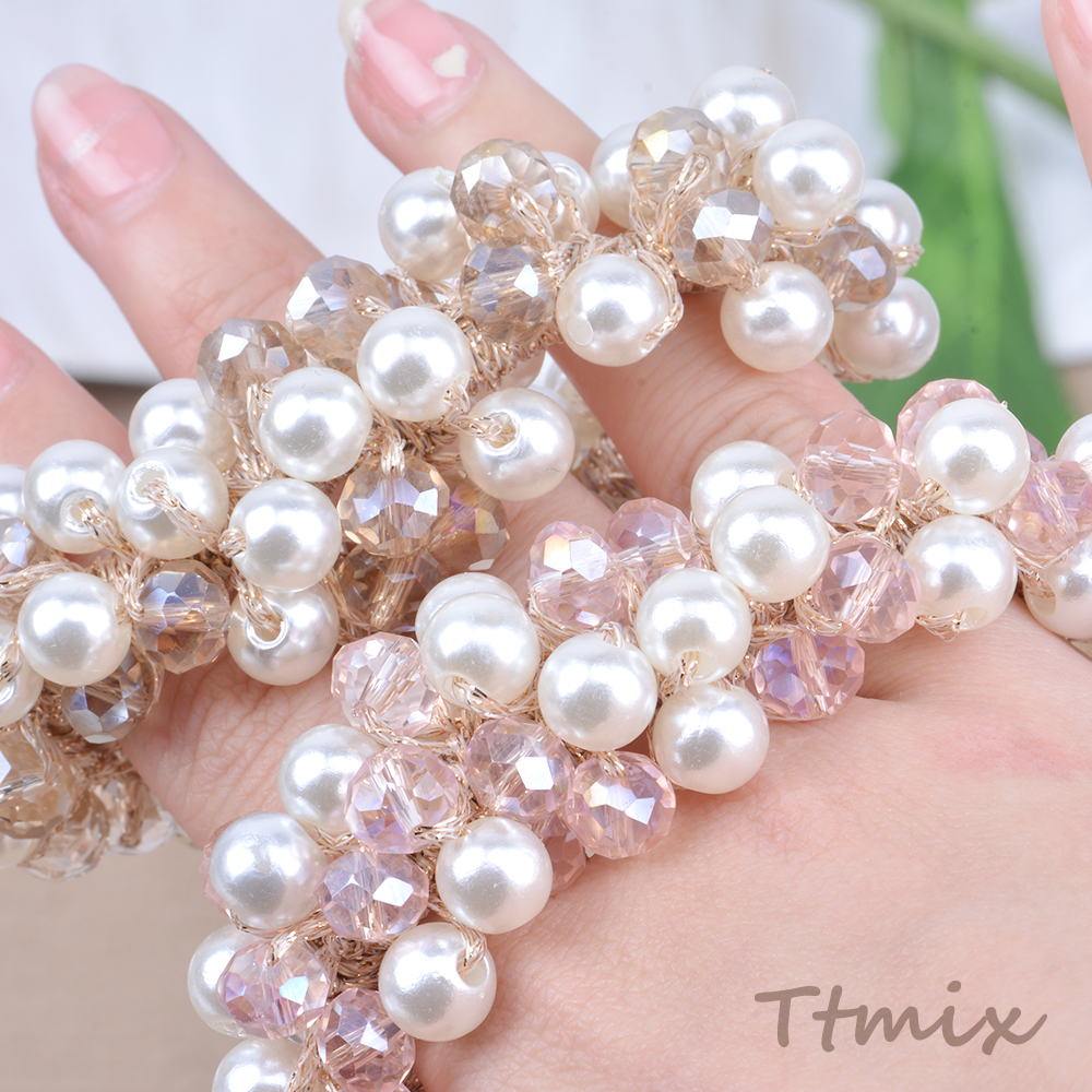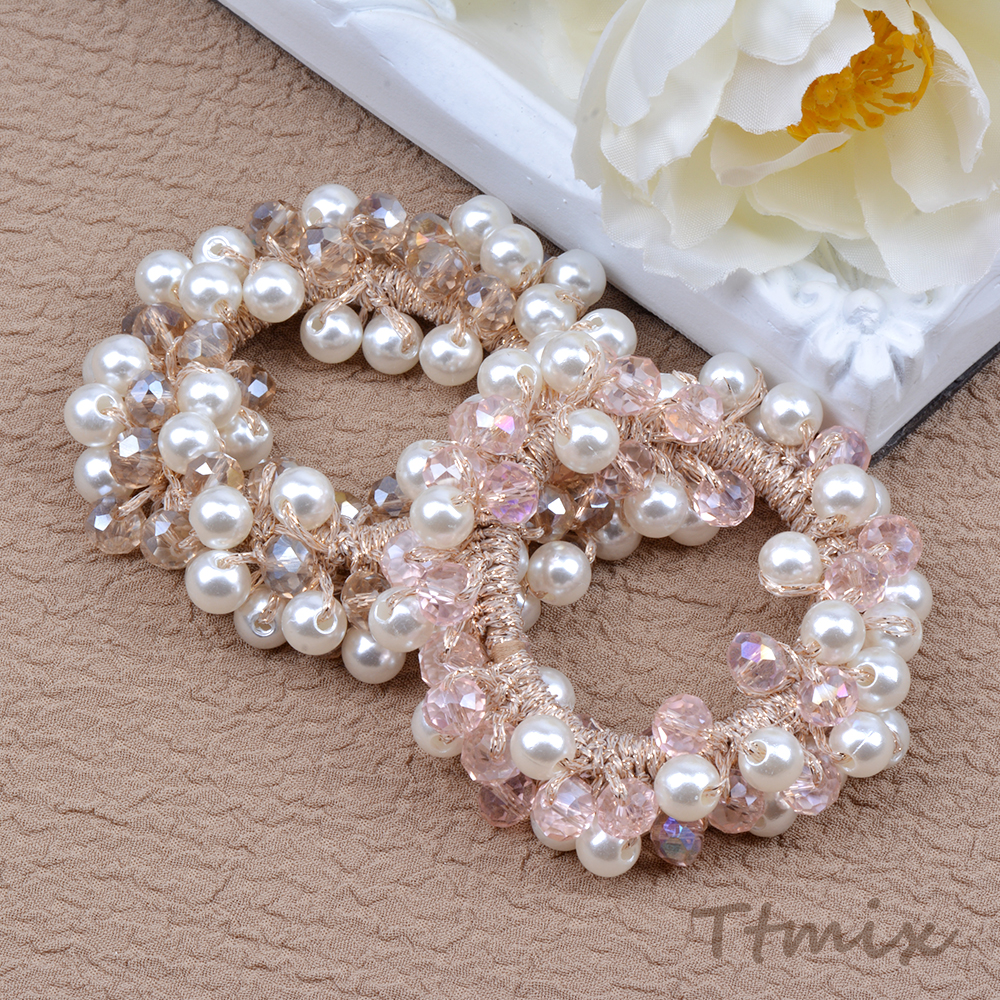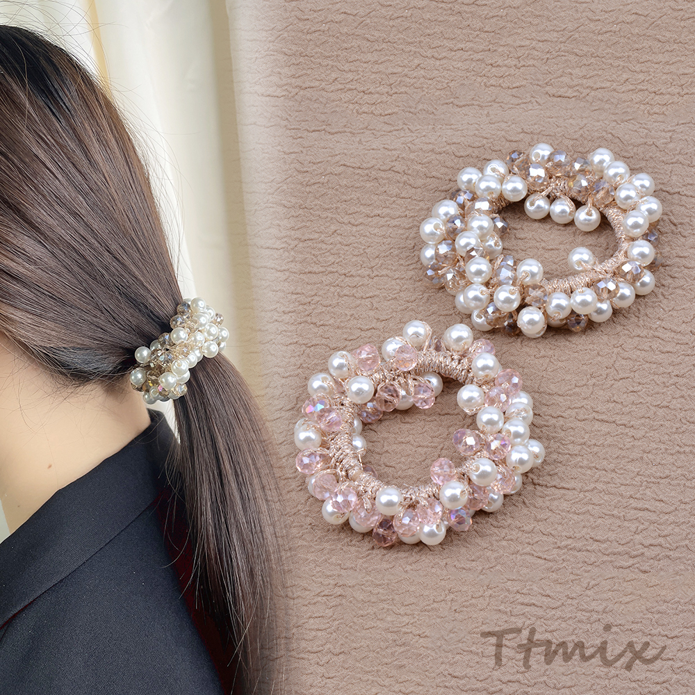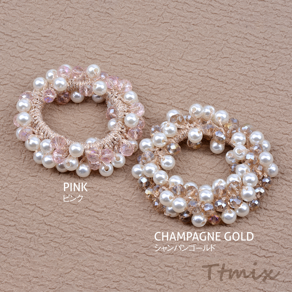 ガラスビーズ&パール付きシュシュ ヘアアクセサリー 7cm(1ヶ)