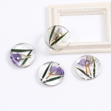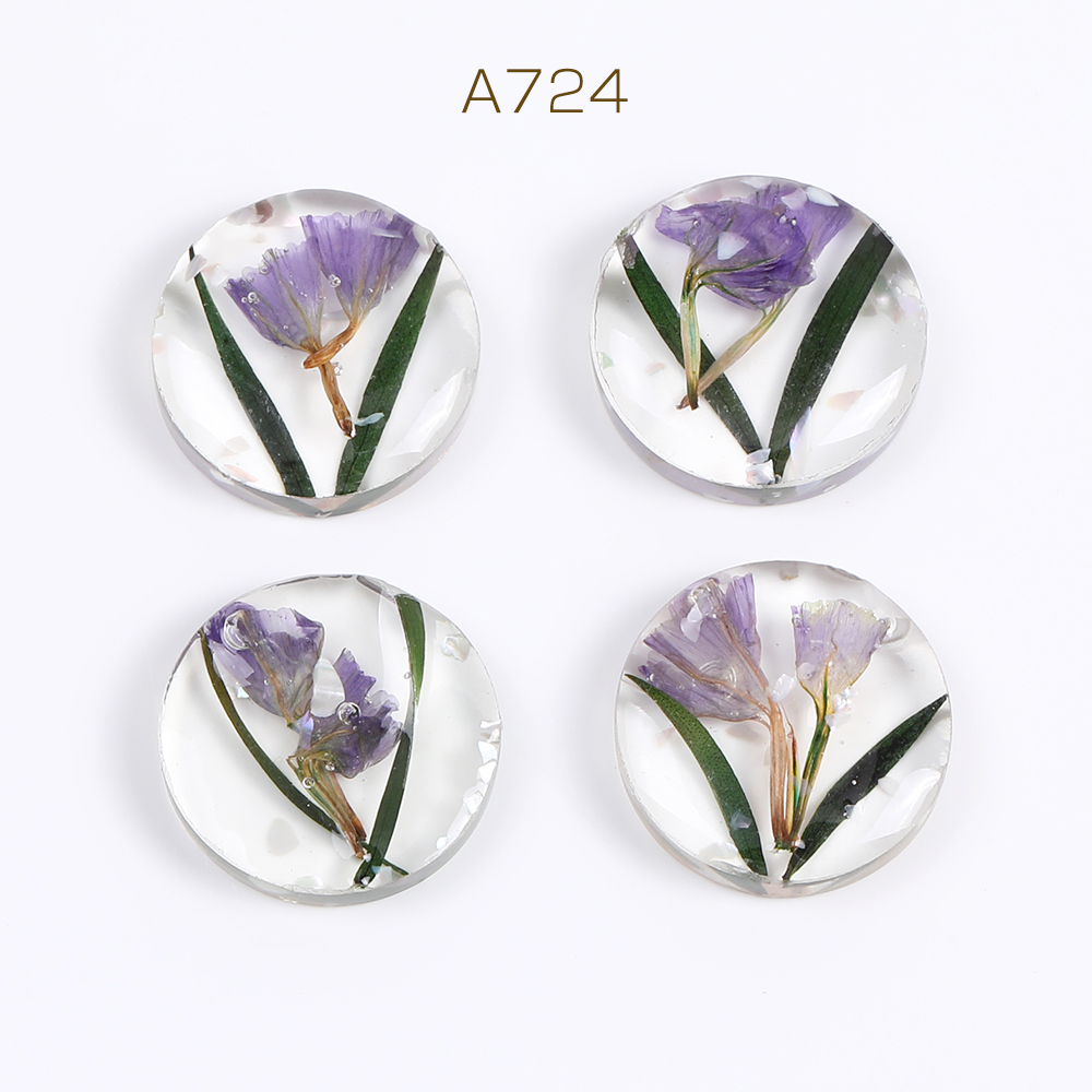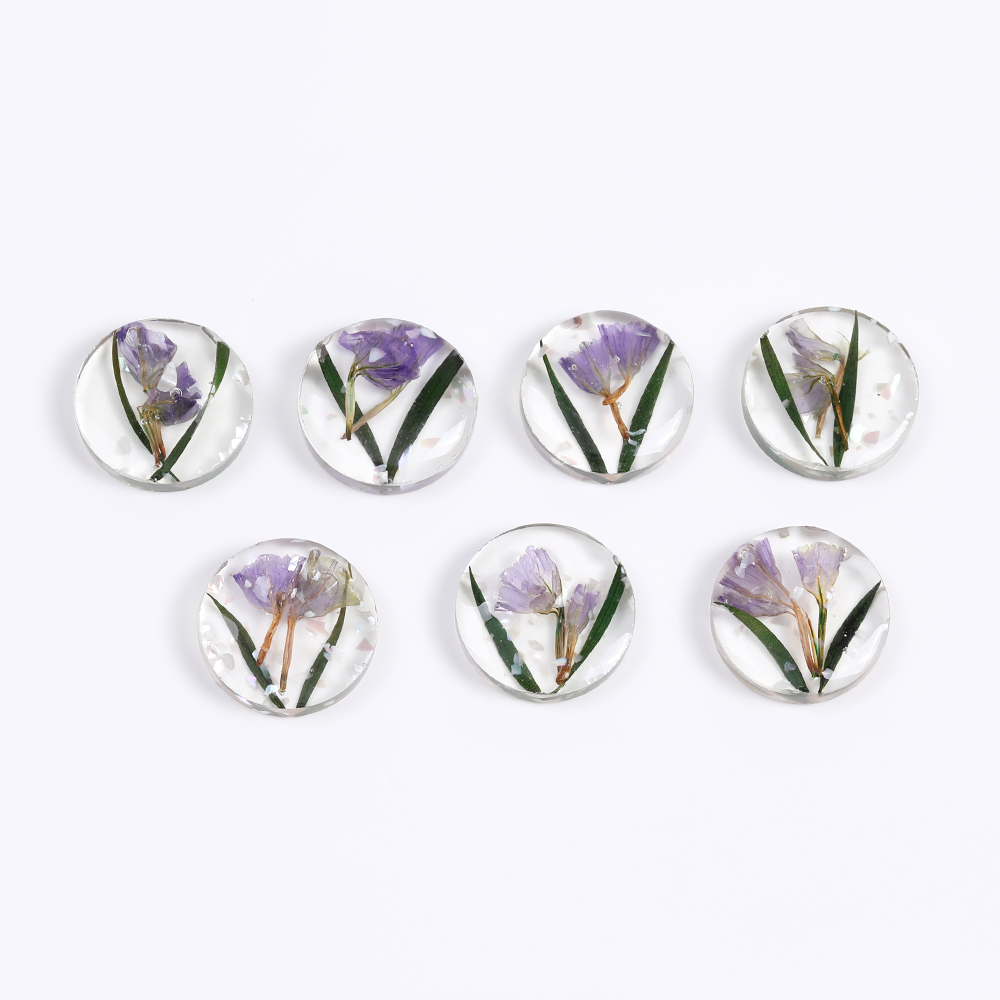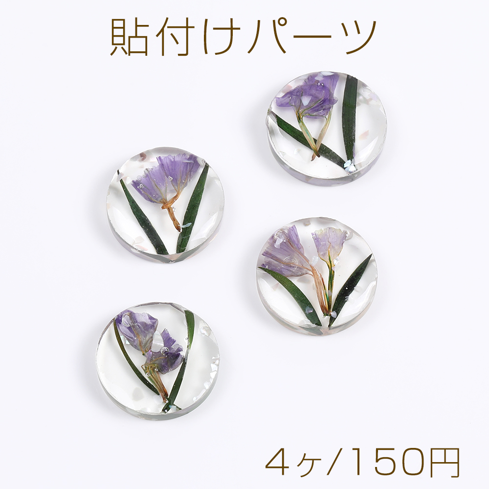 貼付けパーツ 樹脂貼付けパーツ 樹脂カボション コイン型 18mm ドライフラワー&シェルパウダー封入 クリア(4ヶ)