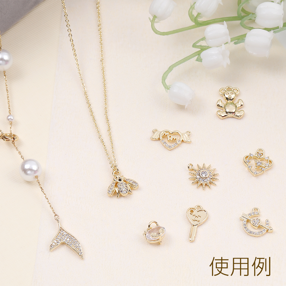 高品質ジルコニアチャーム 太陽 10.5×13mm ゴールド(1ヶ)