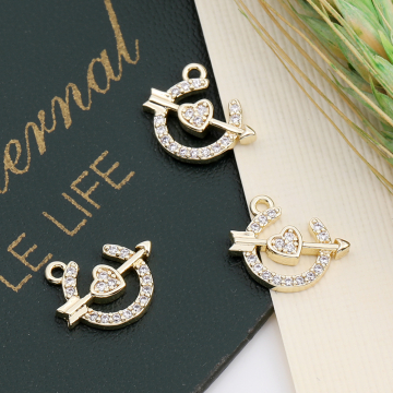 高品質ジルコニアチャーム キューピットの矢 ハート 11×12mm ゴールド(1ヶ)