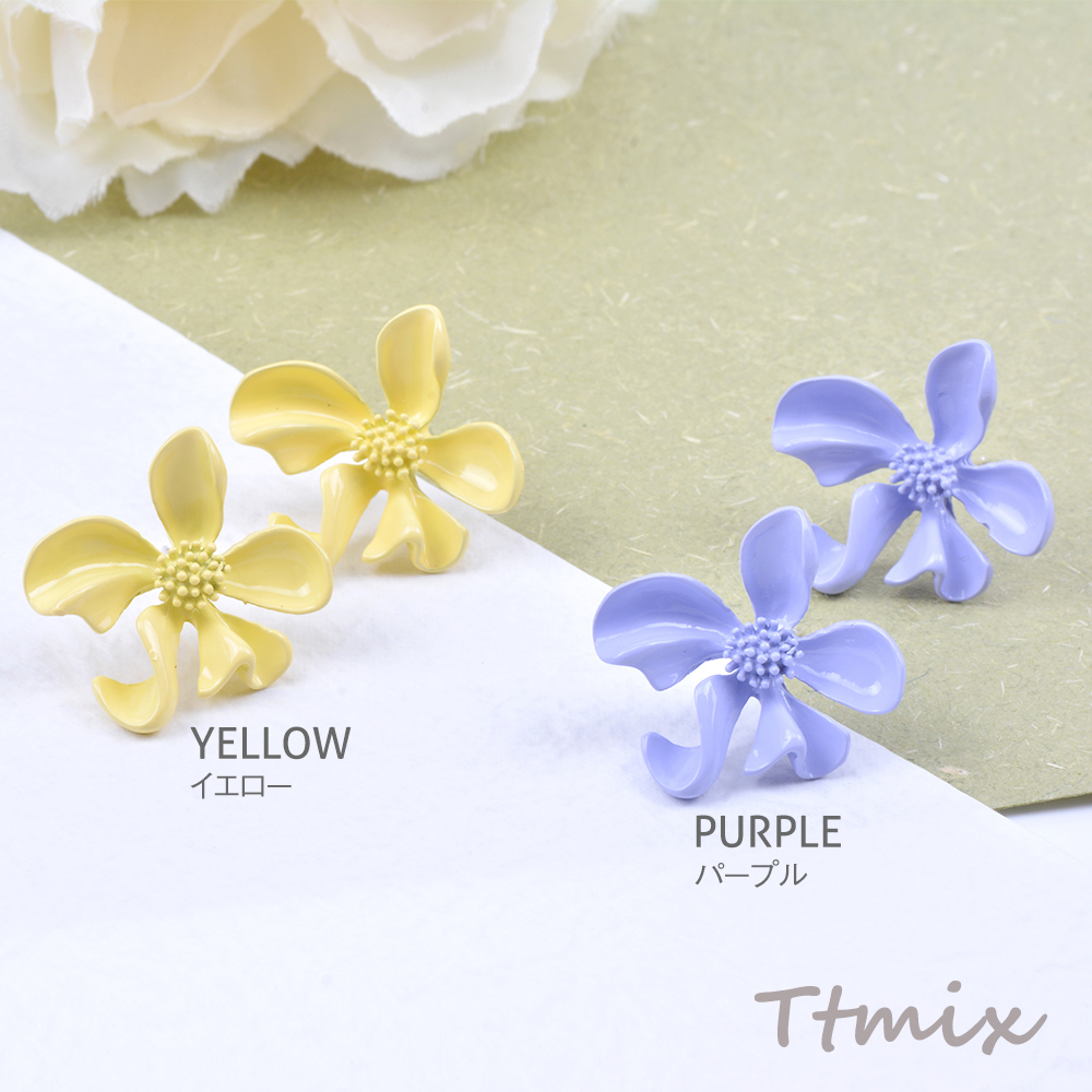 デザインピアス 塗装フラワーピアス 19×23mm(1ペア)