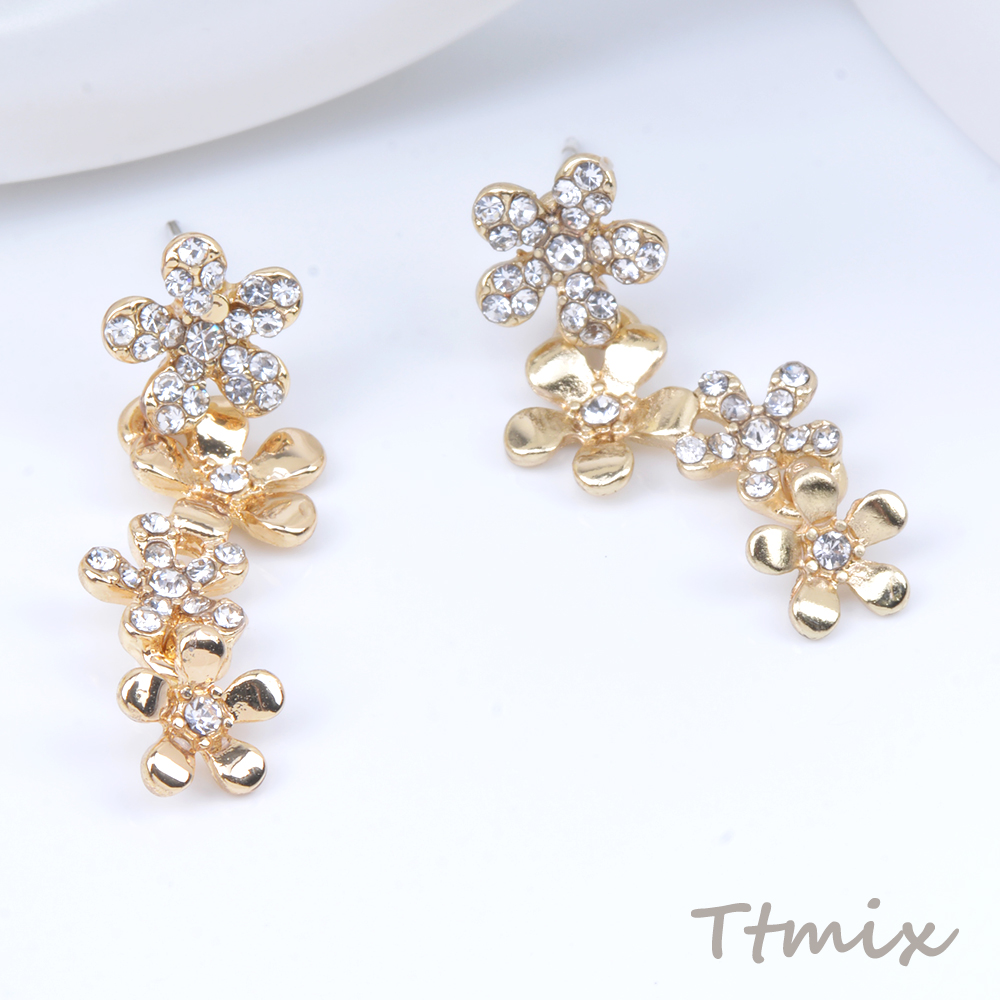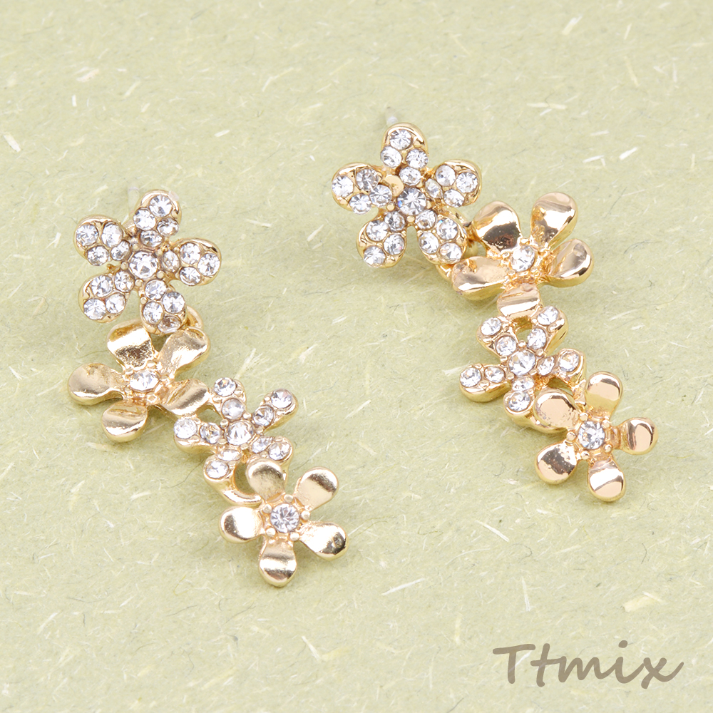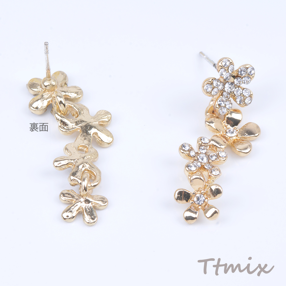 デザインピアス ラインストーン付きフラワーピアス 10×30mm ゴールド(1ペア)