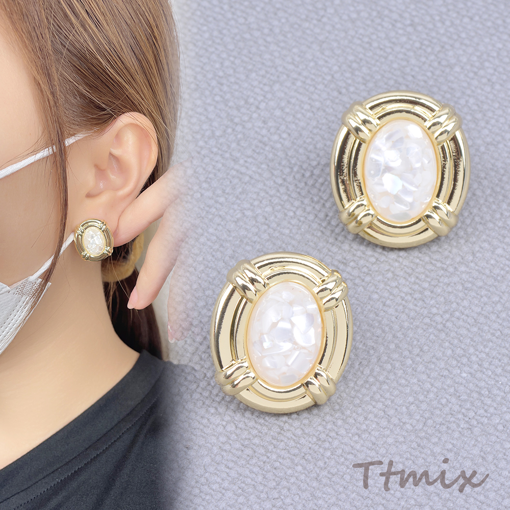 デザインピアス オーバル 19×21mm ゴールド(1ペア)