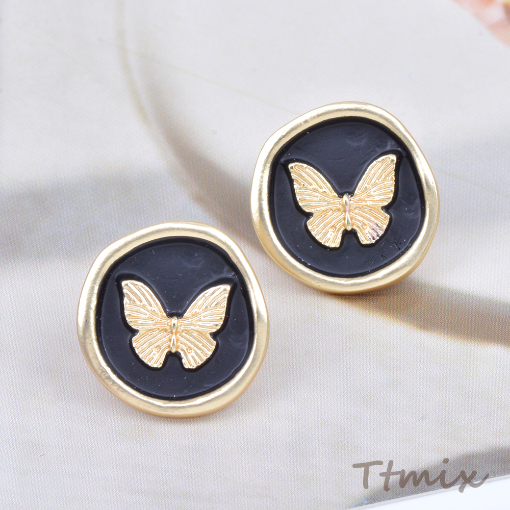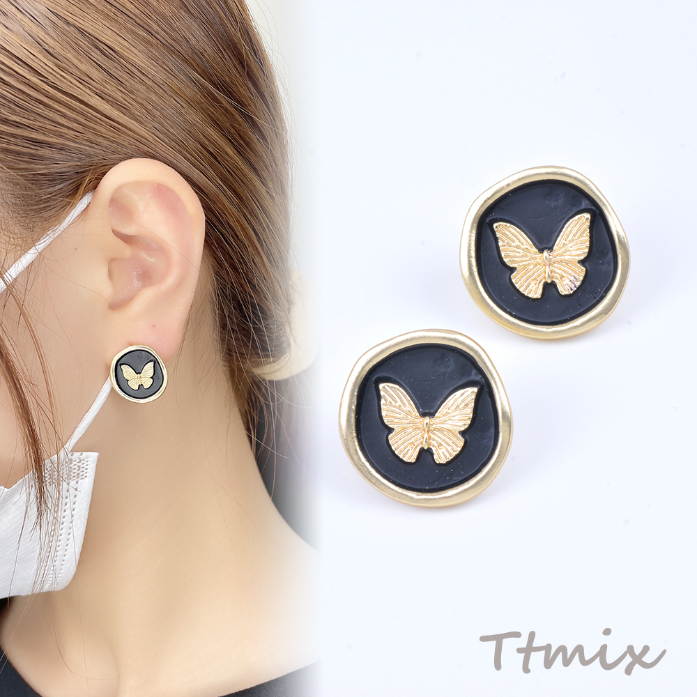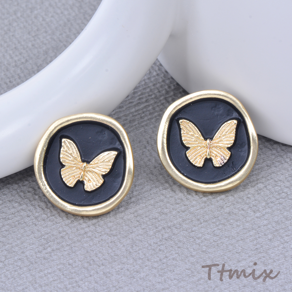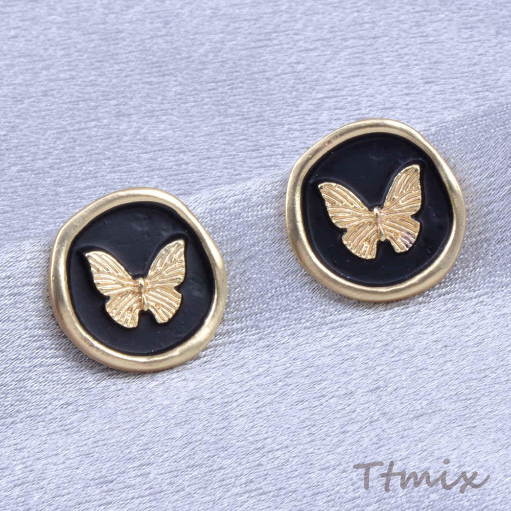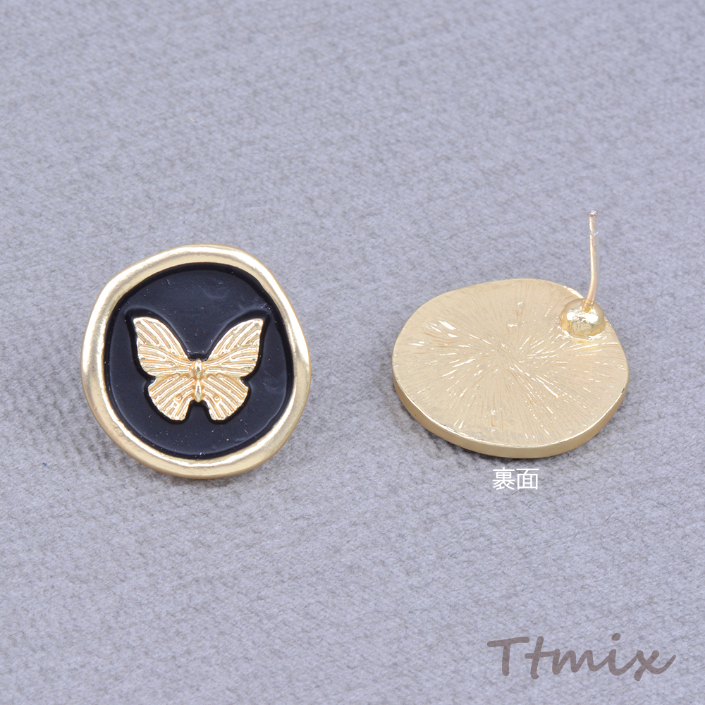 デザインピアス ラウンド 蝶 17mm マットライトゴールド(1ペア)
