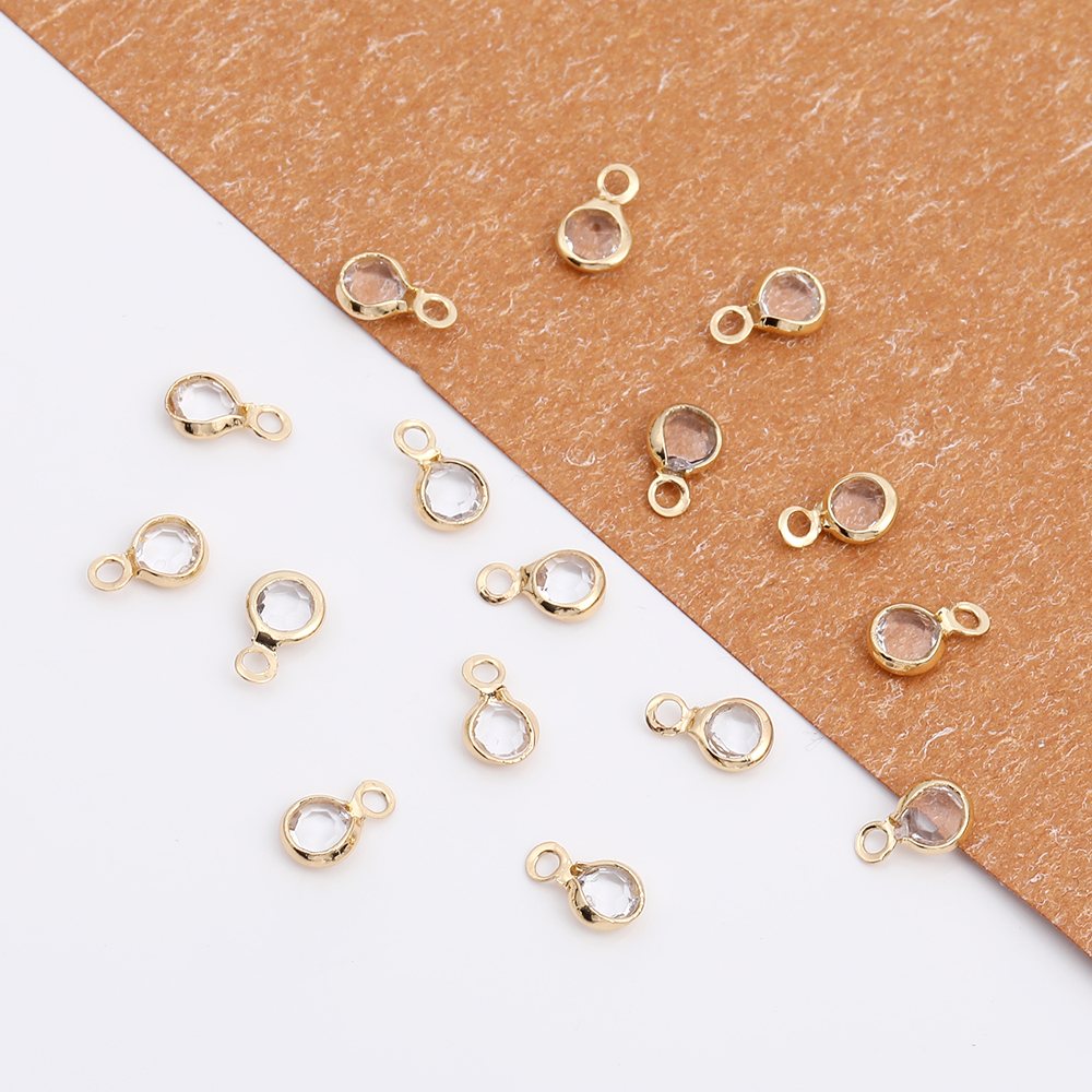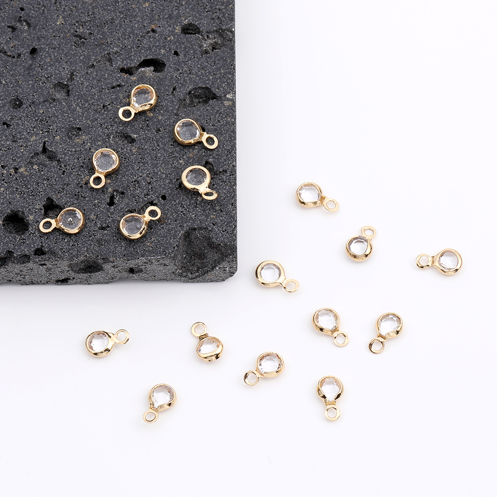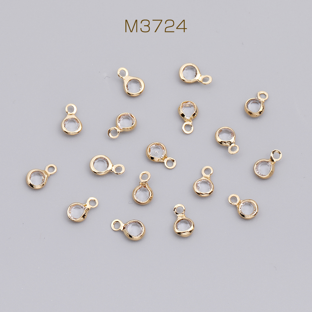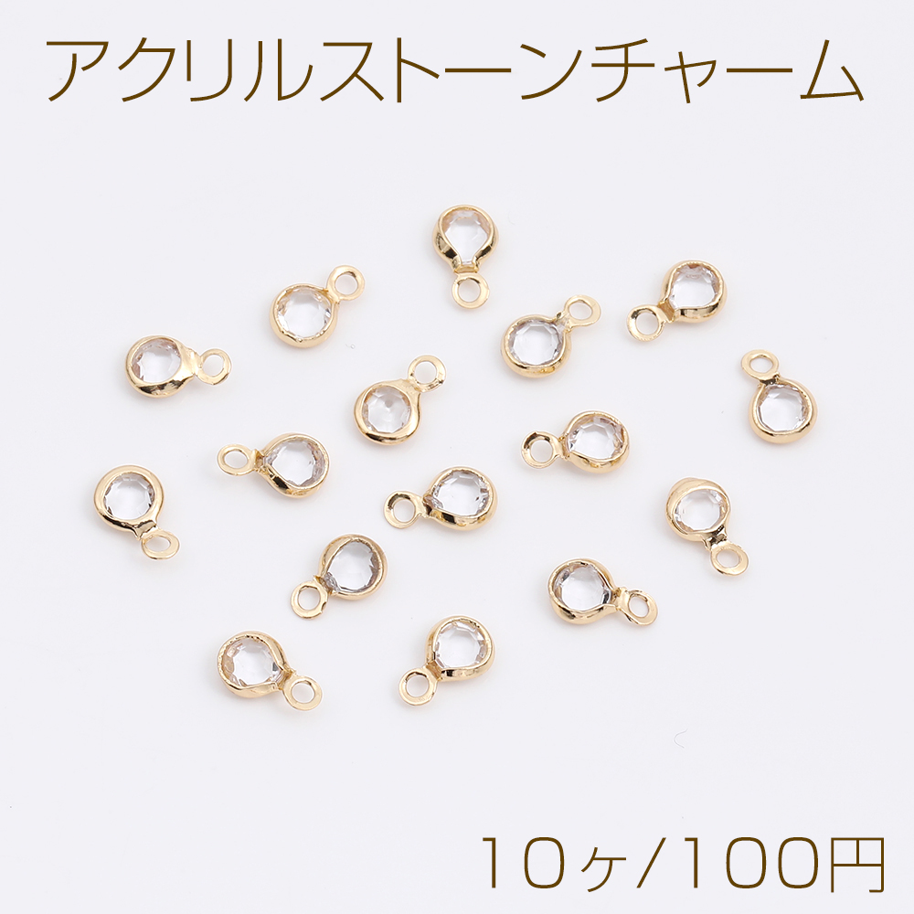 アクリルストーンチャーム ラウンド カン付き 4.5×7.5mm ゴールド(10ヶ)