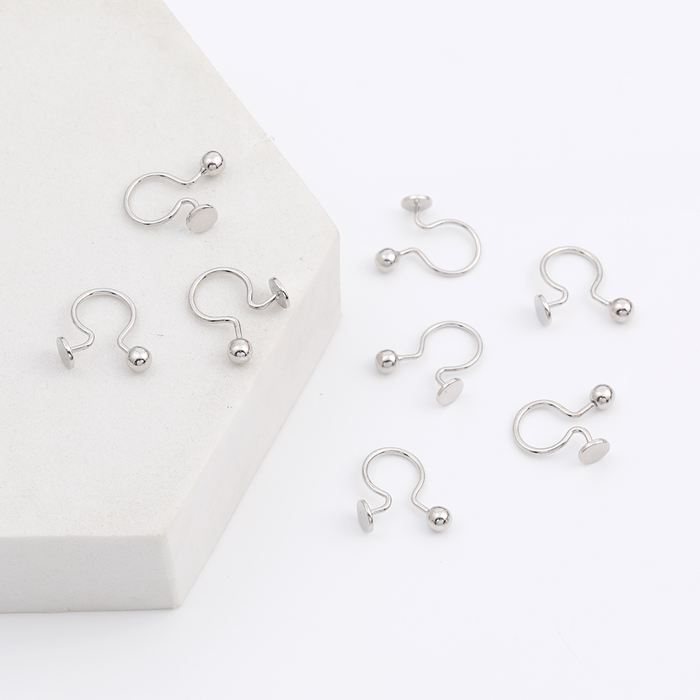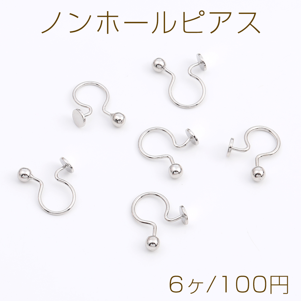 ノンホールピアス 平皿 4mm ロジウム(6ヶ)