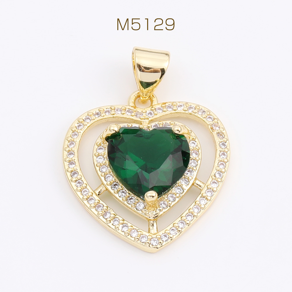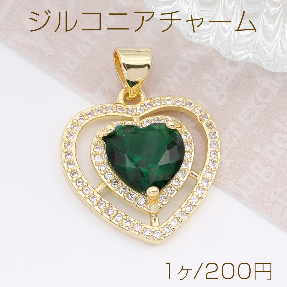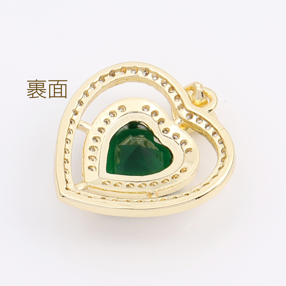 高品質ジルコニアチャーム ハート型 18×24mm ゴールド(1ヶ)