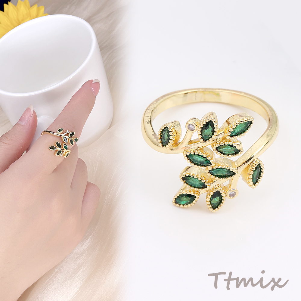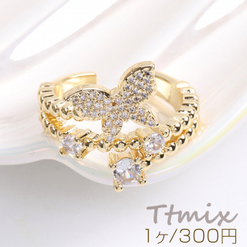 高品質ジルコニアリング デザインリング 指輪 リーフの枝 幅約17mm ゴールド(1ヶ)