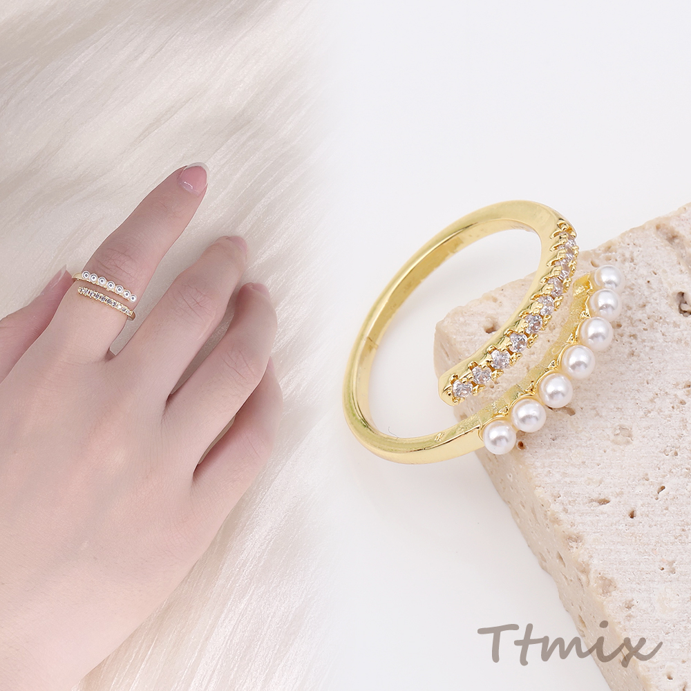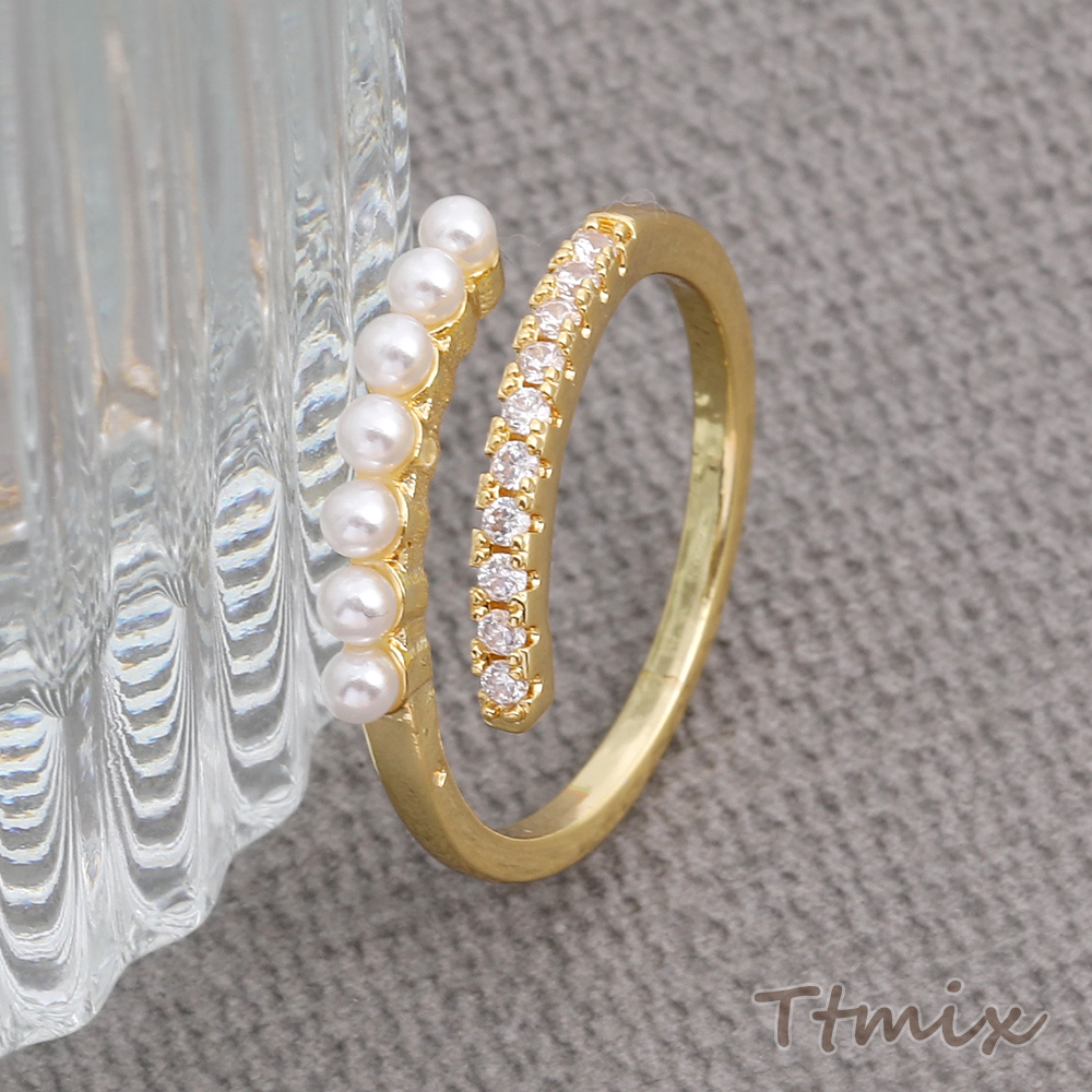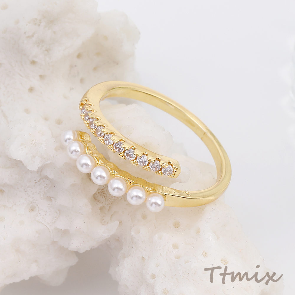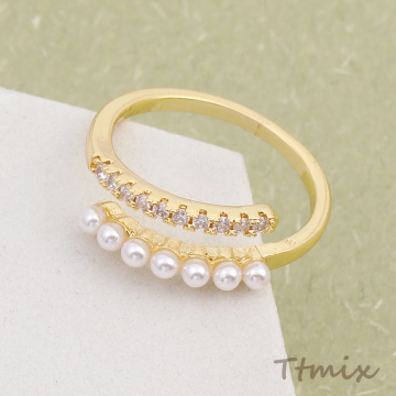 高品質ジルコニアリング デザインリング 指輪 パール付き 幅約6mm ゴールド(1ヶ)