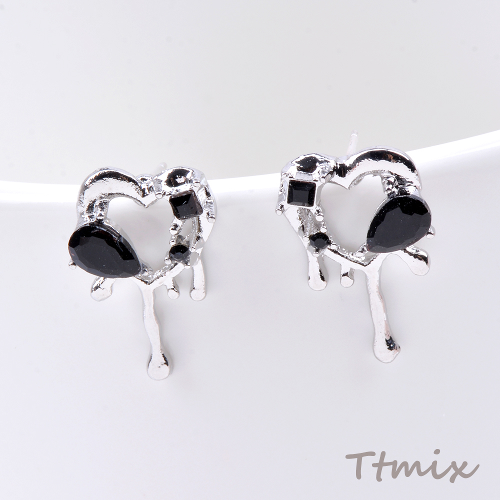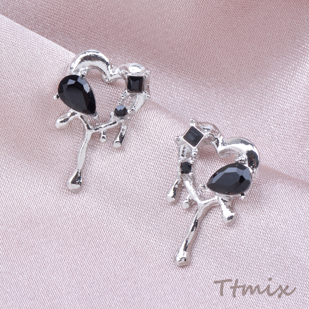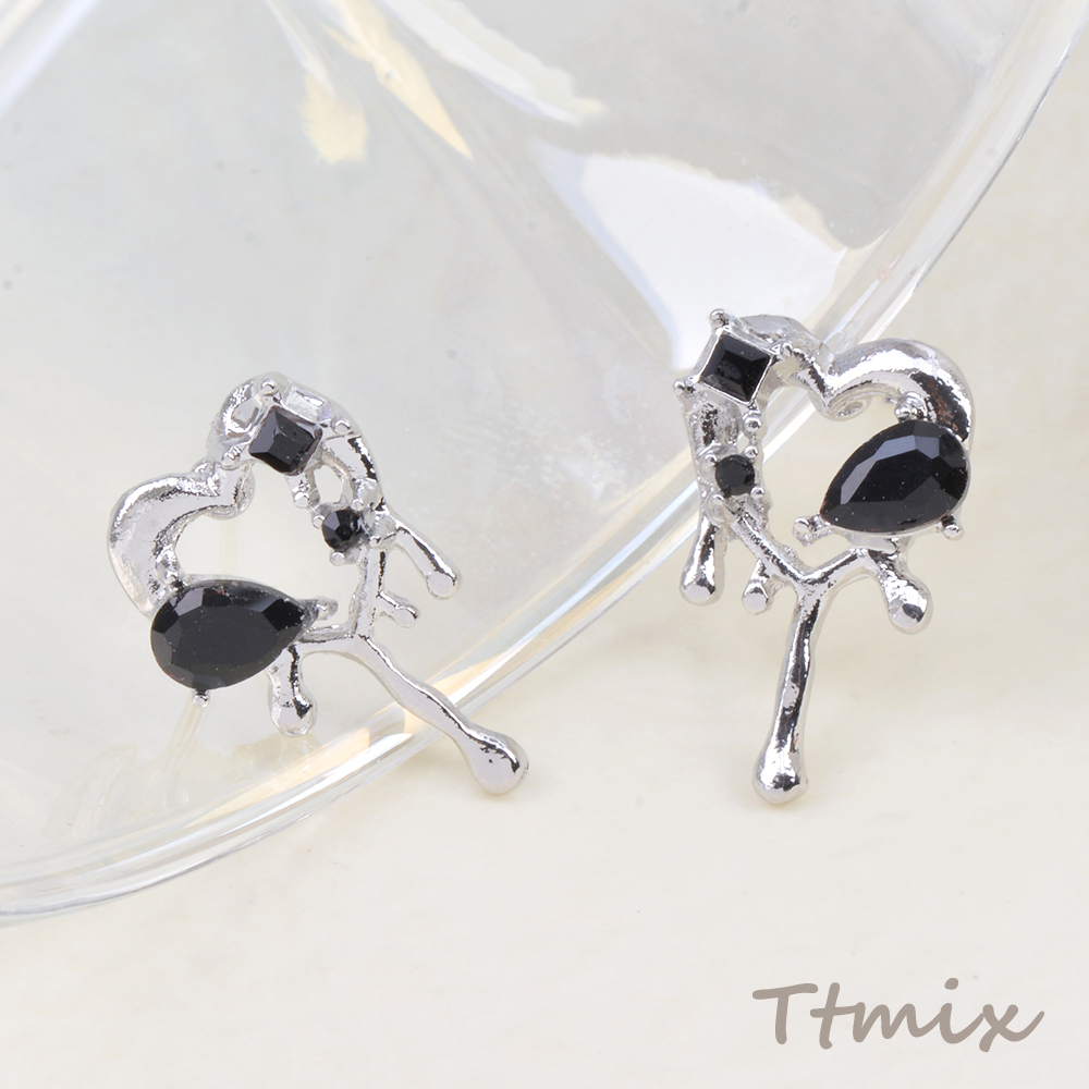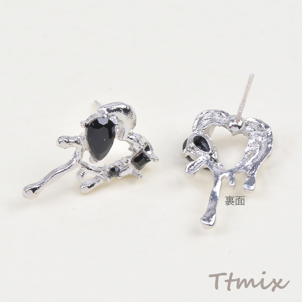 デザインピアス ハート型 ジルコニア付き 11×19mm ロジウム ブラック(1ペア)