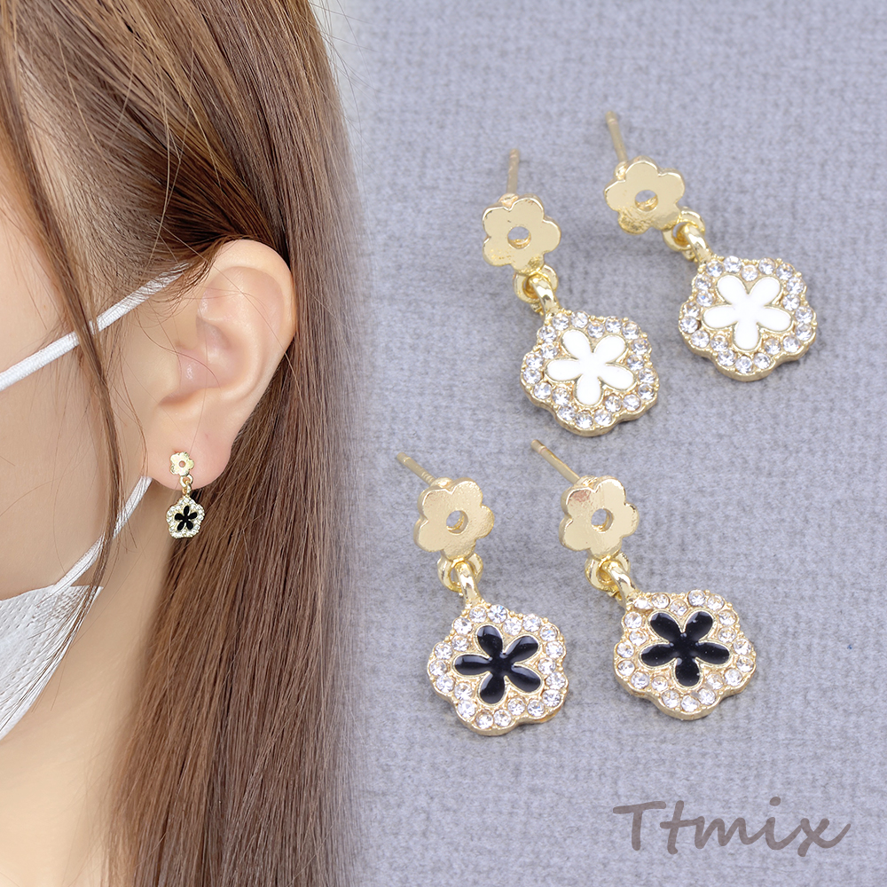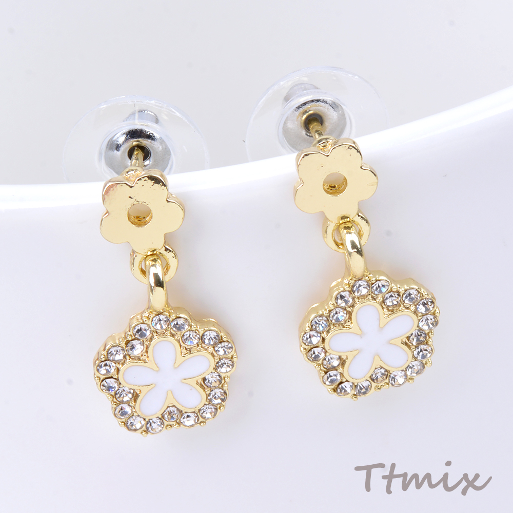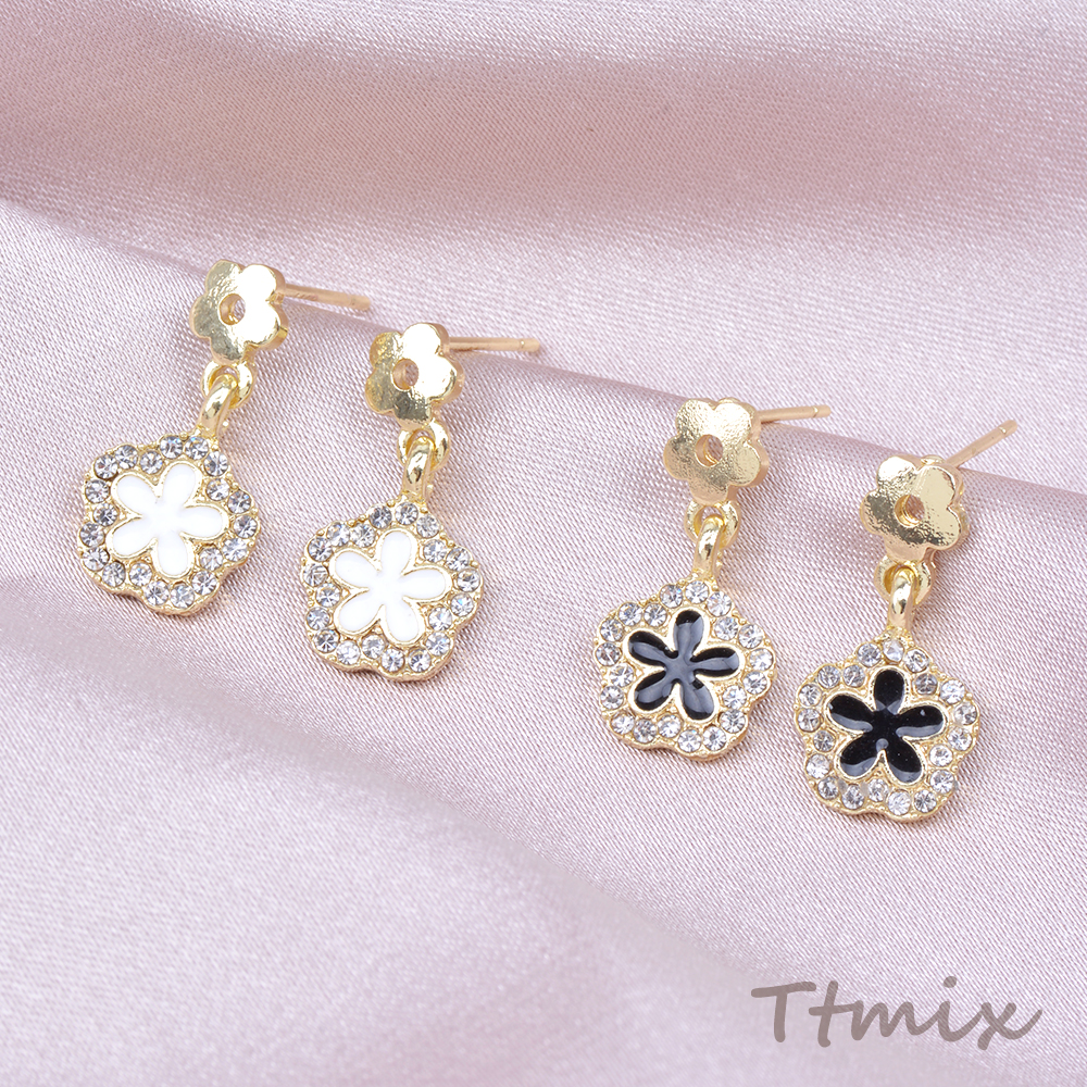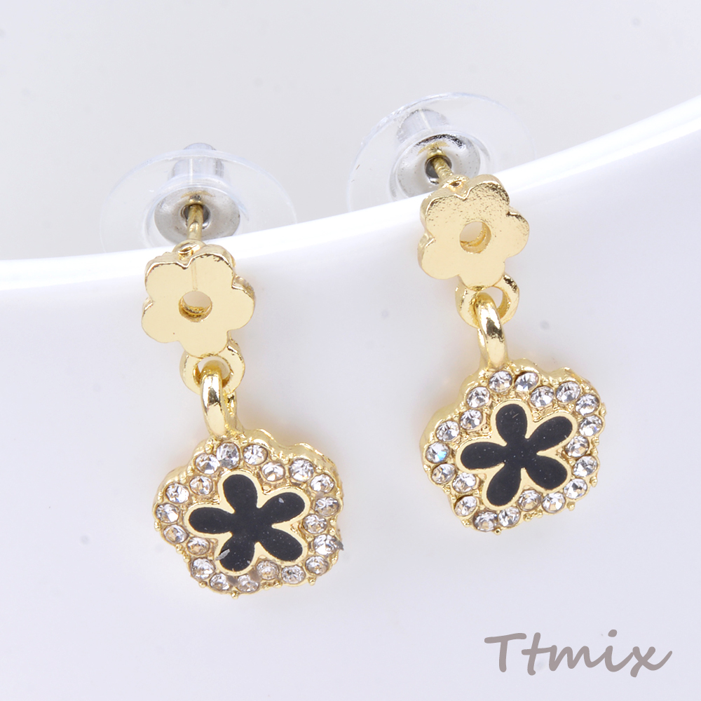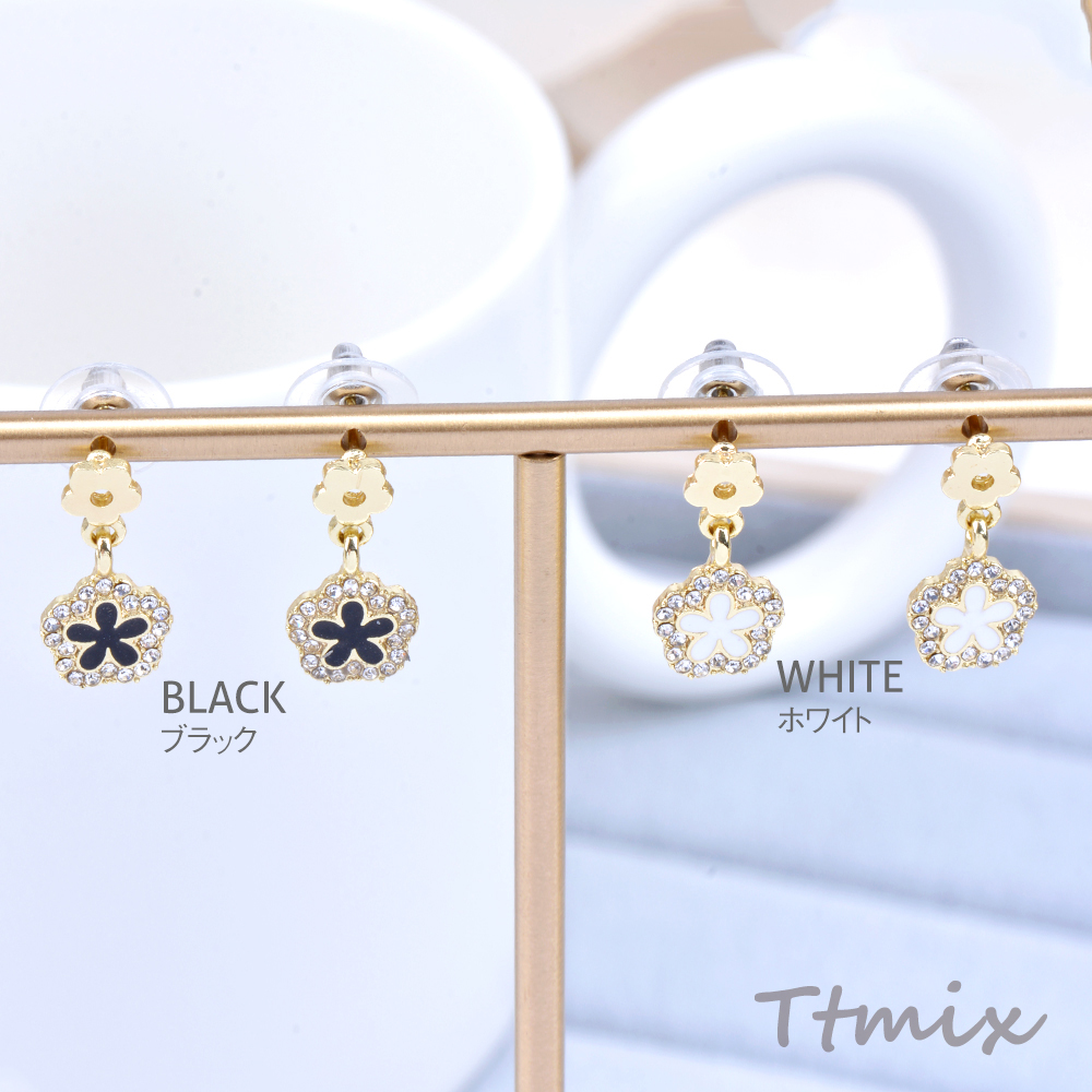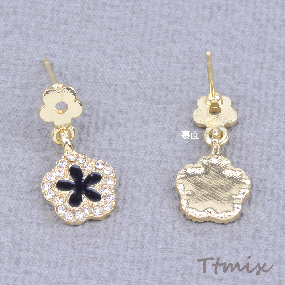 デザインピアス フラワー ラインストーン付き 10×20mm ゴールド(1ペア)