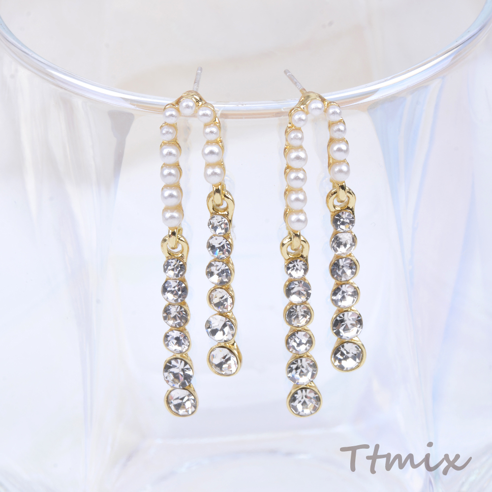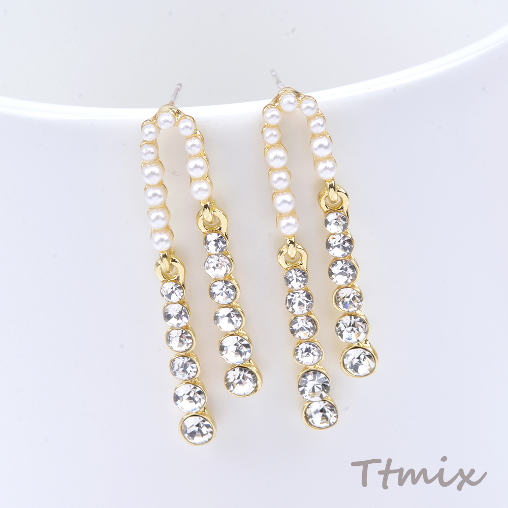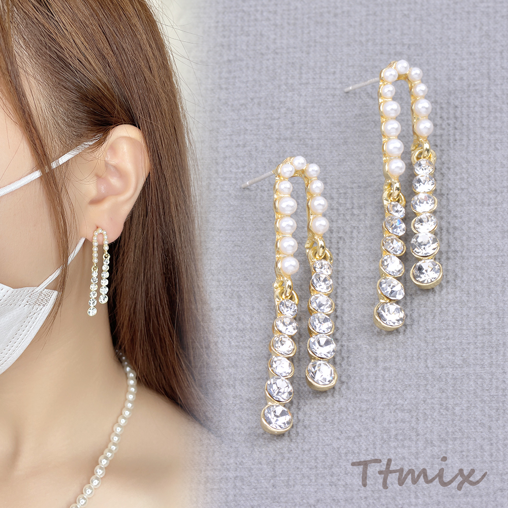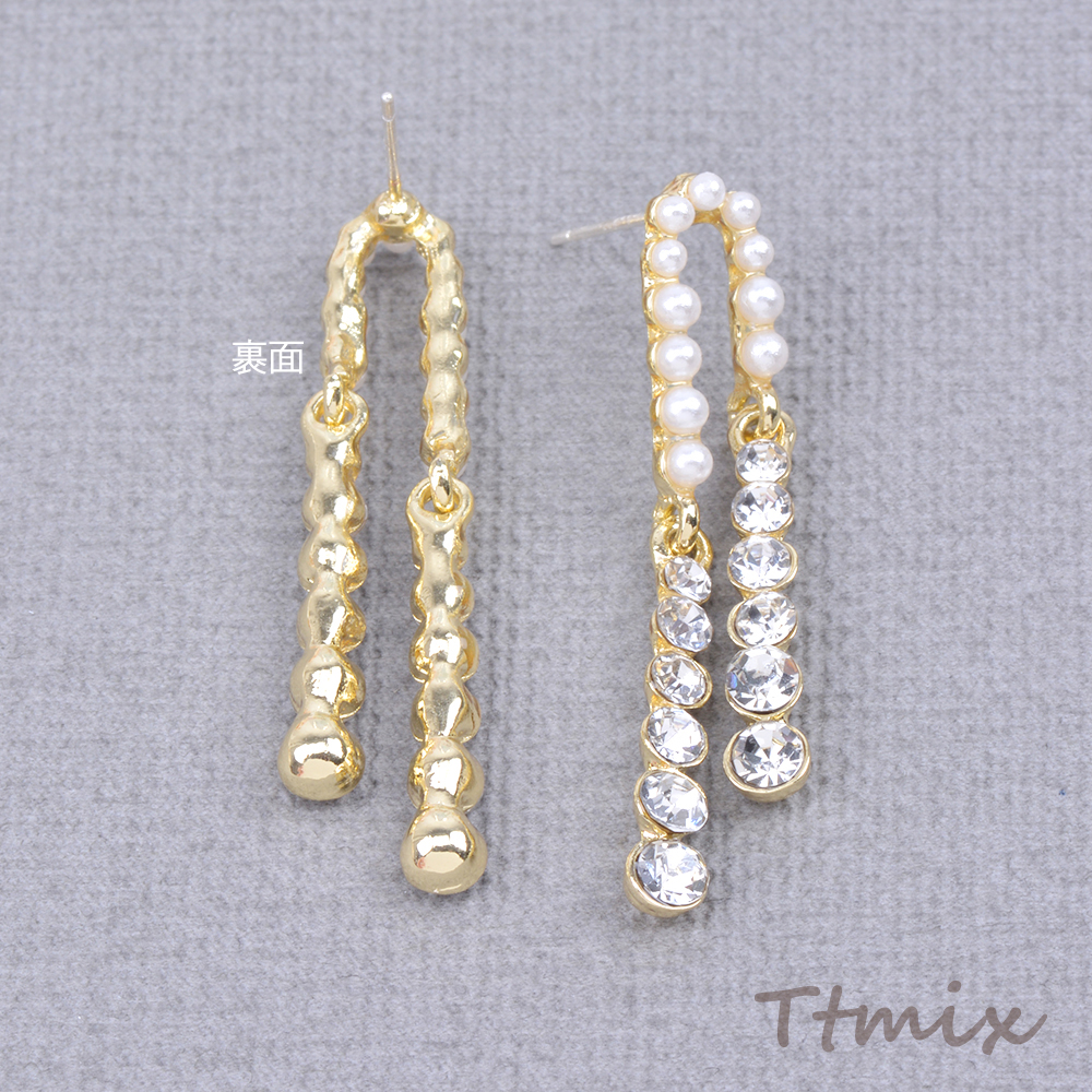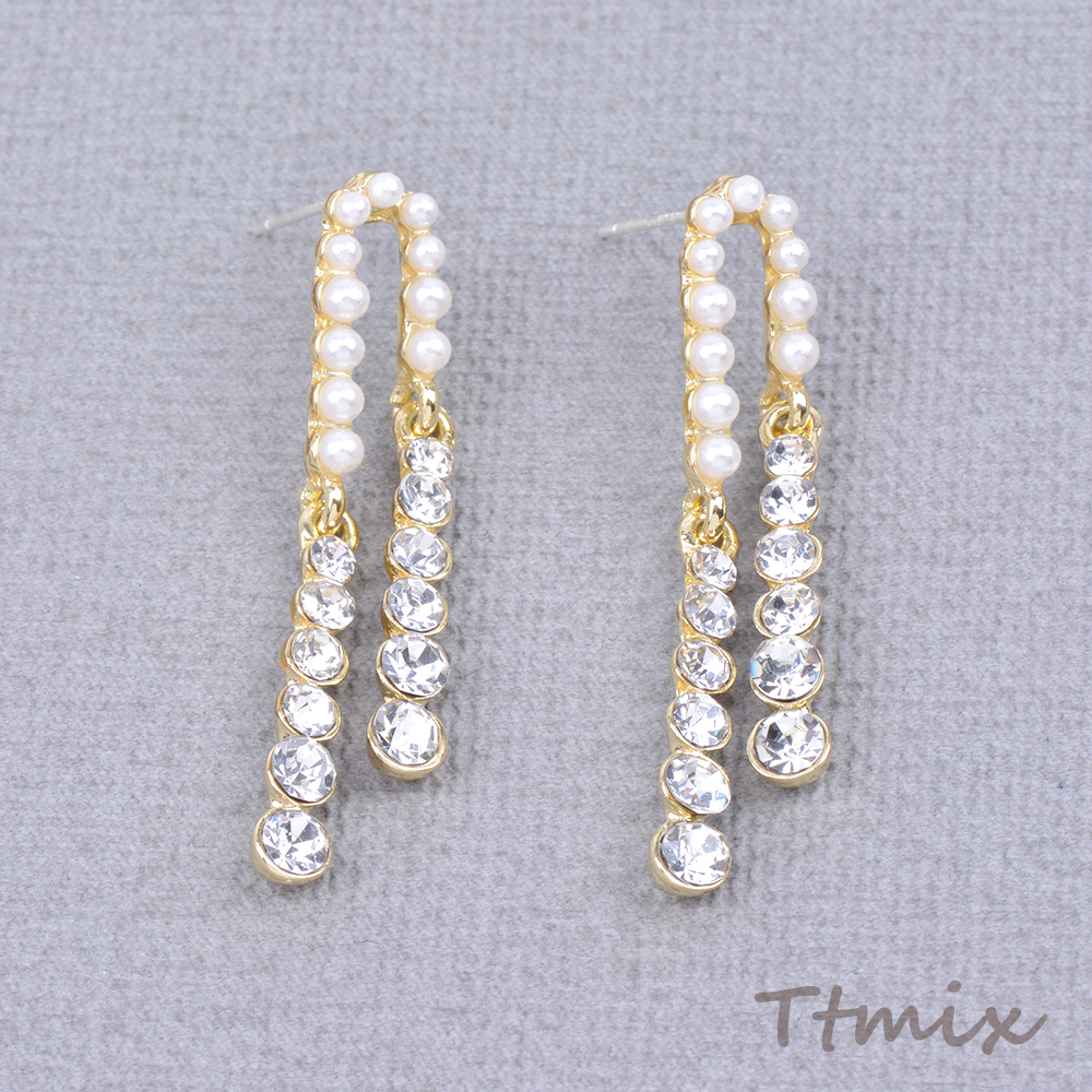 デザインピアス タッセル パール&ラインストーン付き 9×44mm ゴールド(1ペア)