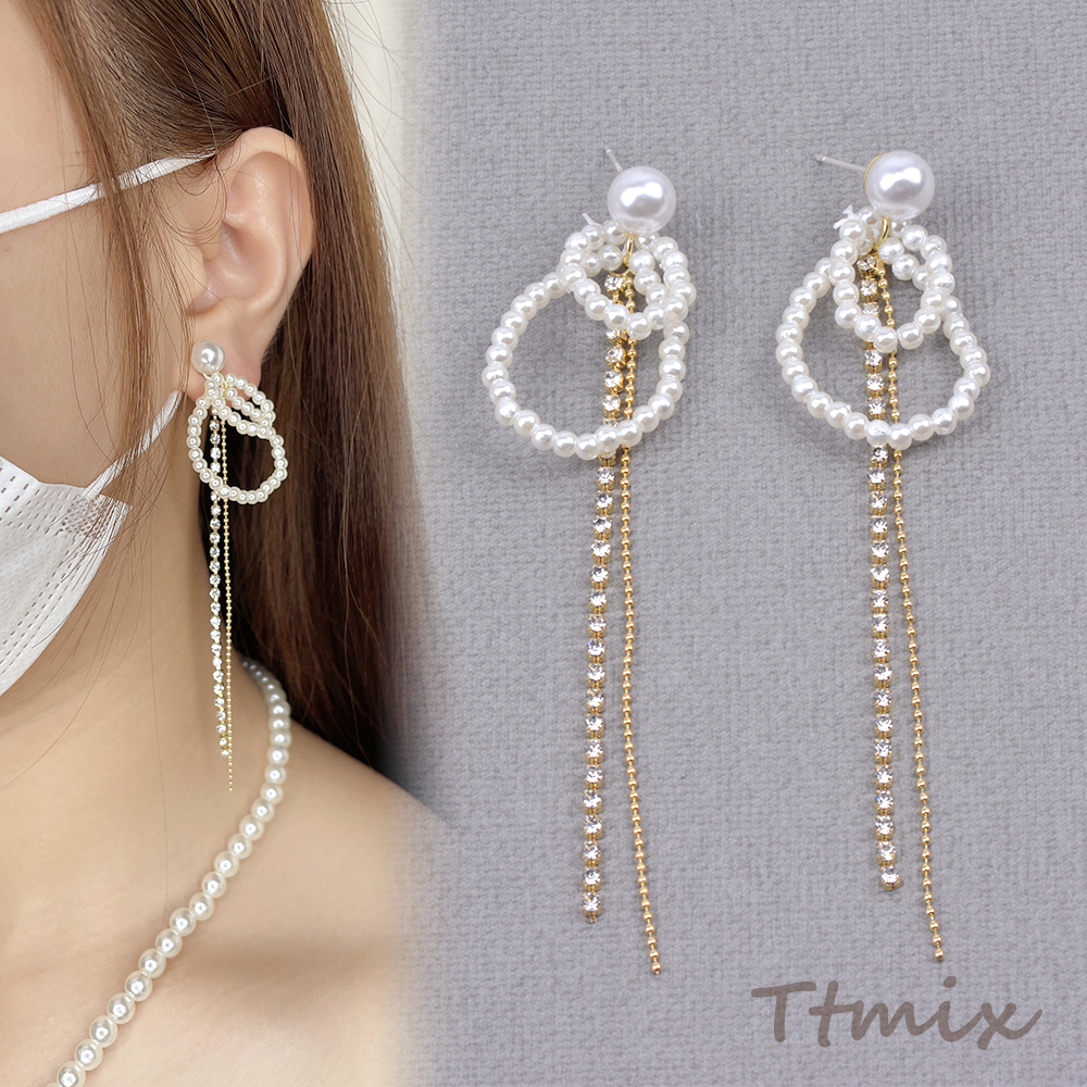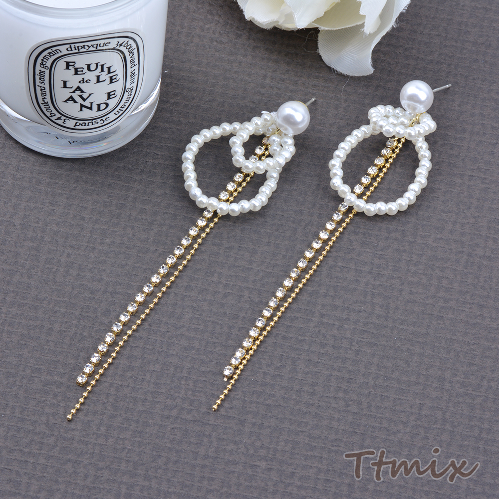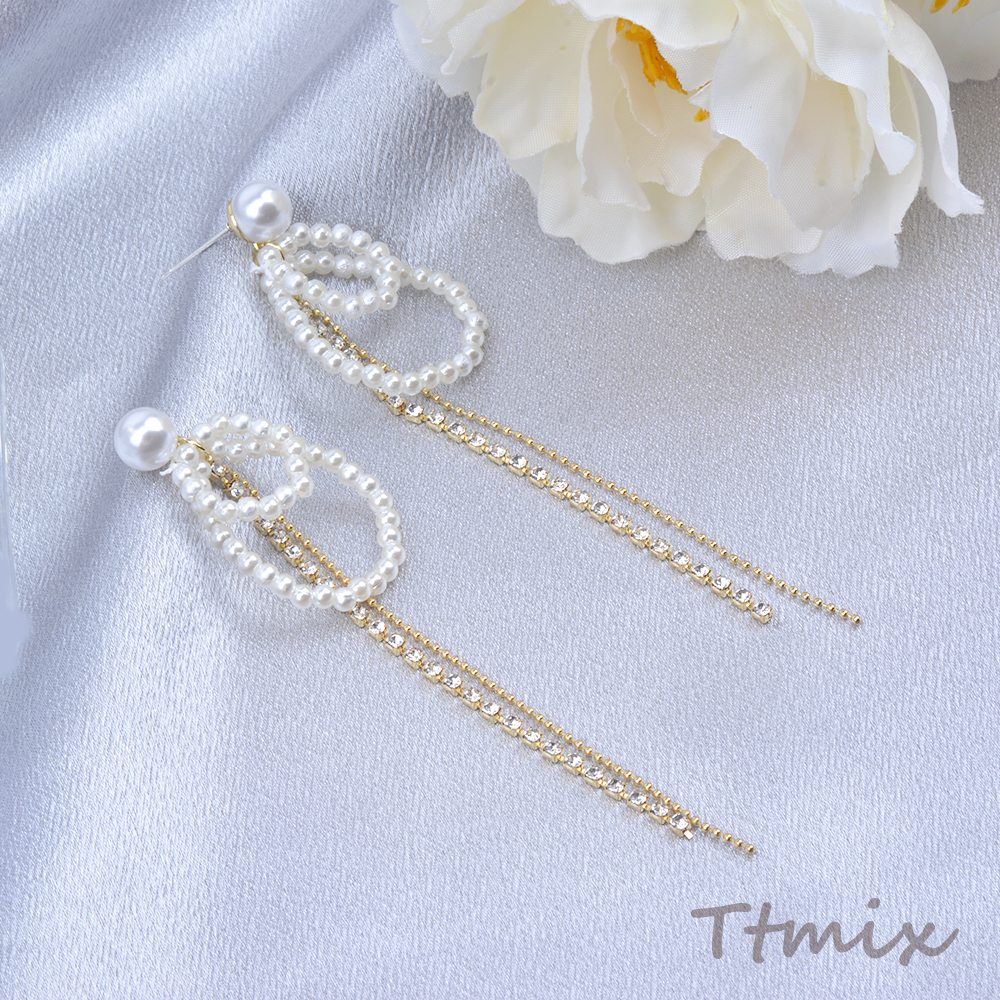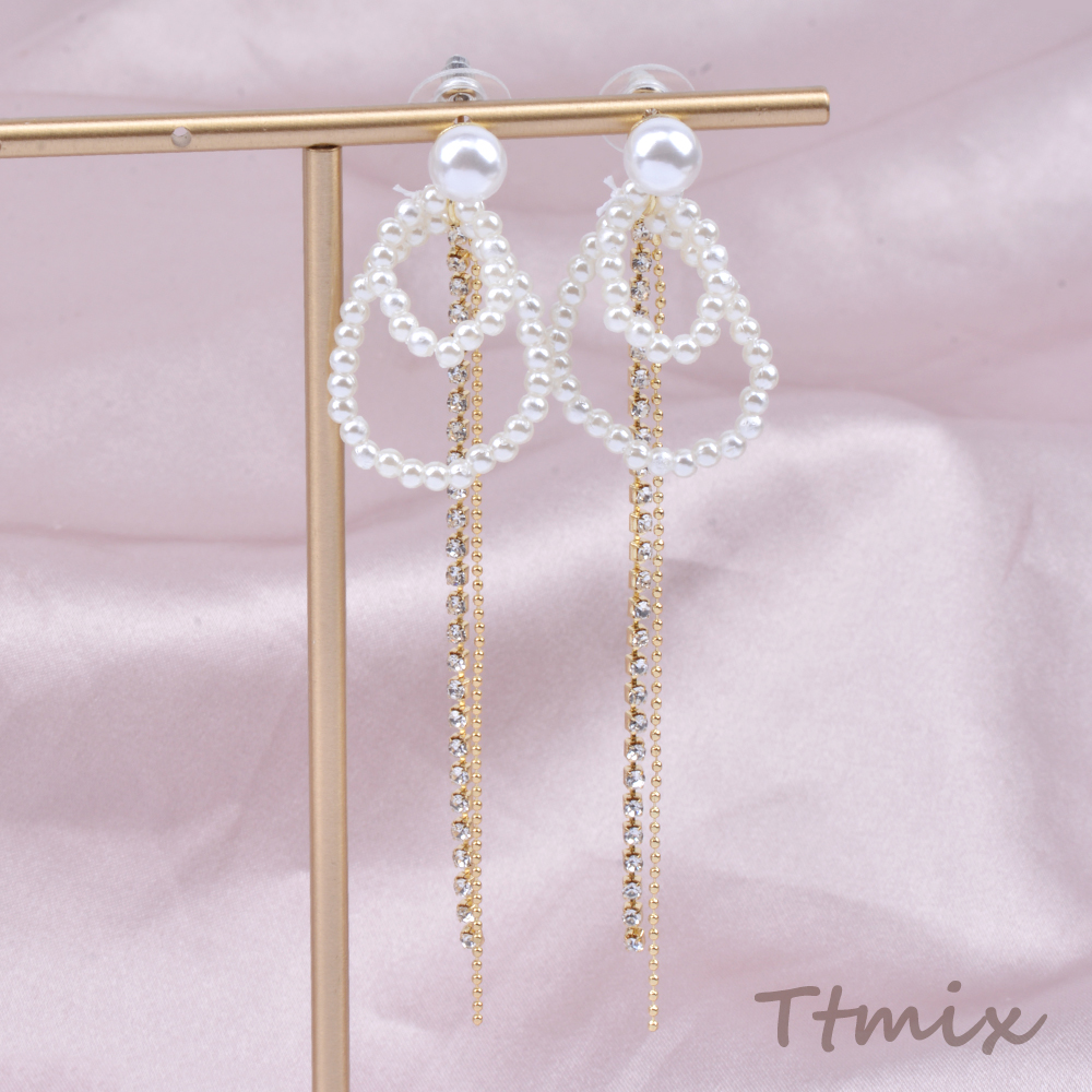 デザインピアス タッセル パール&ラインストーン付き 23×100mm ゴールド(1ペア)
