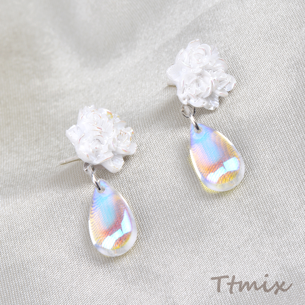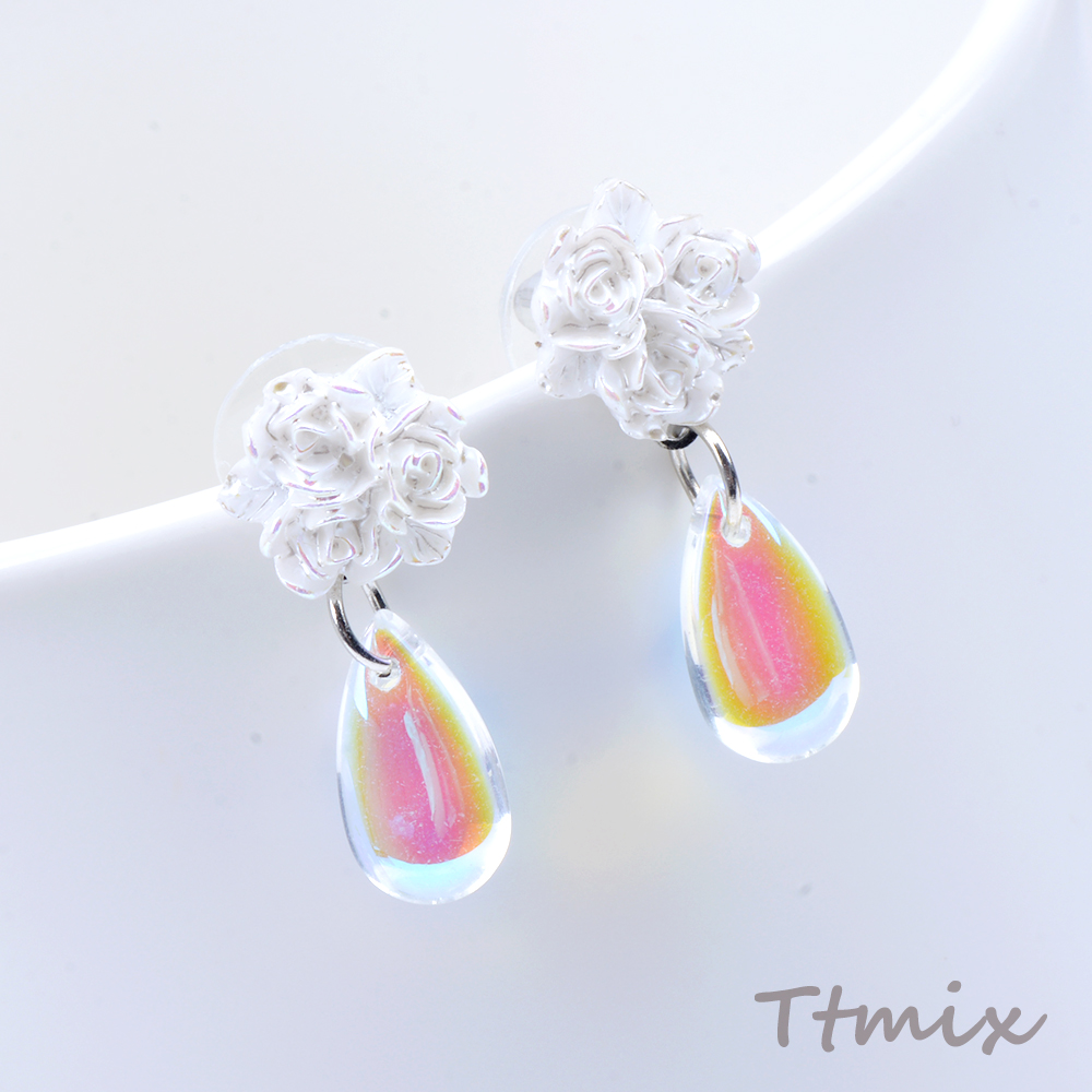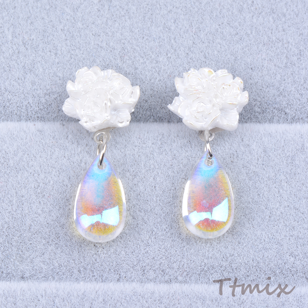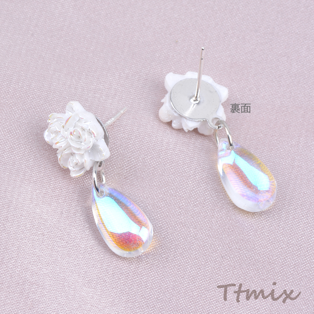 デザインピアス フラワー バラ しずく型 12×26mm(1ペア)