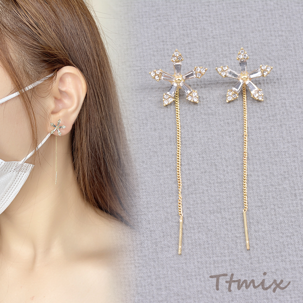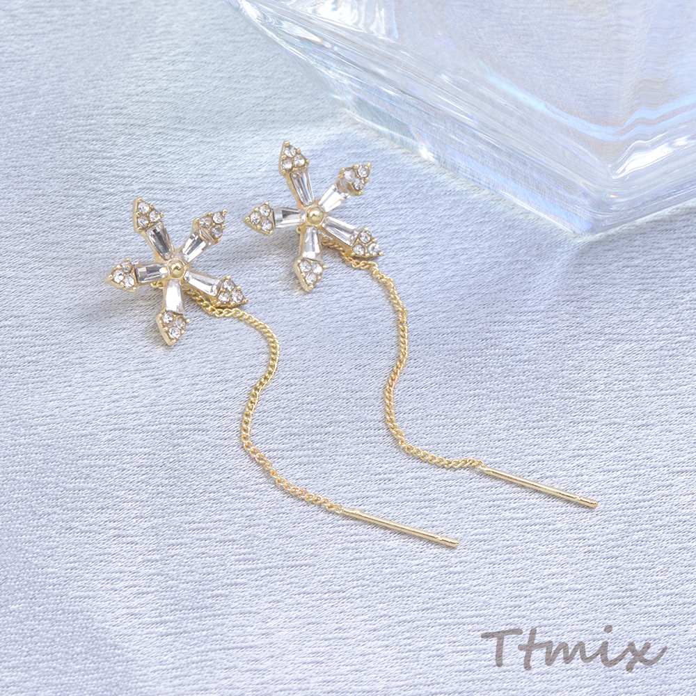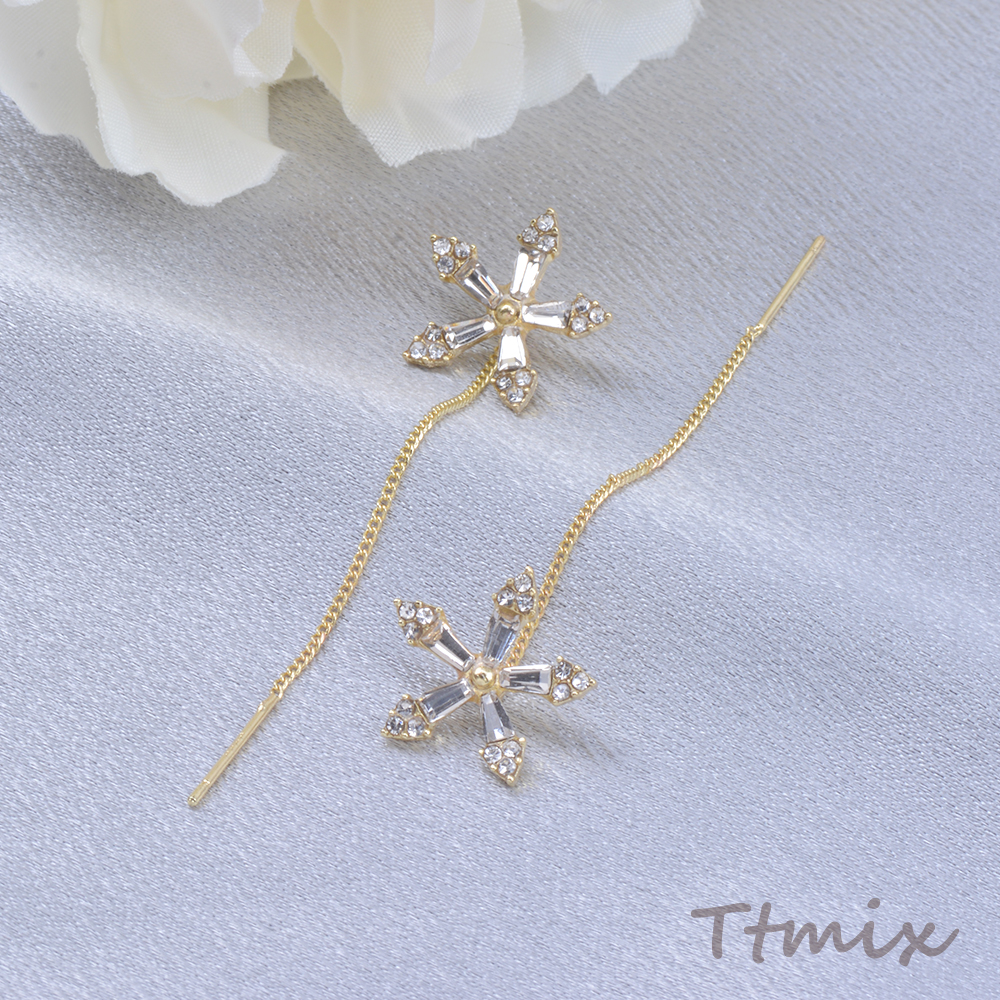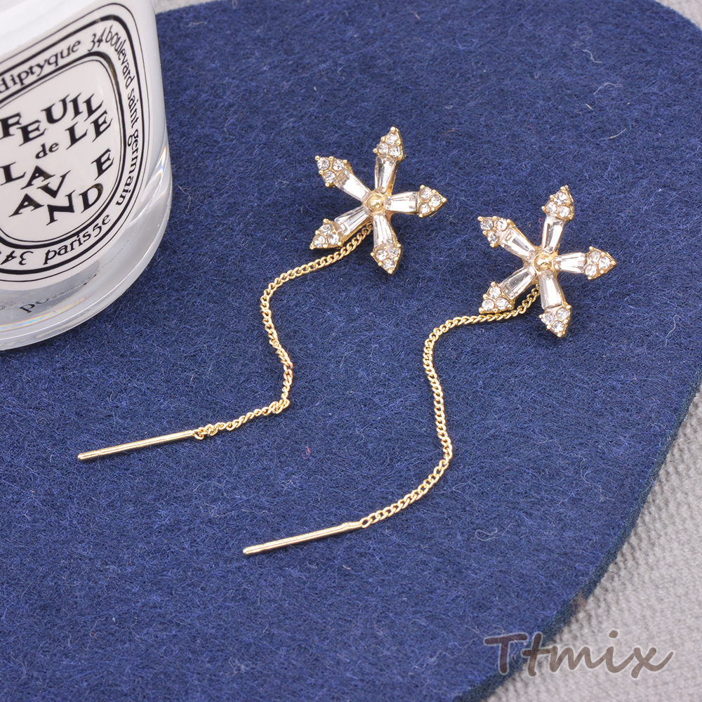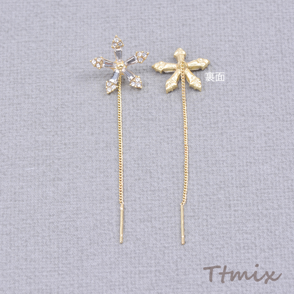 アメリカンピアス フラワー 五弁花 ラインストーン付き 15×60mm ゴールド(1ペア)