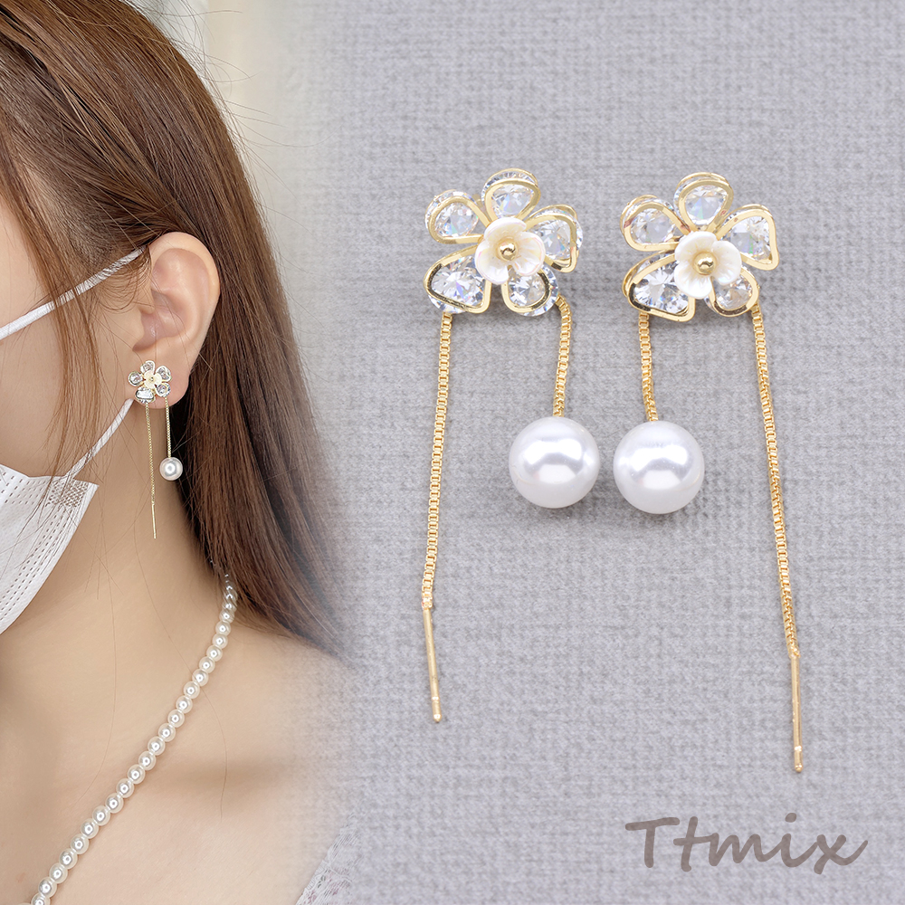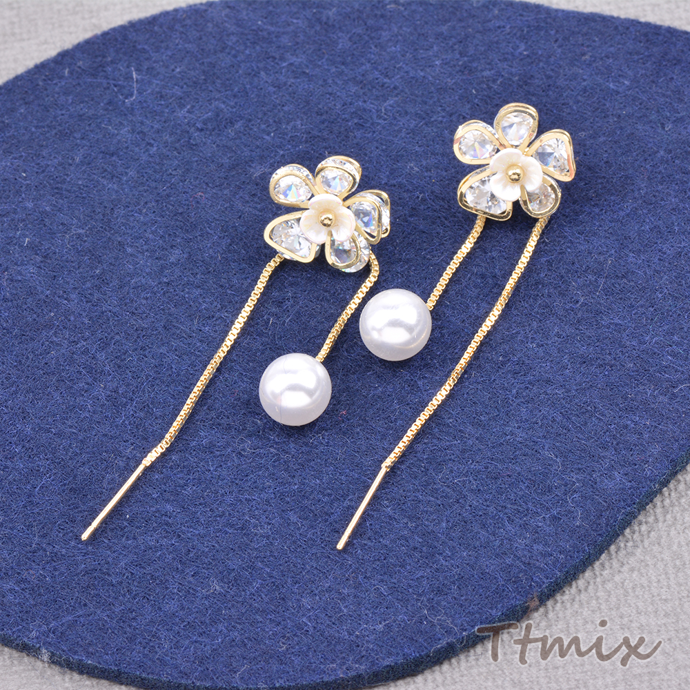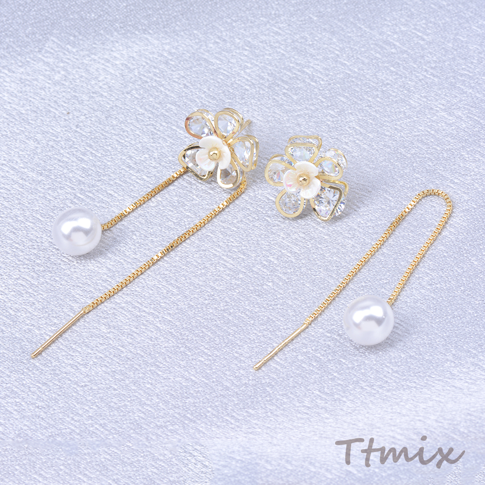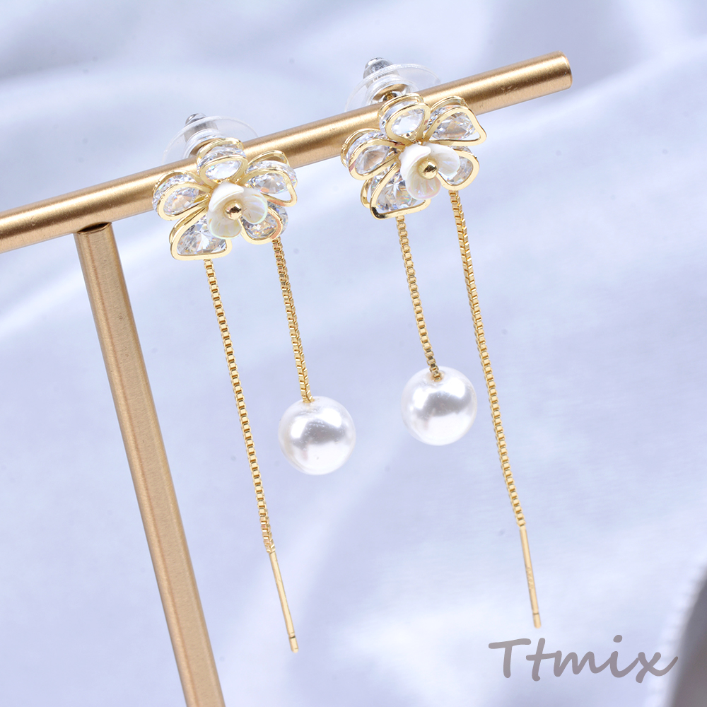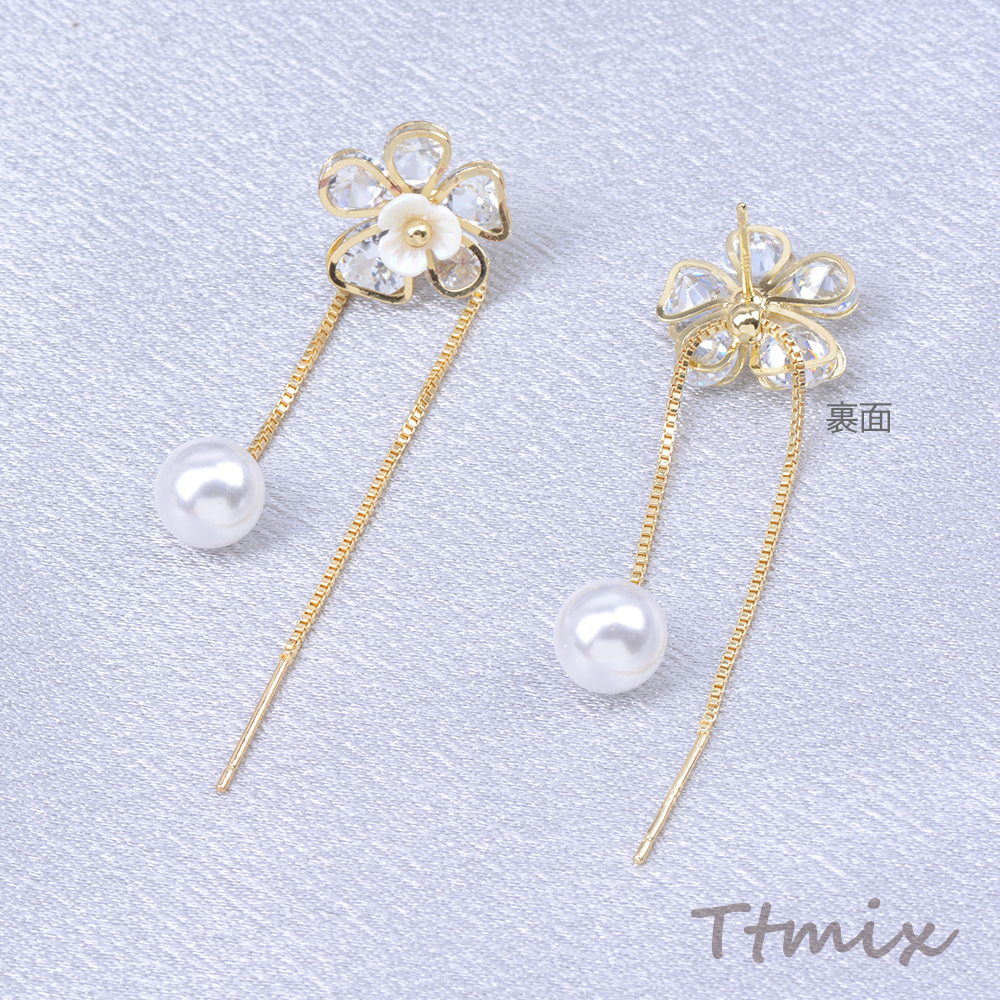 デザインピアス&アメリカンピアス フラワー パール&ラインストーン付き 14×90mm ゴールド(1ペア)