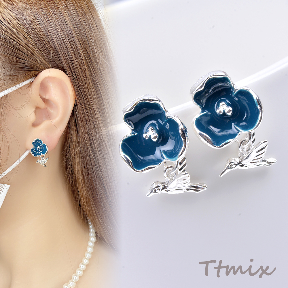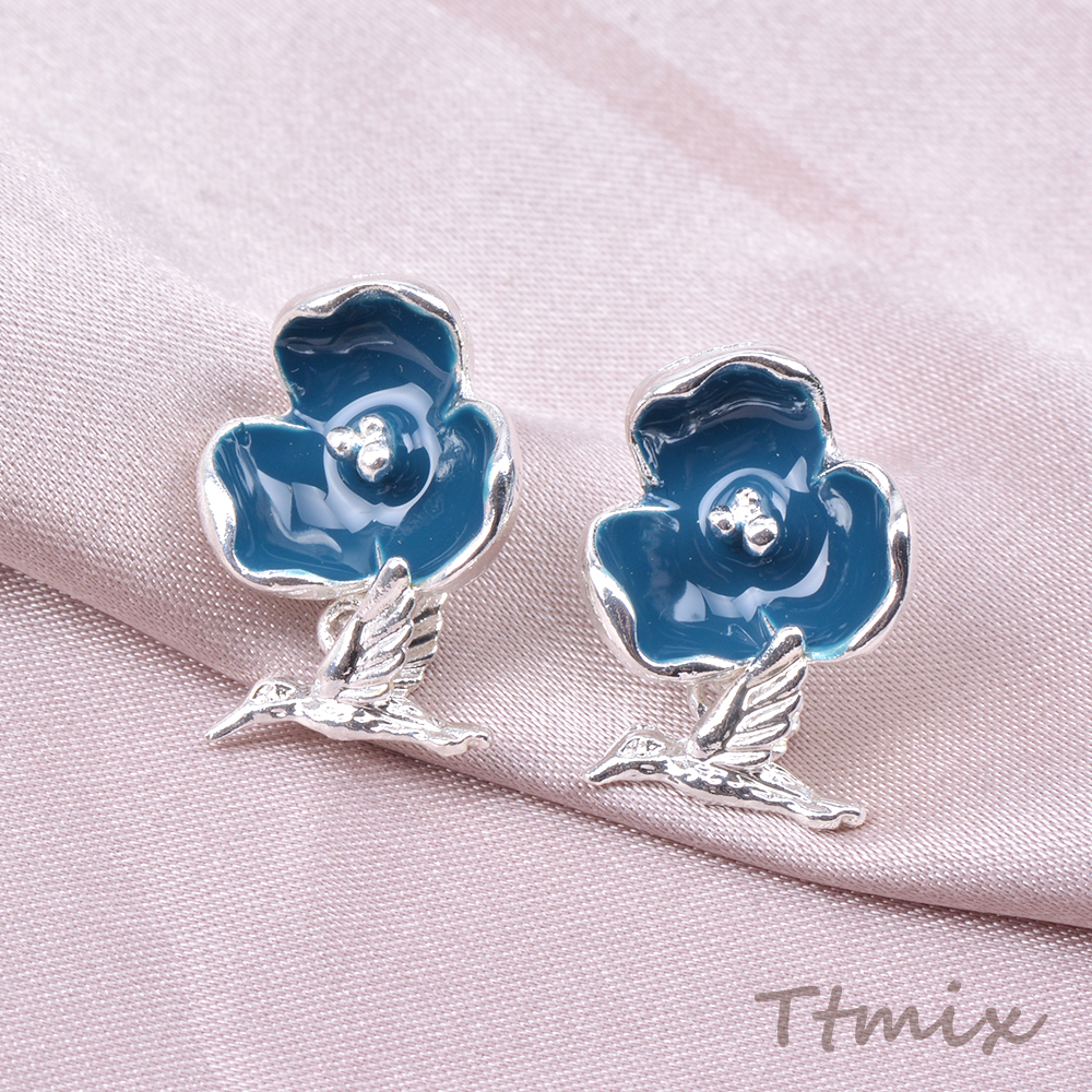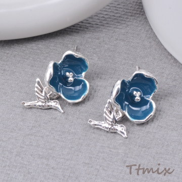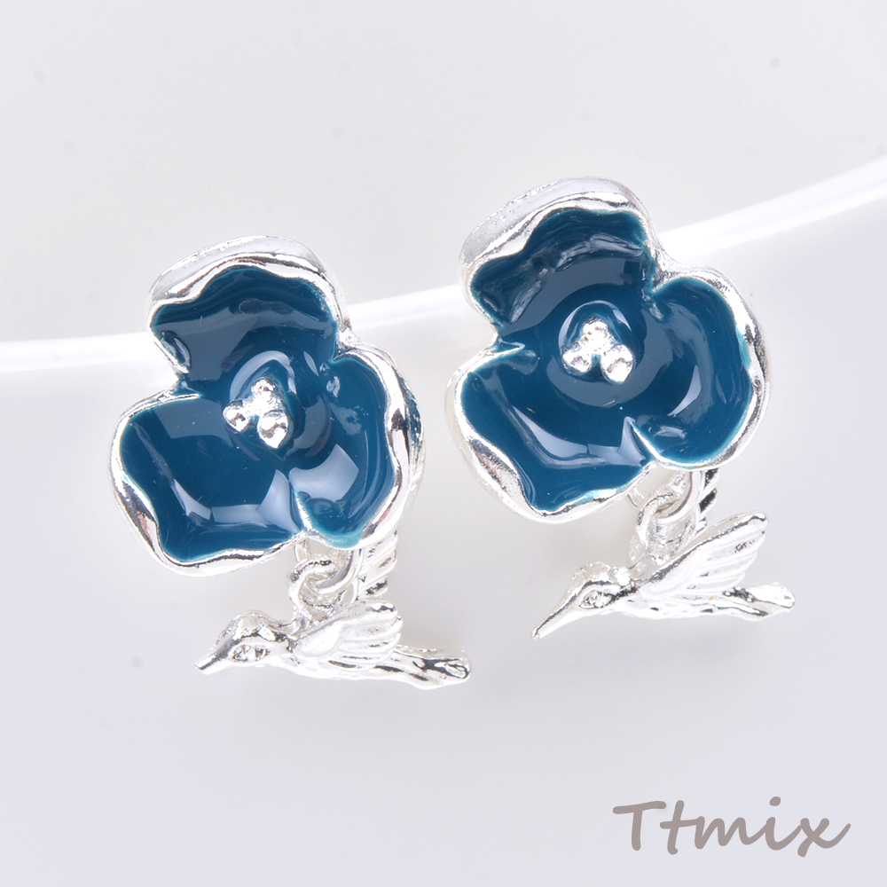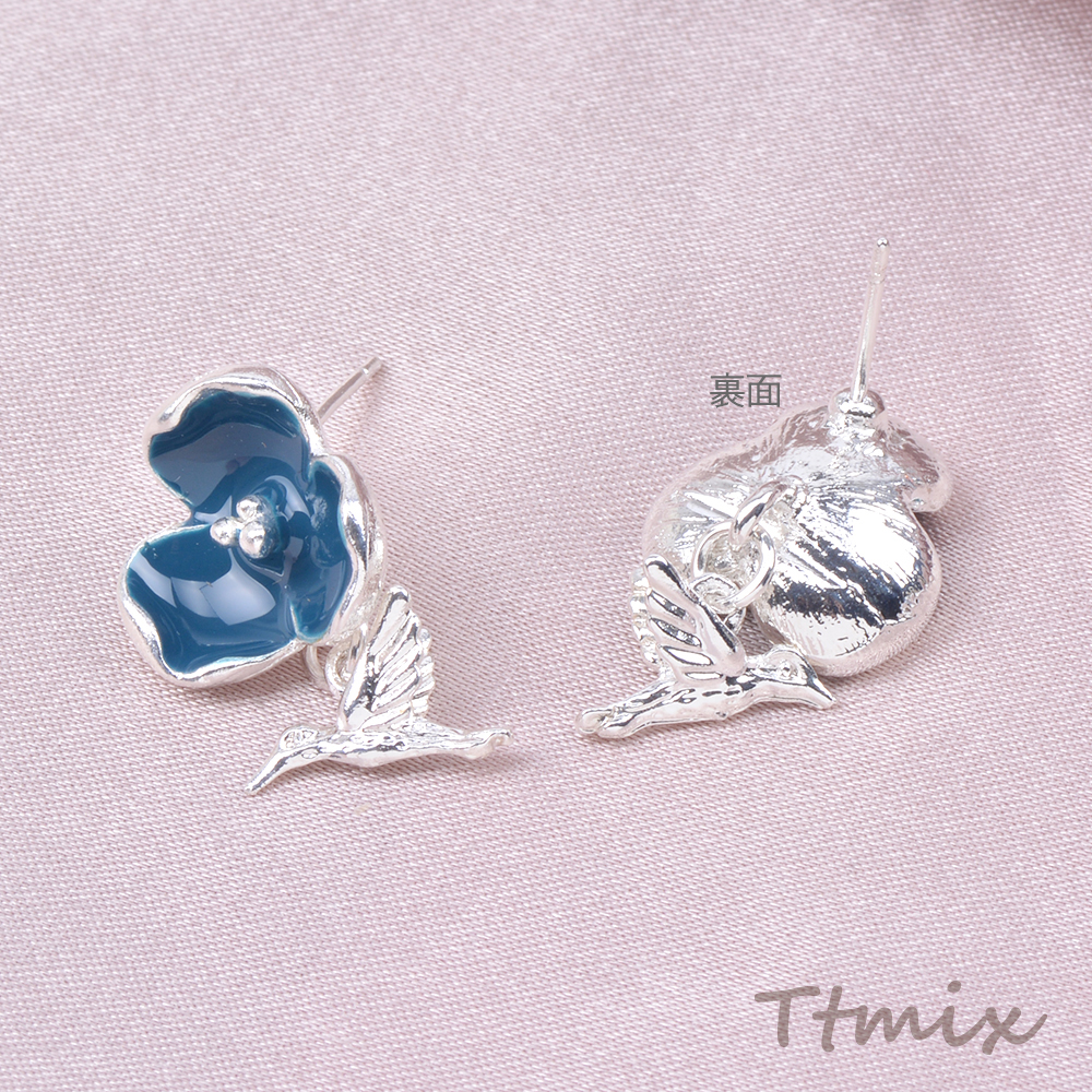 デザインピアス フラワー 鳥 13×20mm シルバー(1ペア)