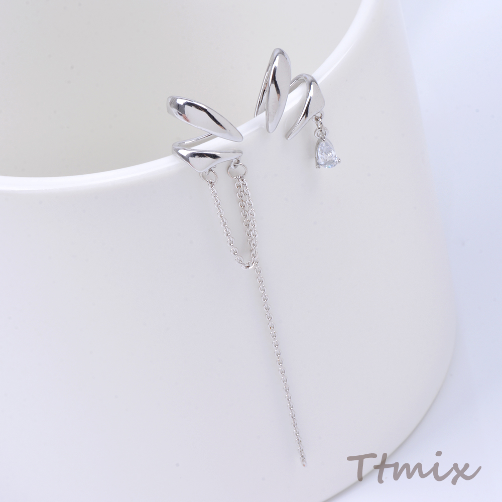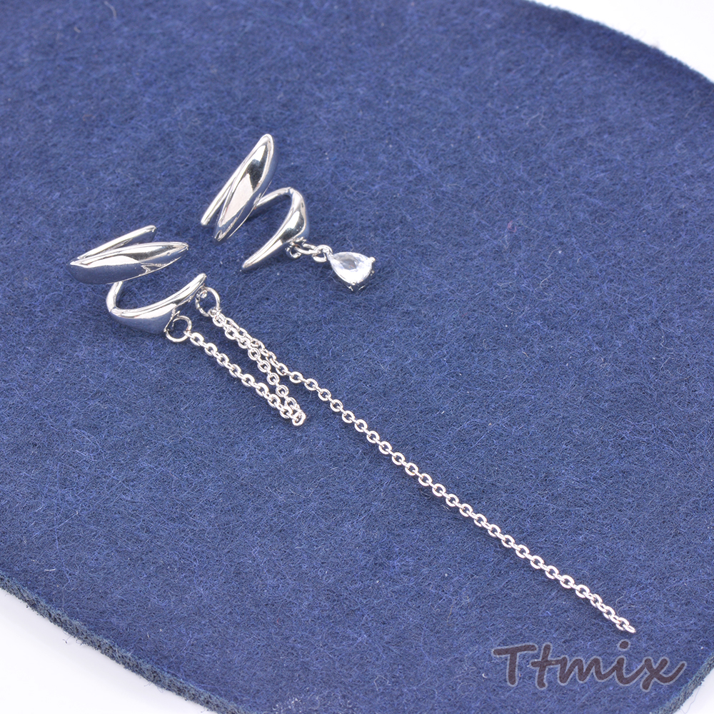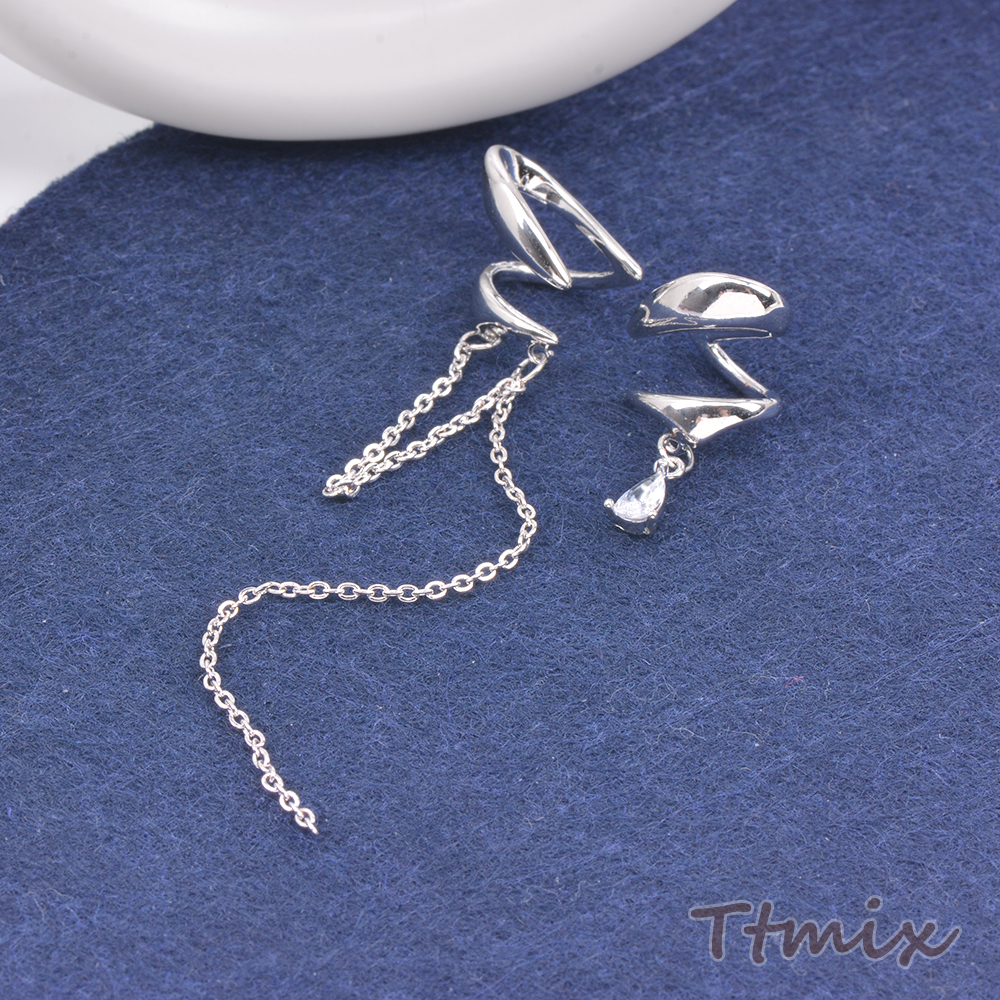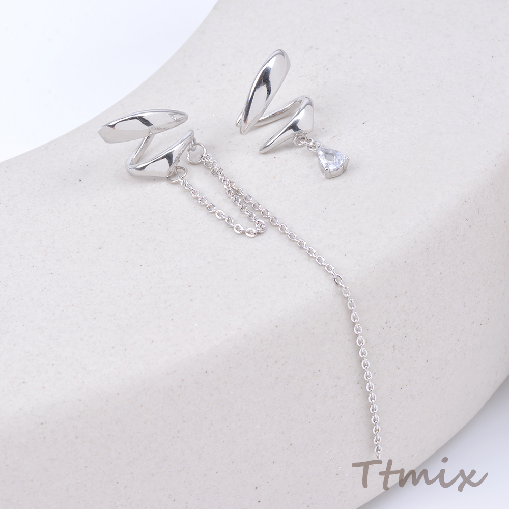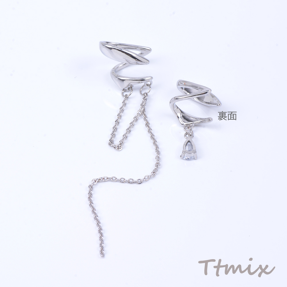 イヤーカフ チェーン付き ジルコニア付き ロジウム(1ペア)