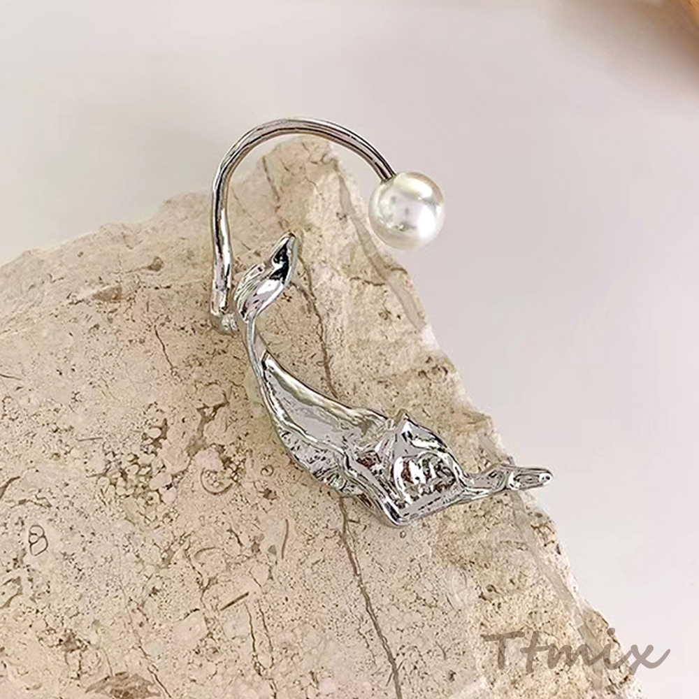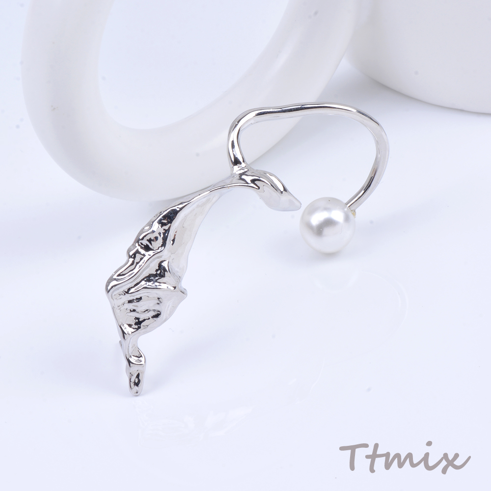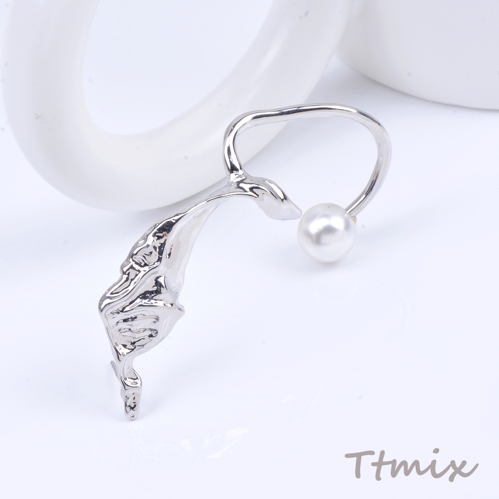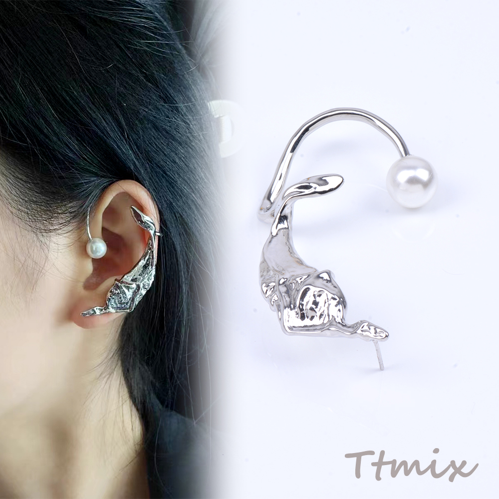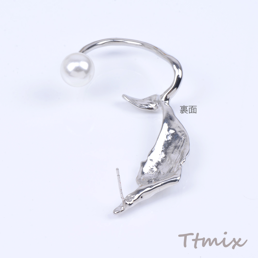 デザインピアス&イヤーカフ パール付き 35×63mm 片耳用 ロジウム(1ヶ)