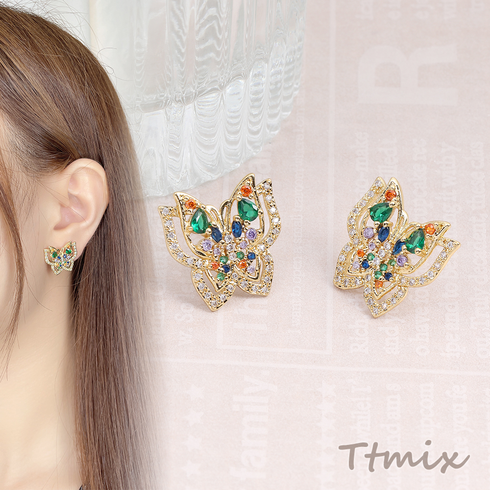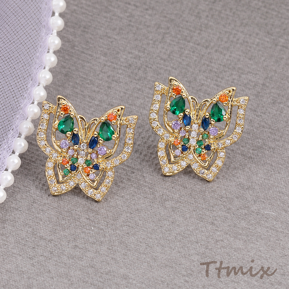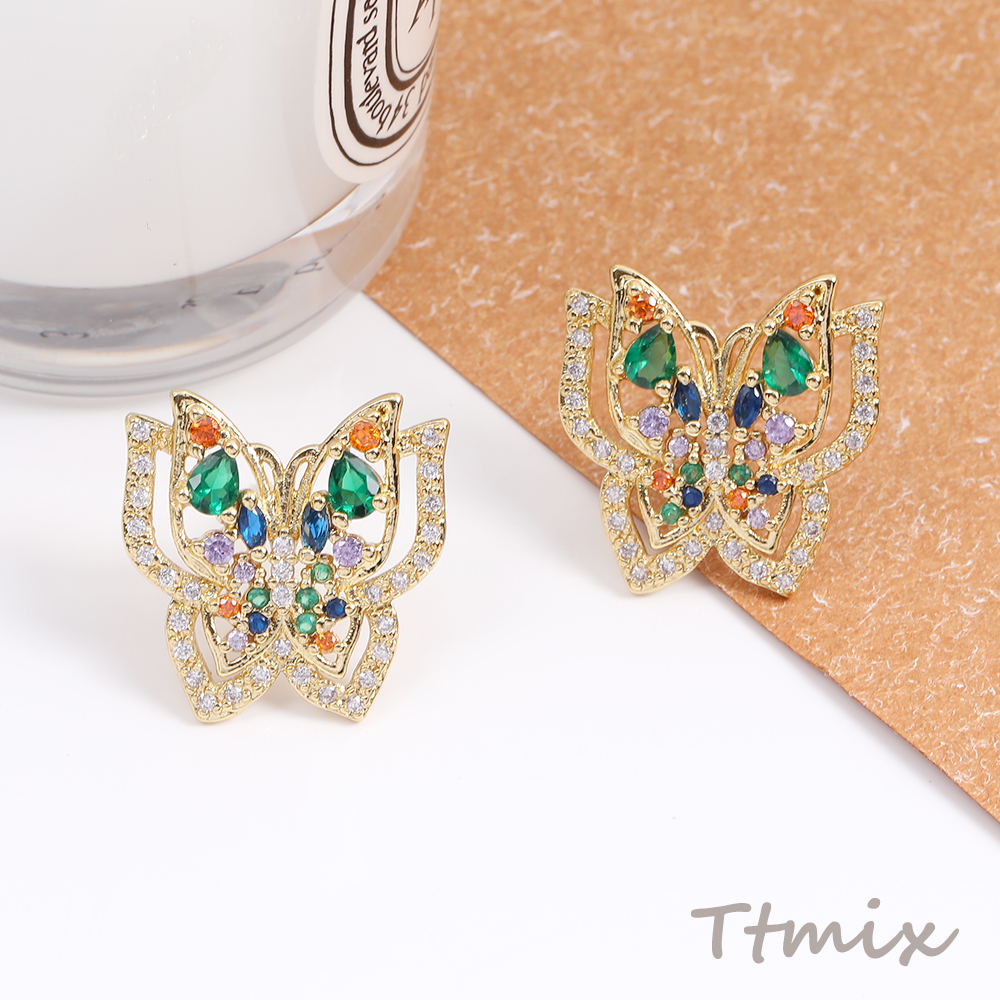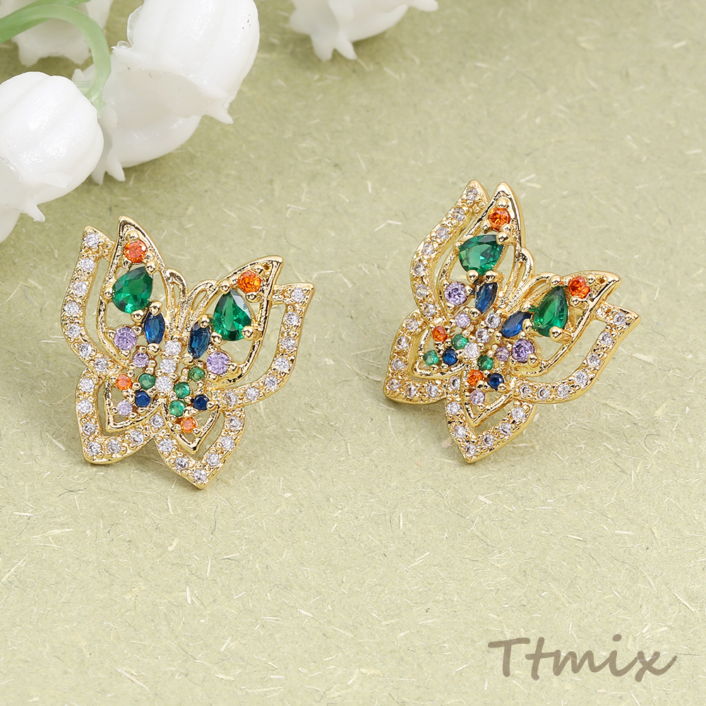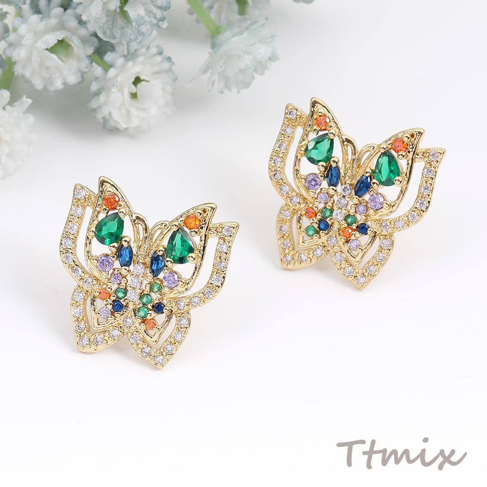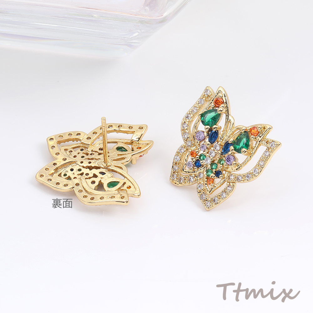 高品質ジルコニアピアス デザインピアス 蝶 18.5×19mm ゴールド(1ペア)