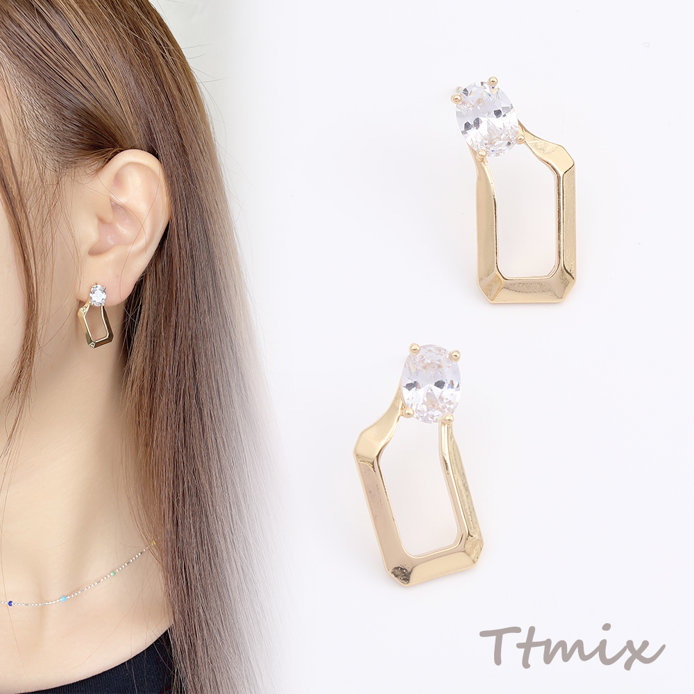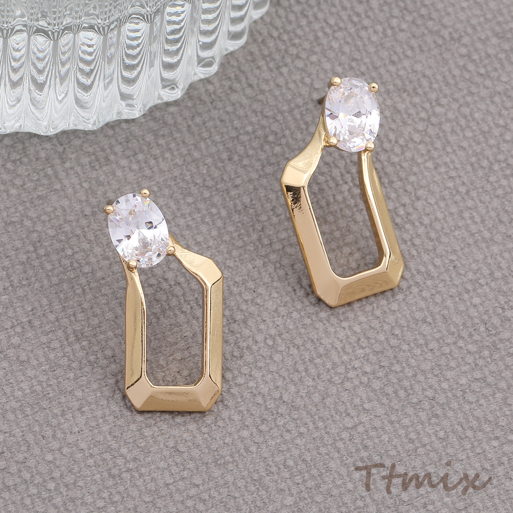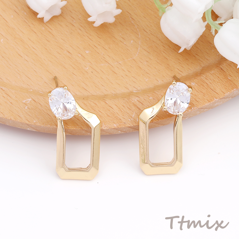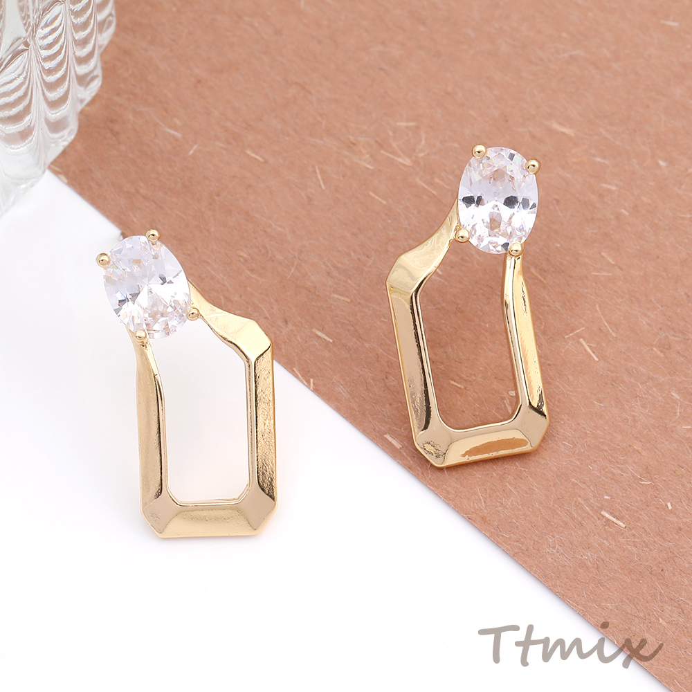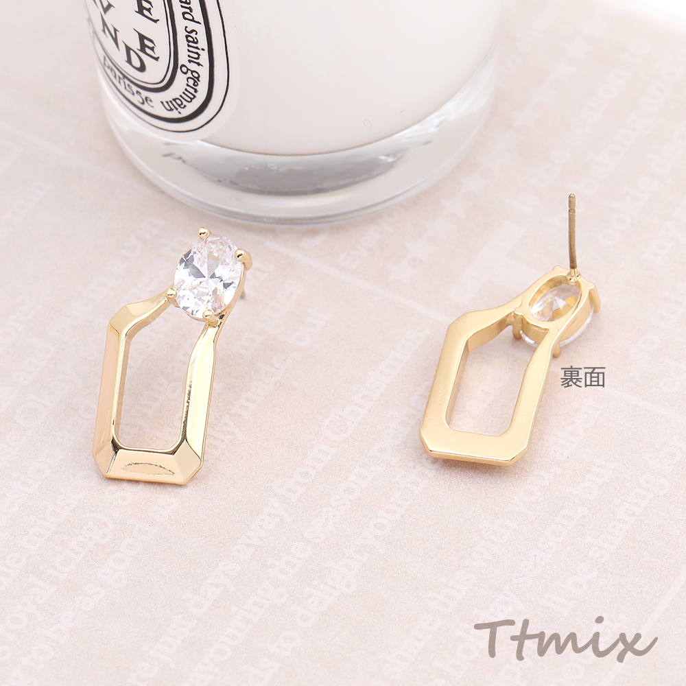 デザインピアス ジルコニアピアス 長方形型 12×24mm ゴールド(1ペア)