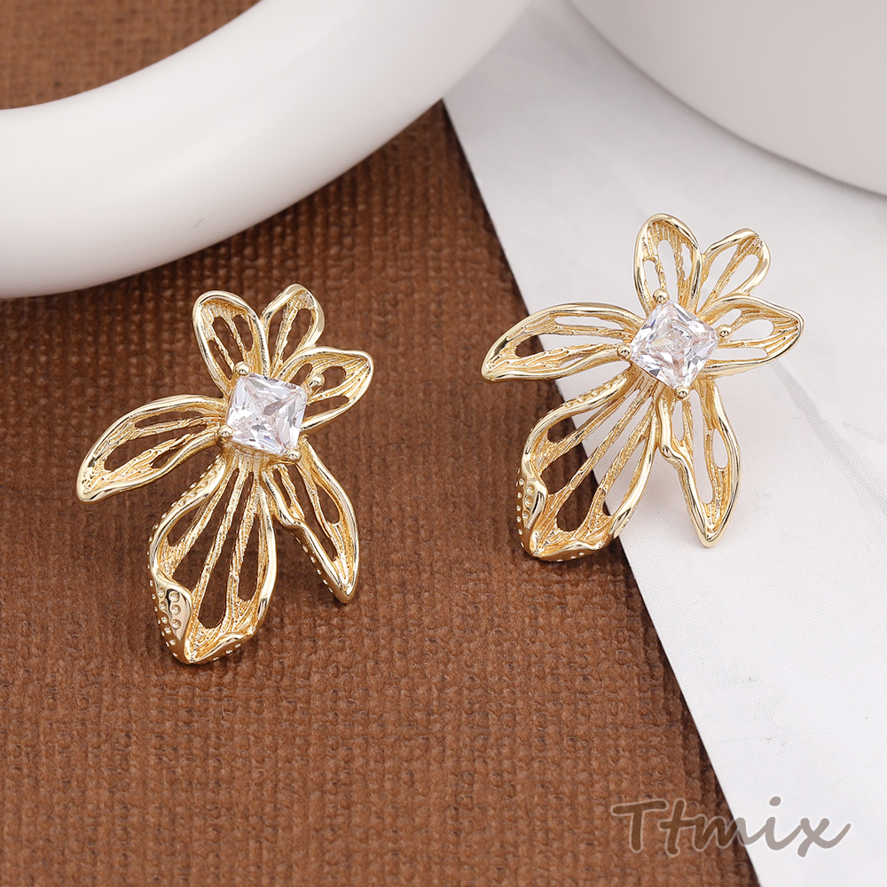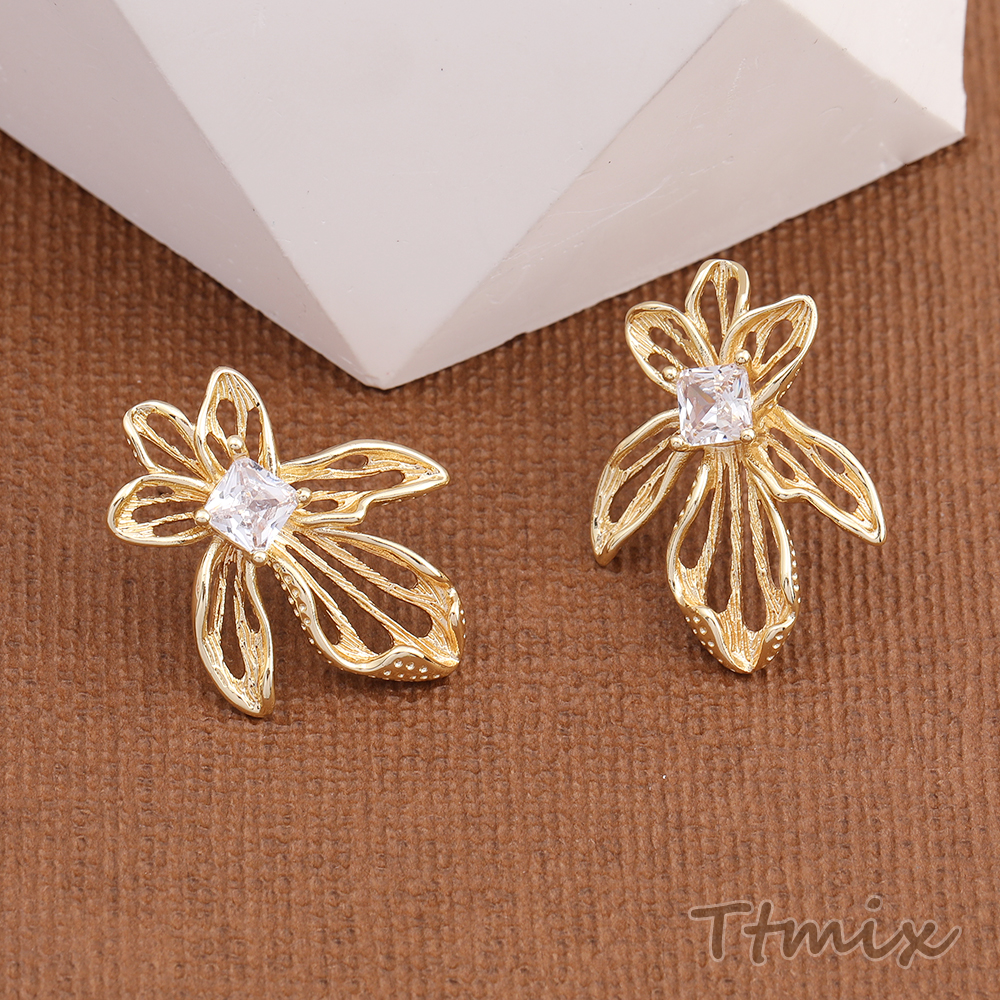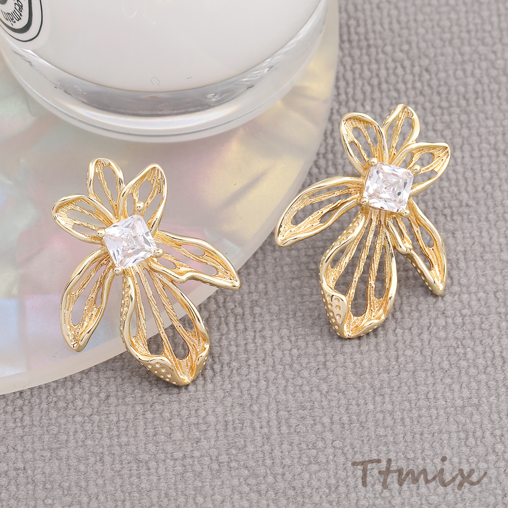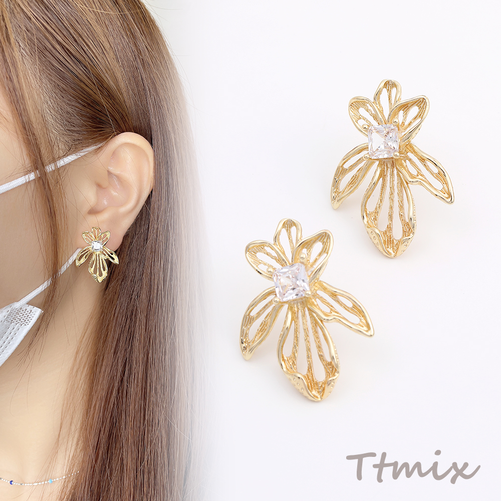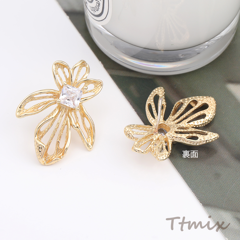 デザインピアス ジルコニアピアス フラワー 21×27mm ゴールド(1ペア)