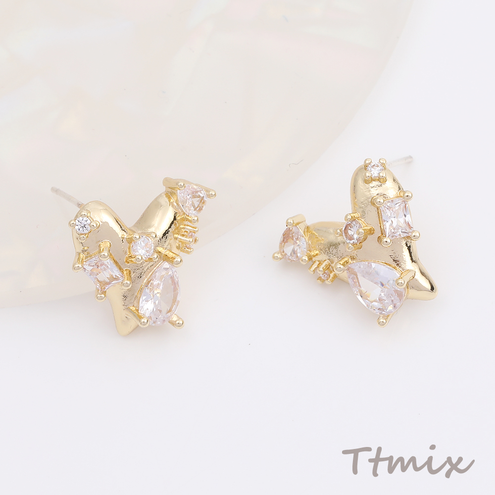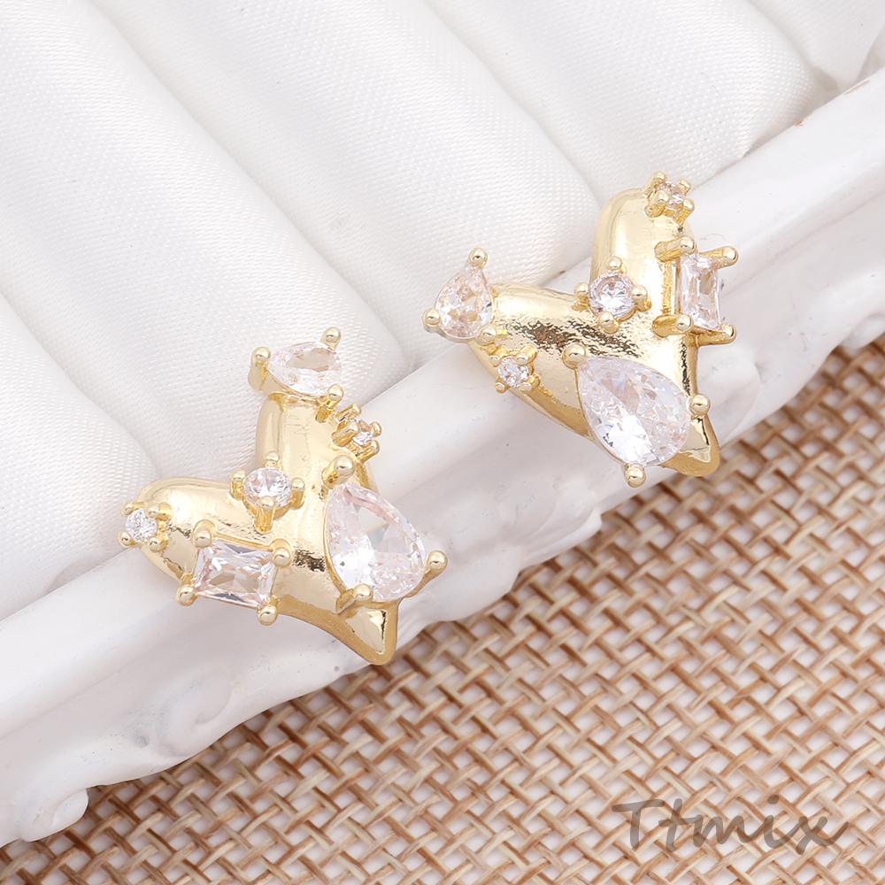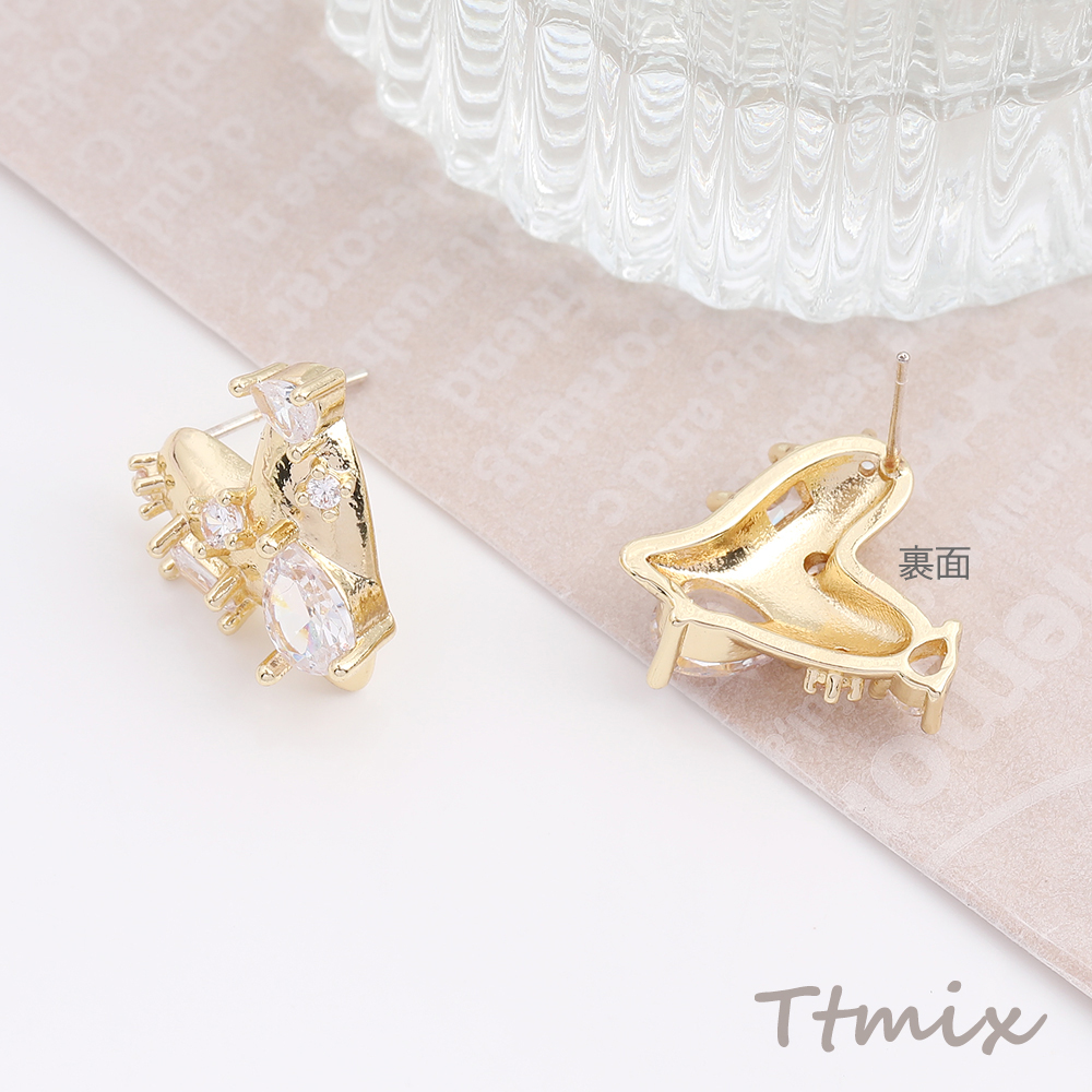 デザインピアス ジルコニアピアス ハート型 16×16mm ゴールド(1ペア)