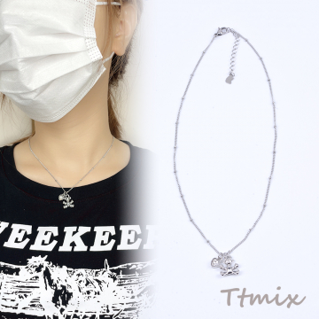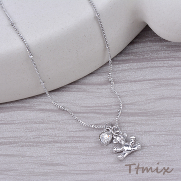 メタルネックレス ハート型&クマ付き ロジウム(1連)
