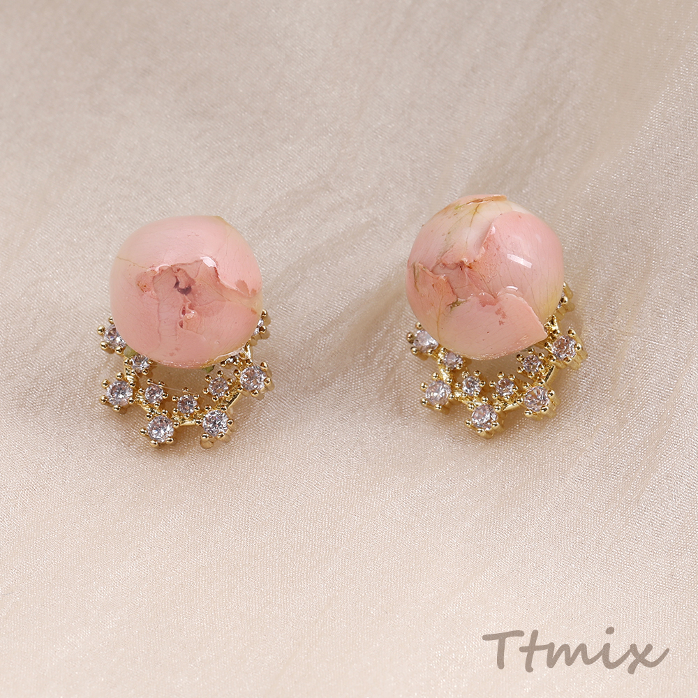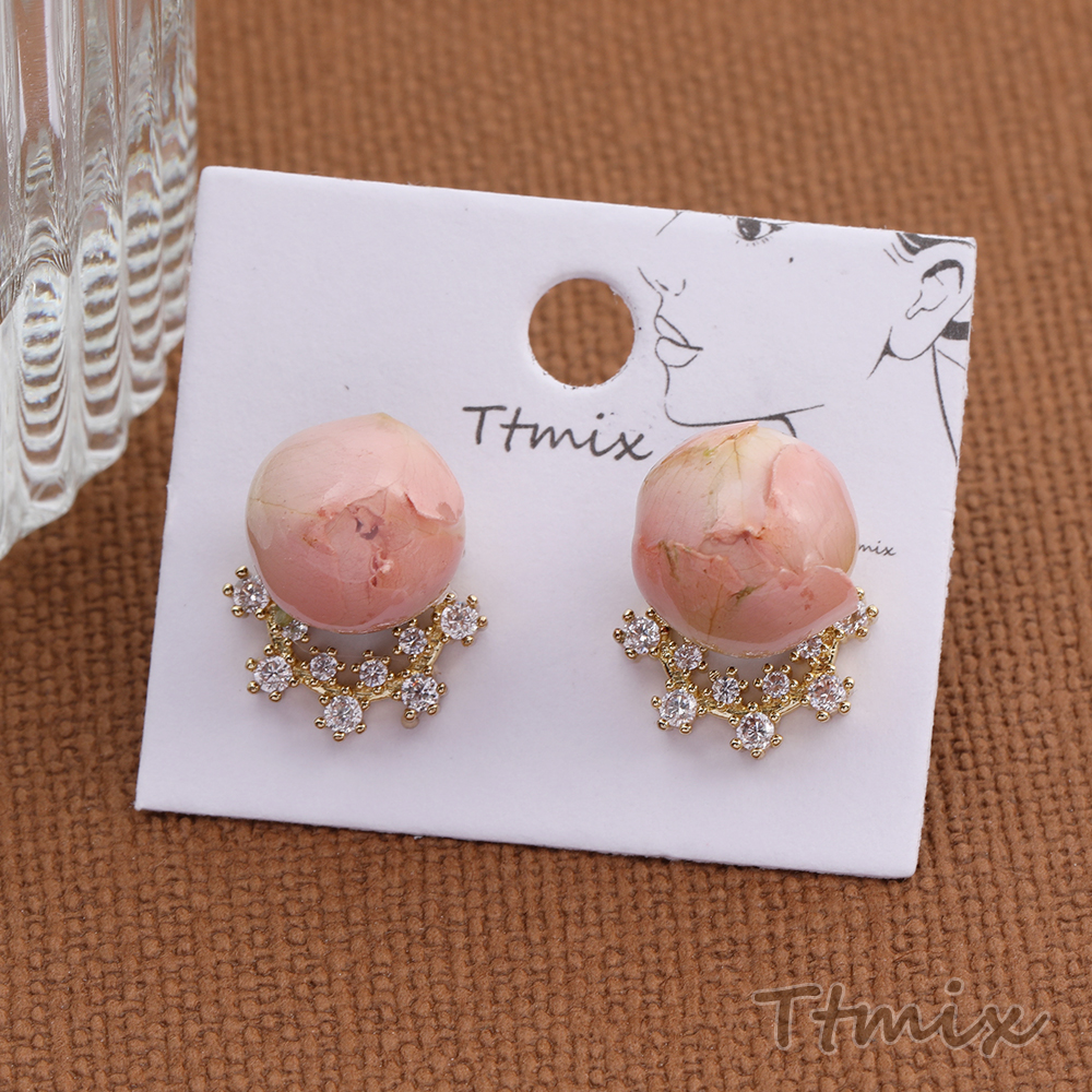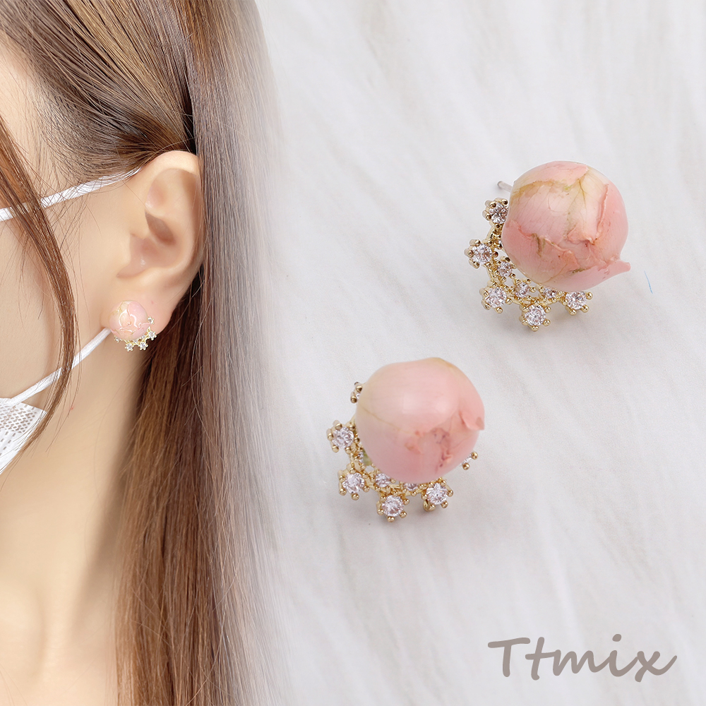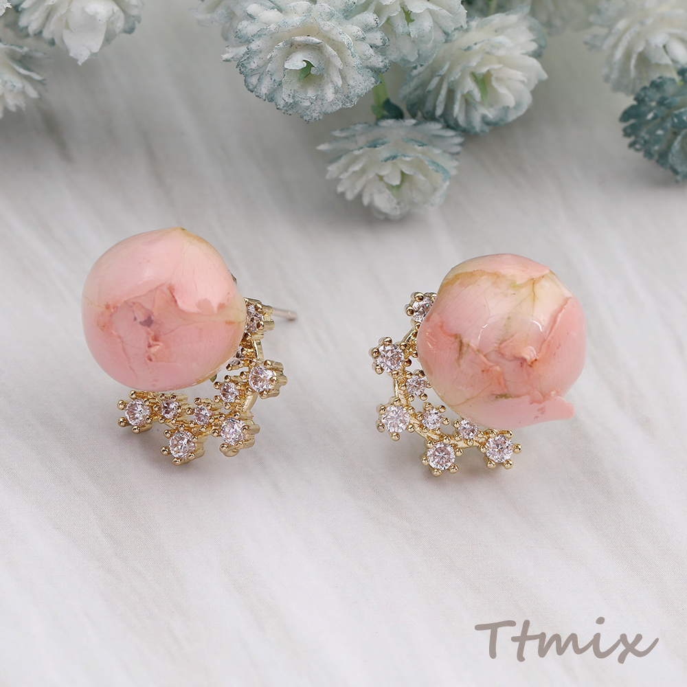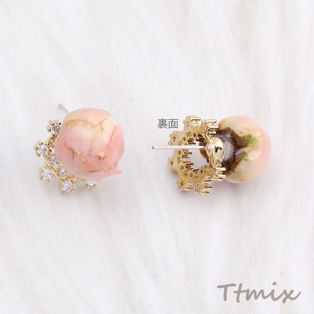 デザインピアス 14×18mm ドライフラワー バラ ピンク(1ペア)