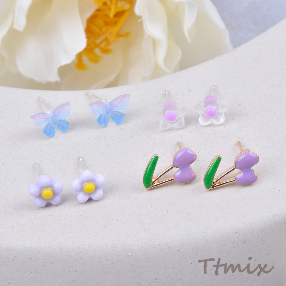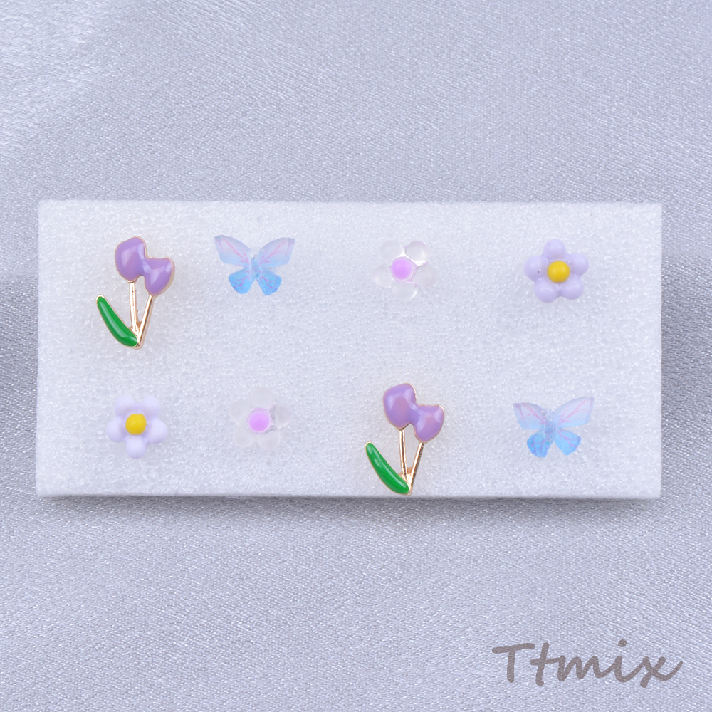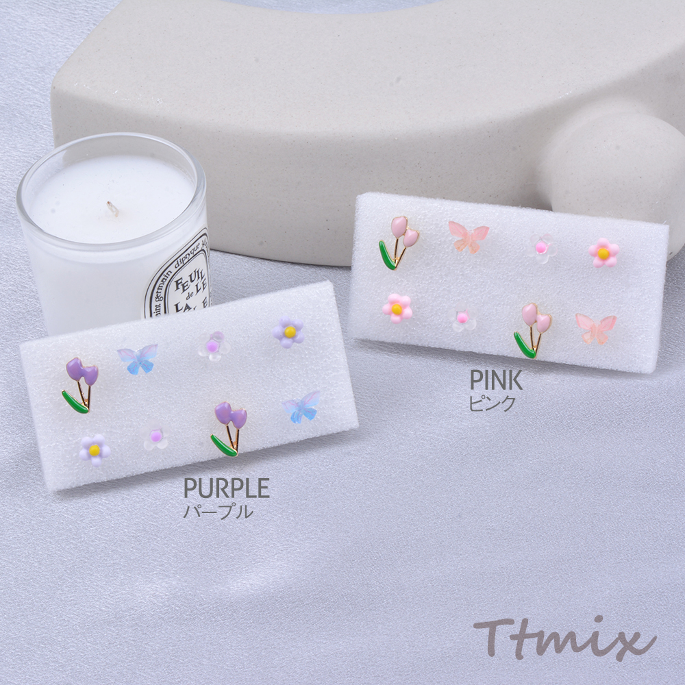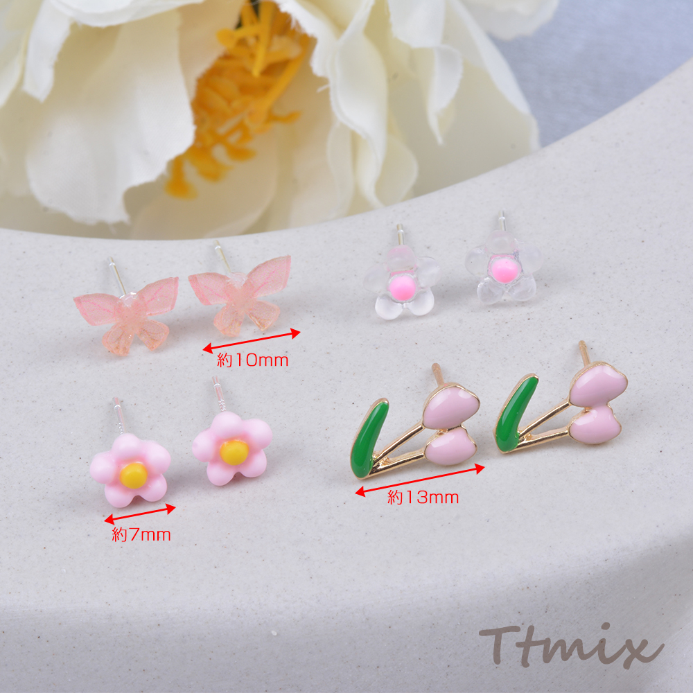 デザインピアス フラワーピアス 蝶ピアス(4ペア/セット)