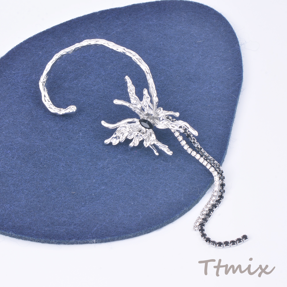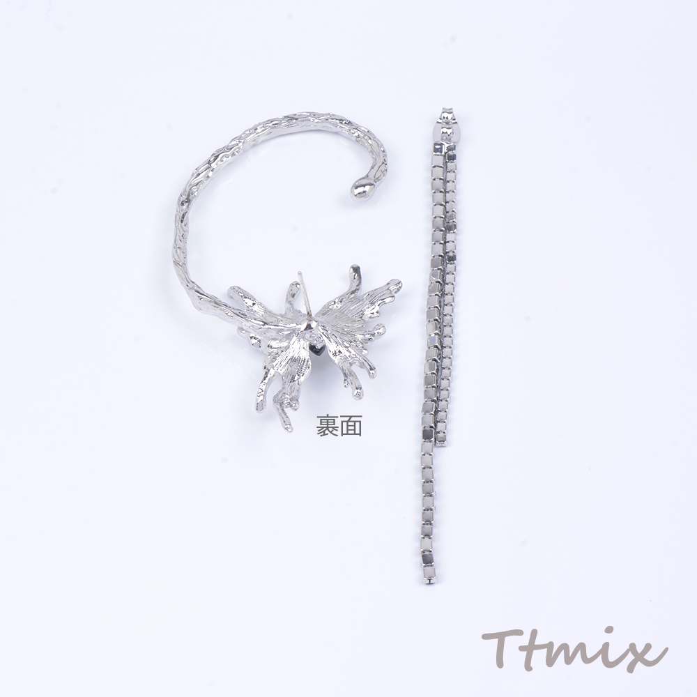 イヤーカフ&デザインピアス 蝶 チェーンタッセル 片耳用 ロジウム(1ヶ)