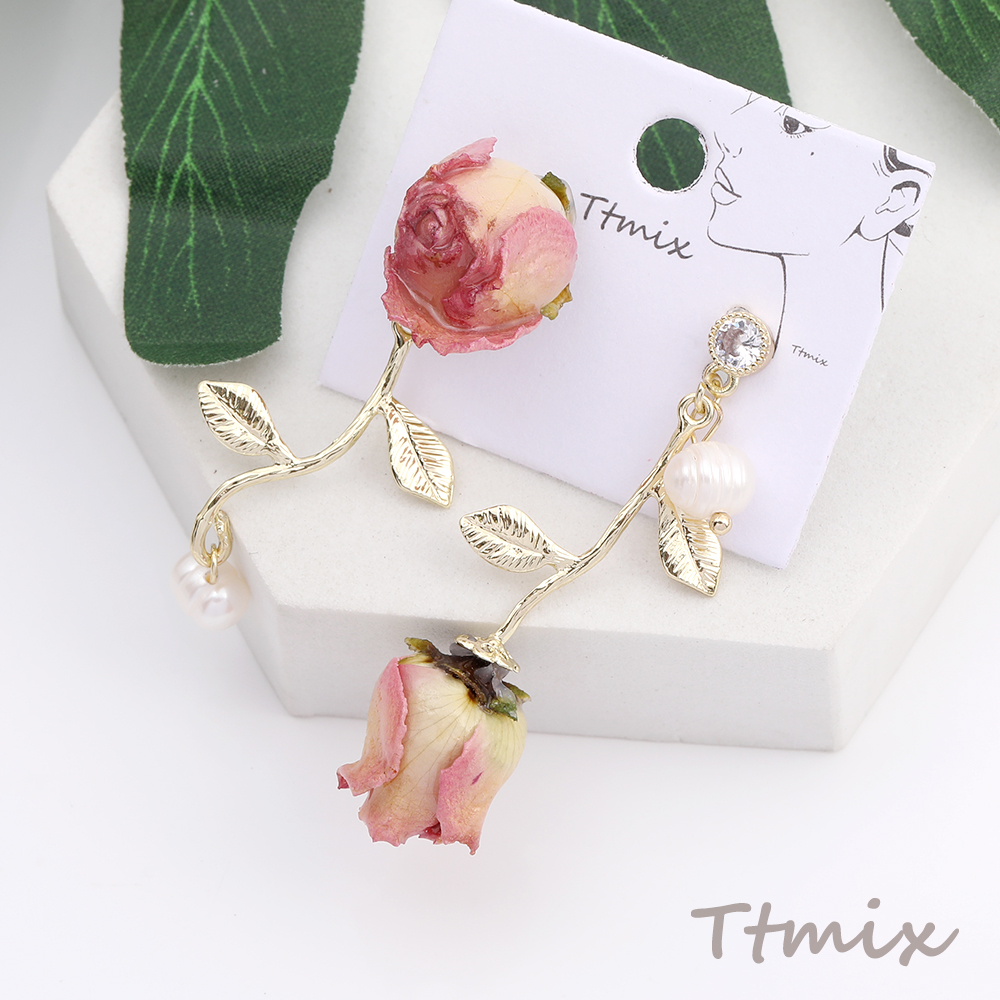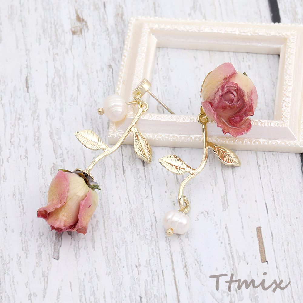 デザインピアス フラワー バラ 15×50mm(1ペア)